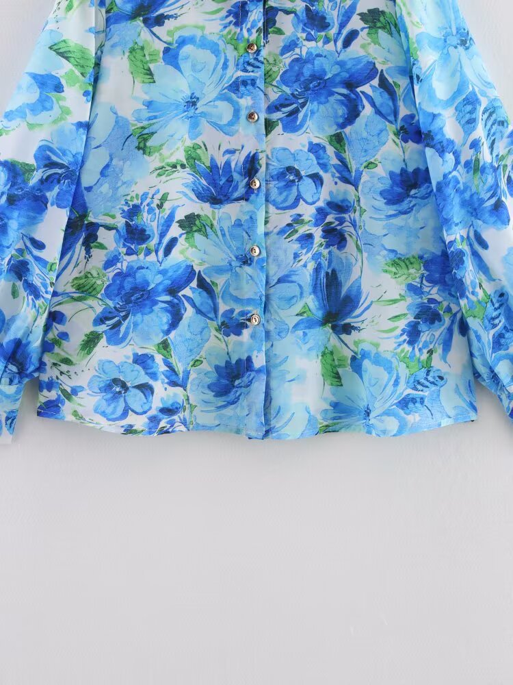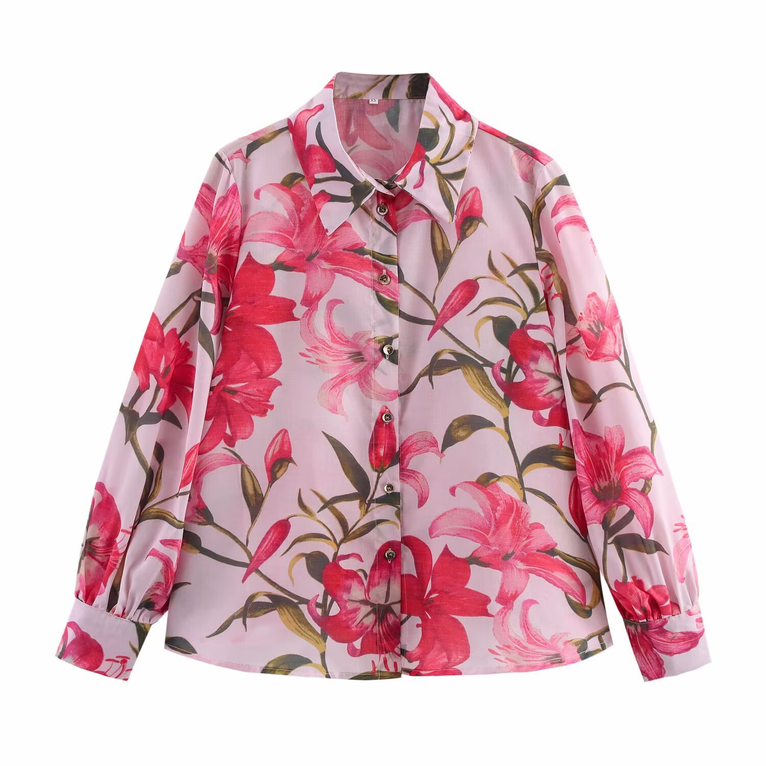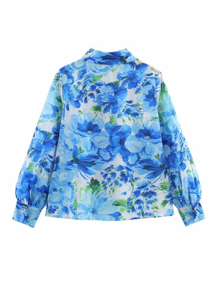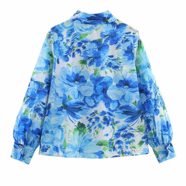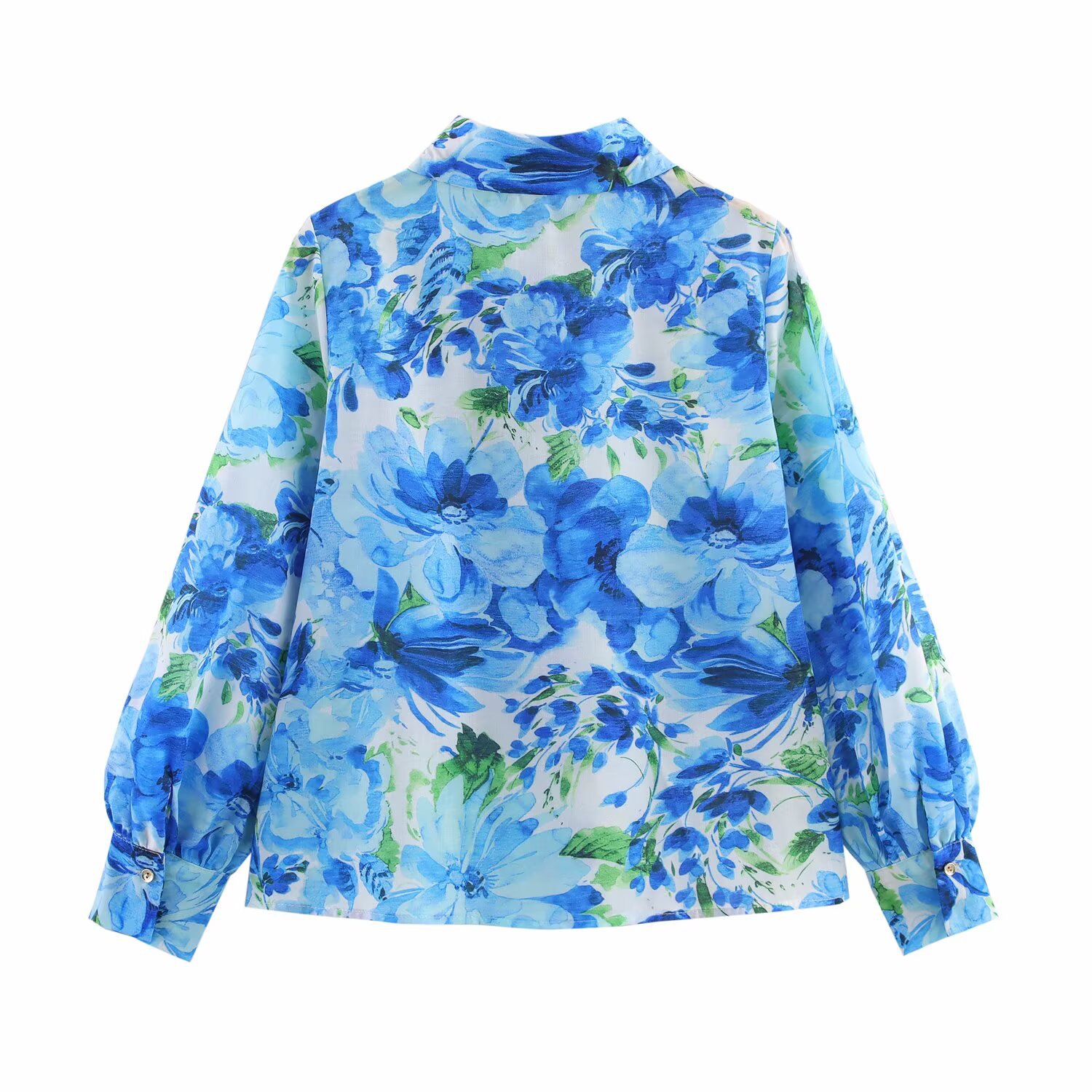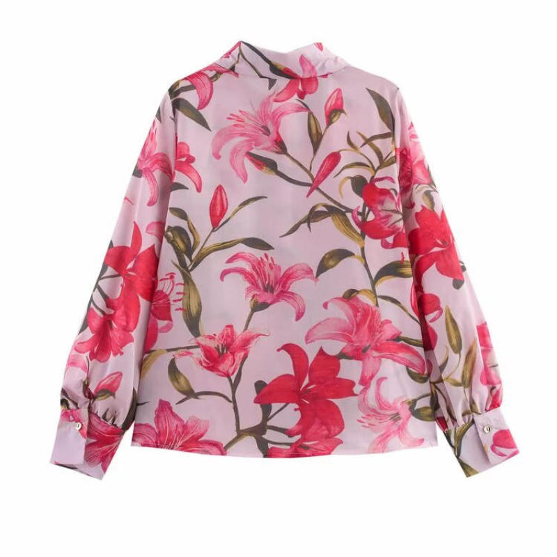 Za Foreign Trade Wholesale European and American Style French Women's Clothing Two-Flower Print Draped Lapel Long-Sleeve Shirt 5029055