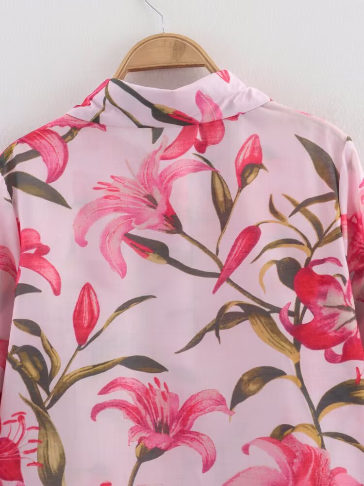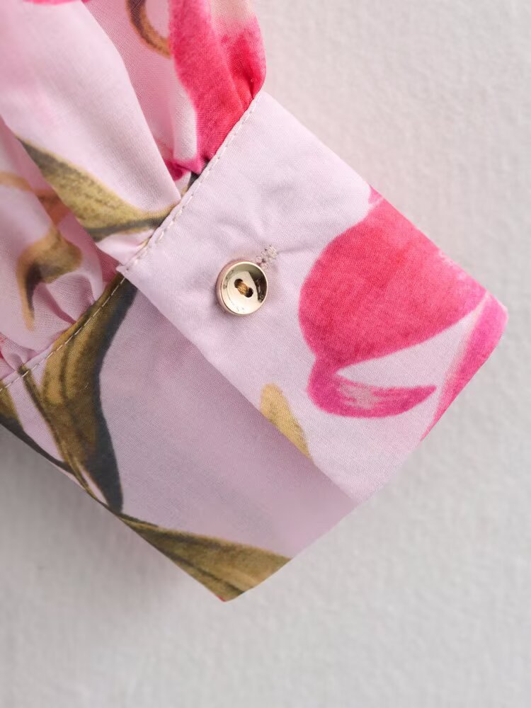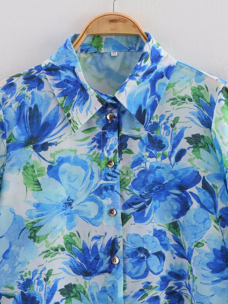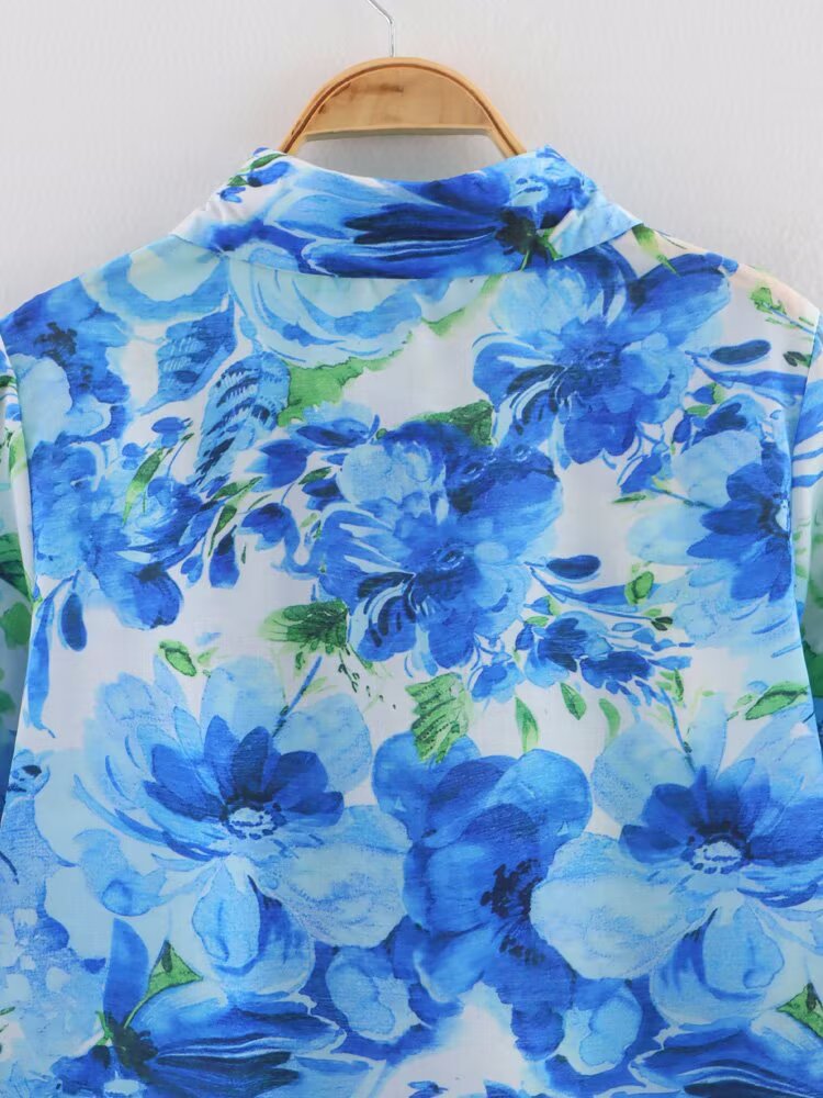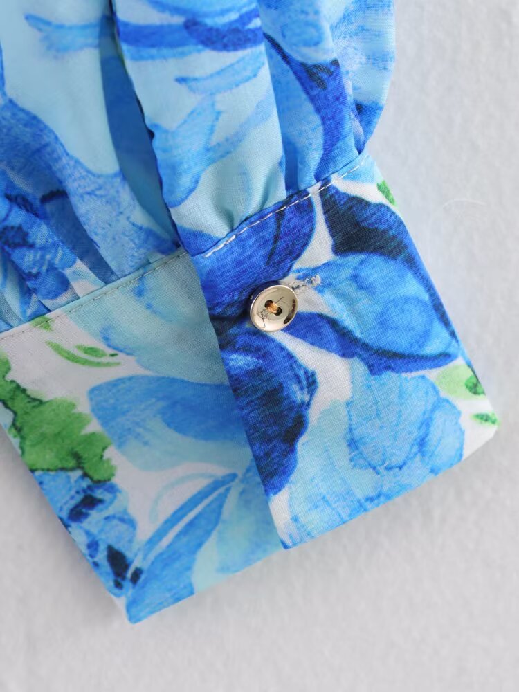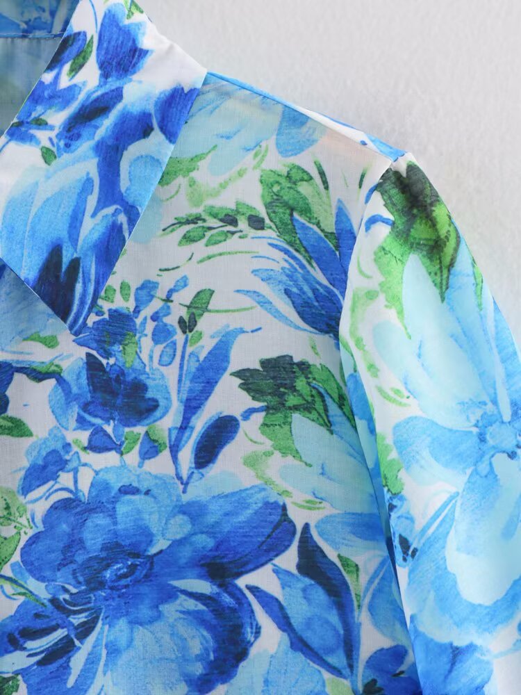 Za Foreign Trade Wholesale European and American Style French Women's Clothing Two-Flower Print Draped Lapel Long-Sleeve Shirt 5029055