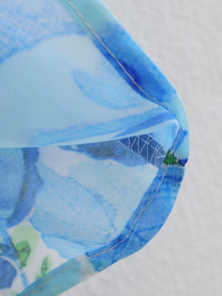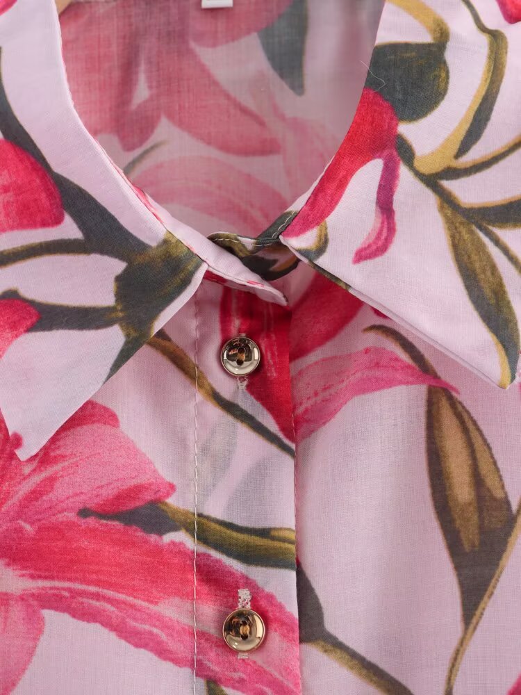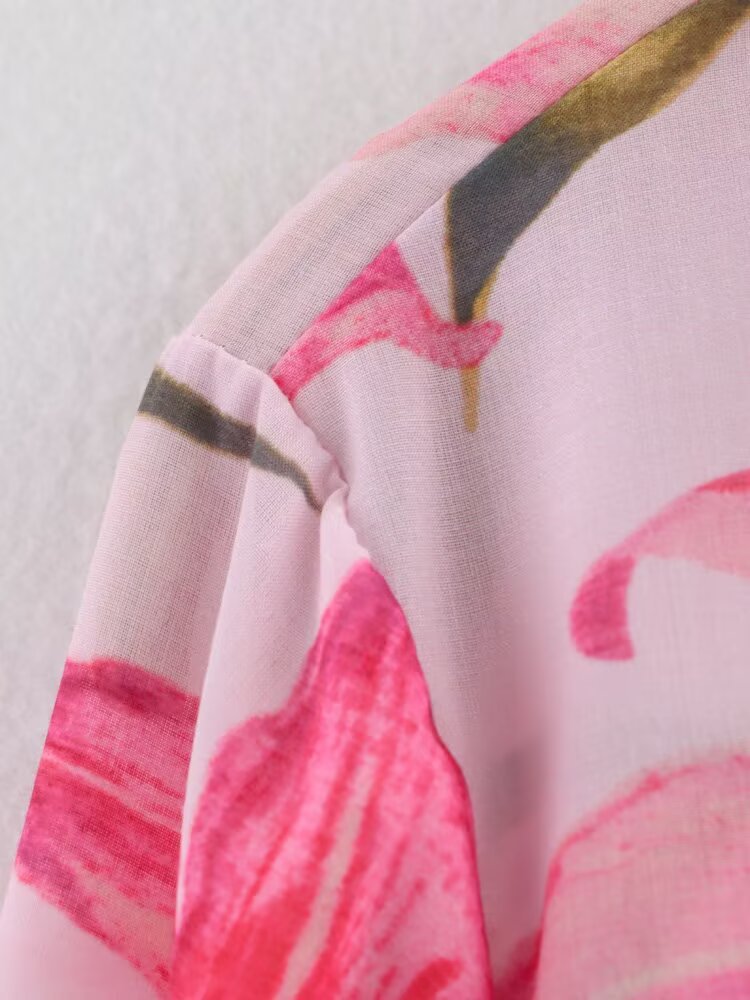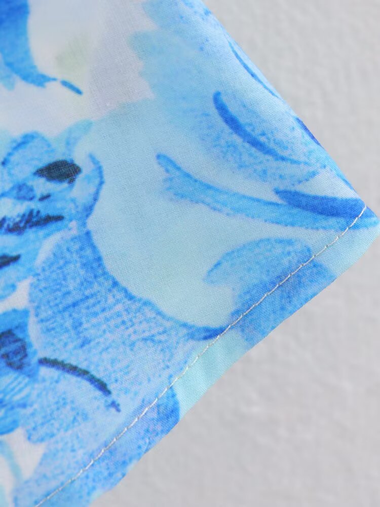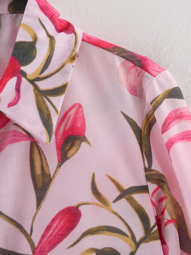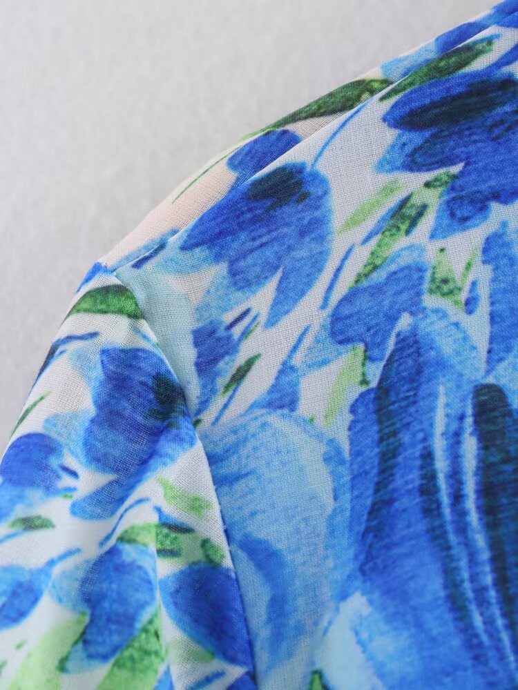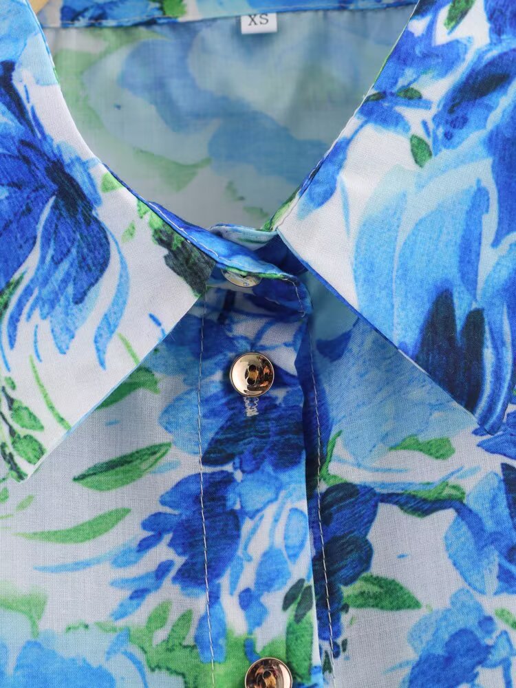 Za Foreign Trade Wholesale European and American Style French Women's Clothing Two-Flower Print Draped Lapel Long-Sleeve Shirt 5029055