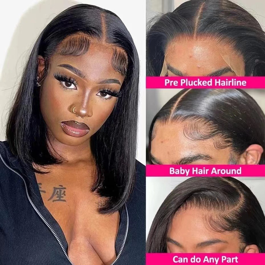 亚马逊跨境新品前蕾丝鲍勃假发短直发高温丝化纤头套13*4波波头