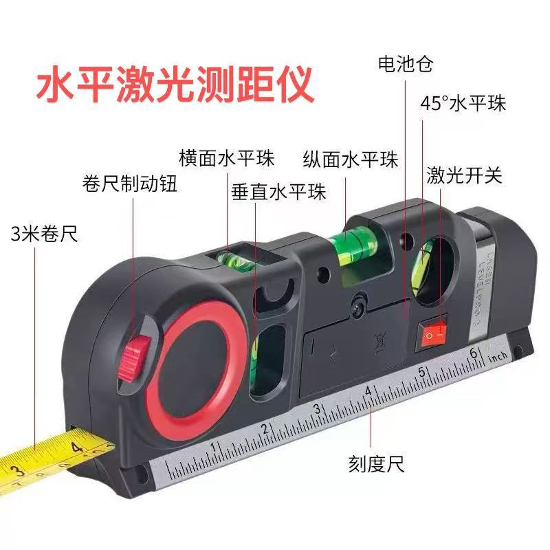 Portable Laser Level Level Built-In 3m Tape Measure Multi-Function Cross-Shaped Red Light Rangefinder Direct Sales