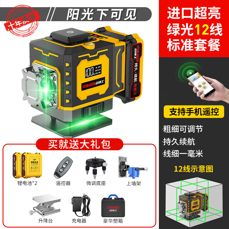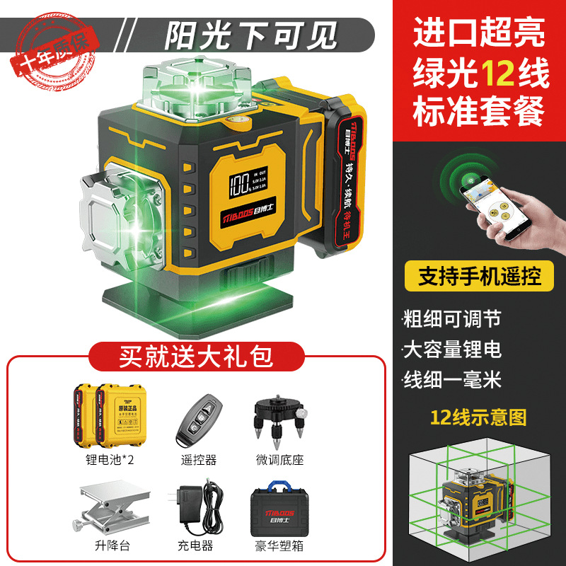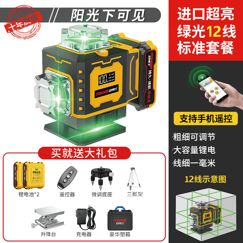 Rotating window green light 12 lines horizontal double electric + semi-plastic base + aluminum lifting table + tripod