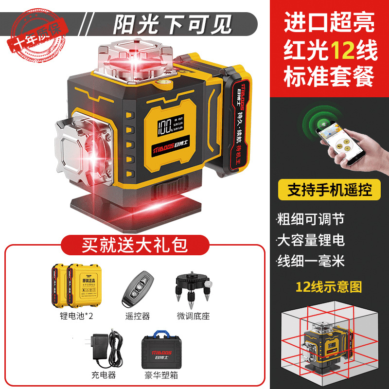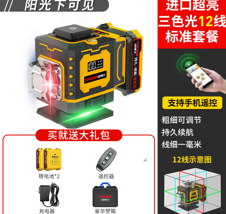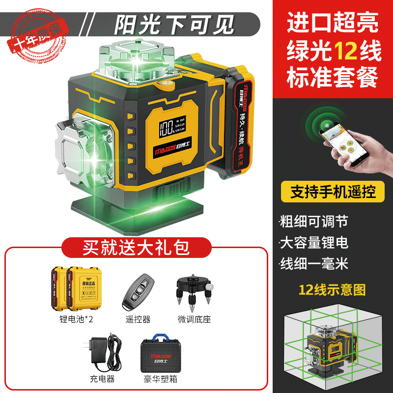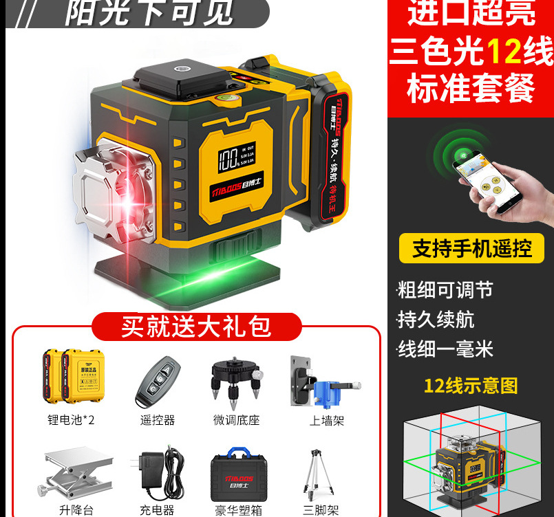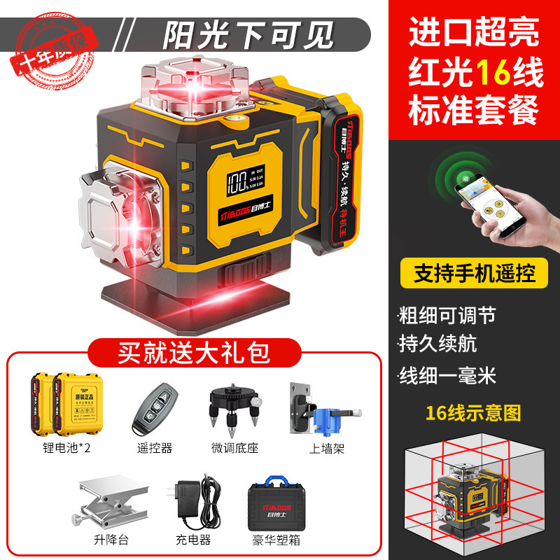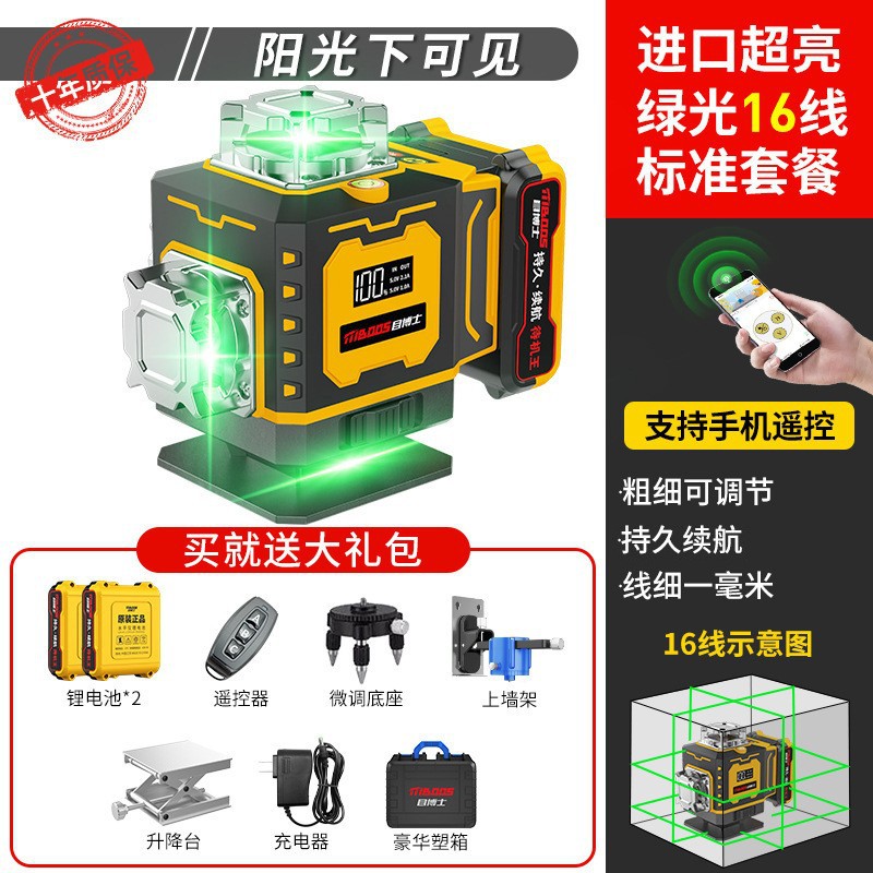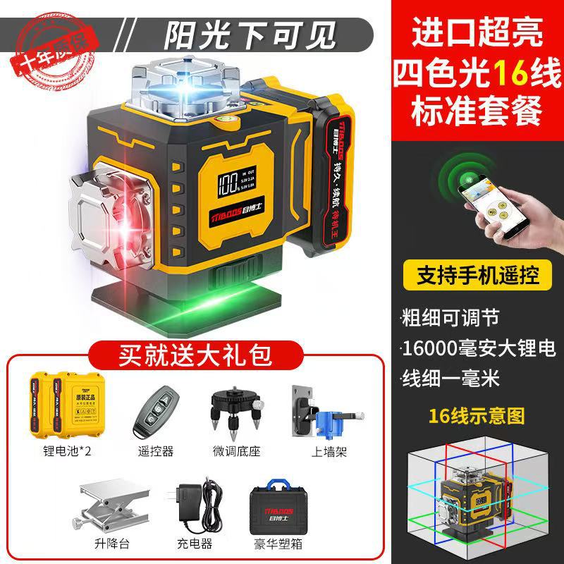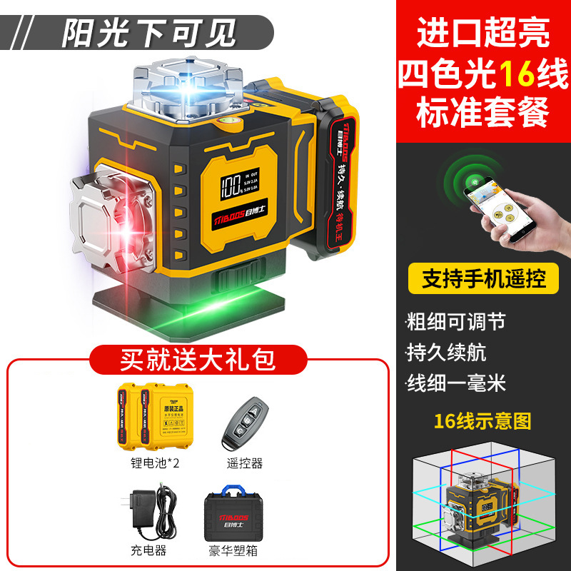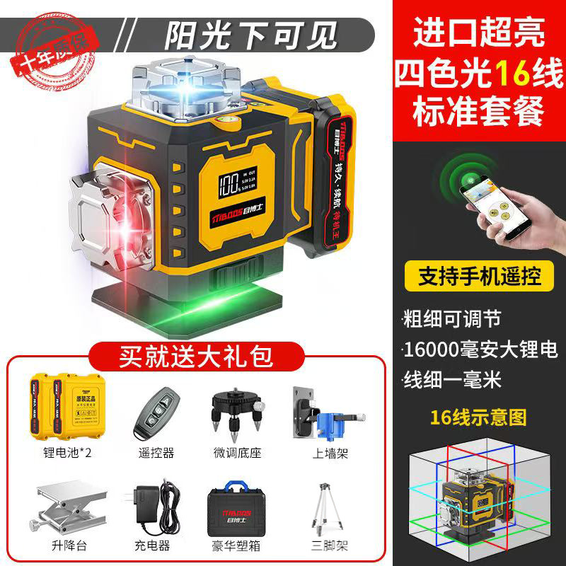 [g model yellow rotating] 16-line four-color light double g model yellow battery new plastic box [aluminum lifting table] + semi-plastic base + tripod
