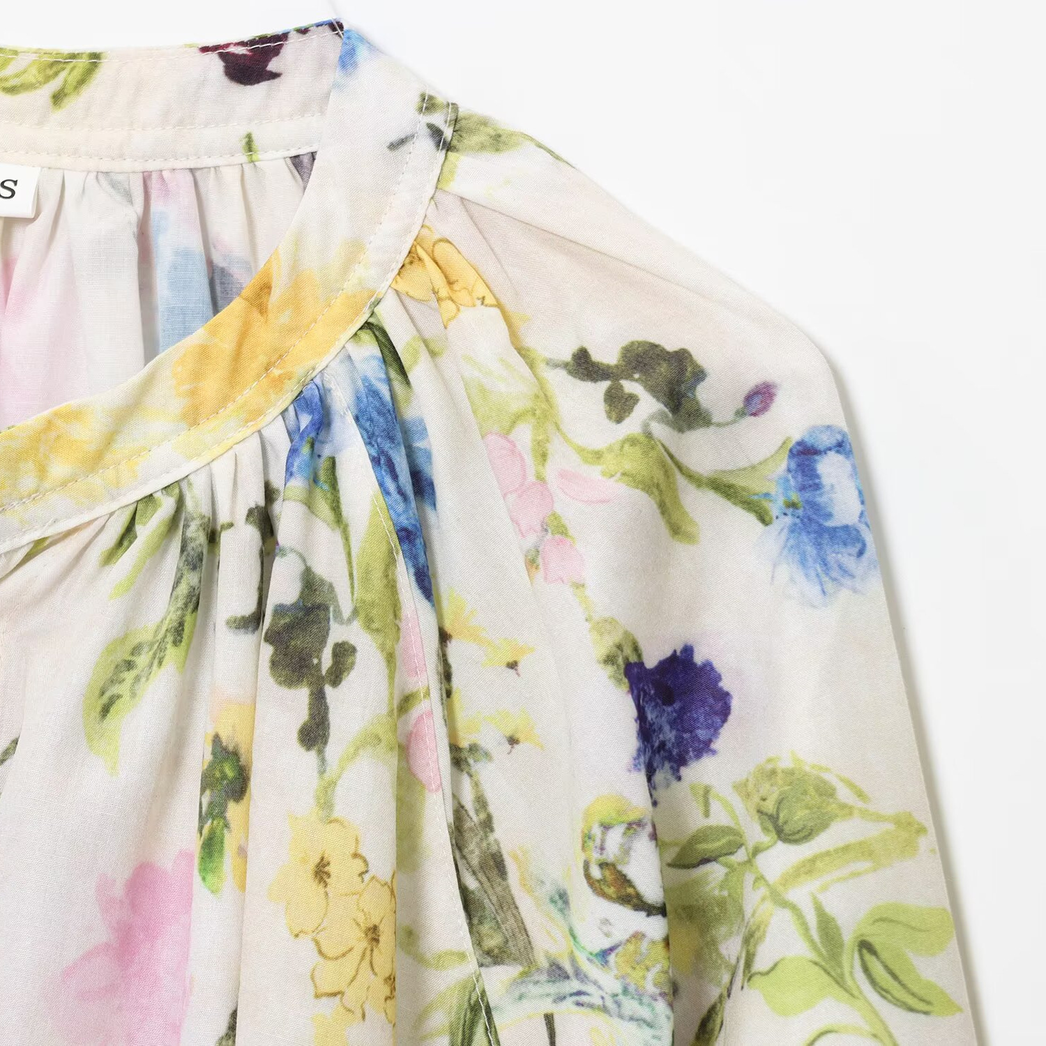 Pb&Za Women's 2025 Autum New Fashion Printed Small Stand Collar Cuff Lace-Up Design Shirt 4043079