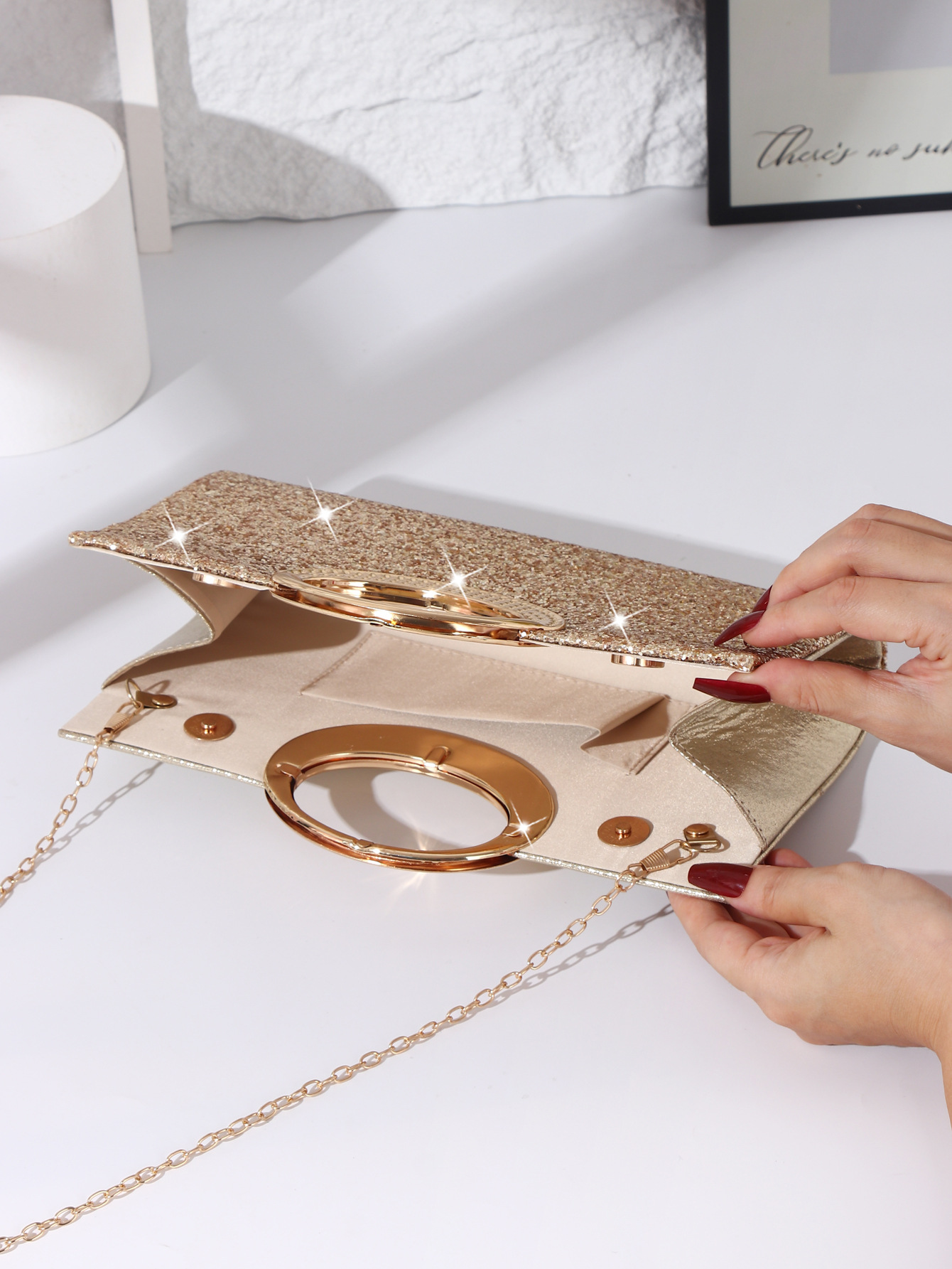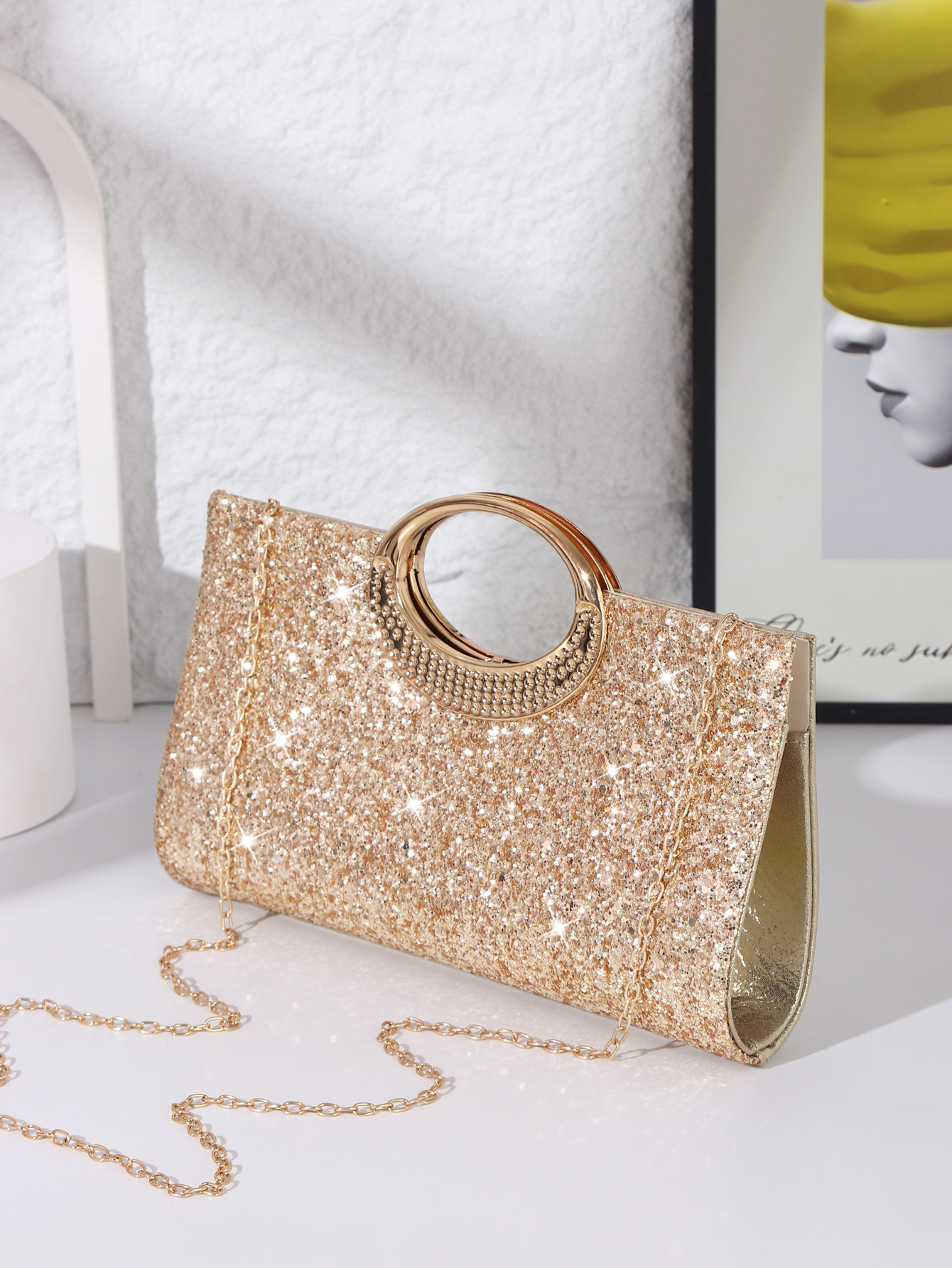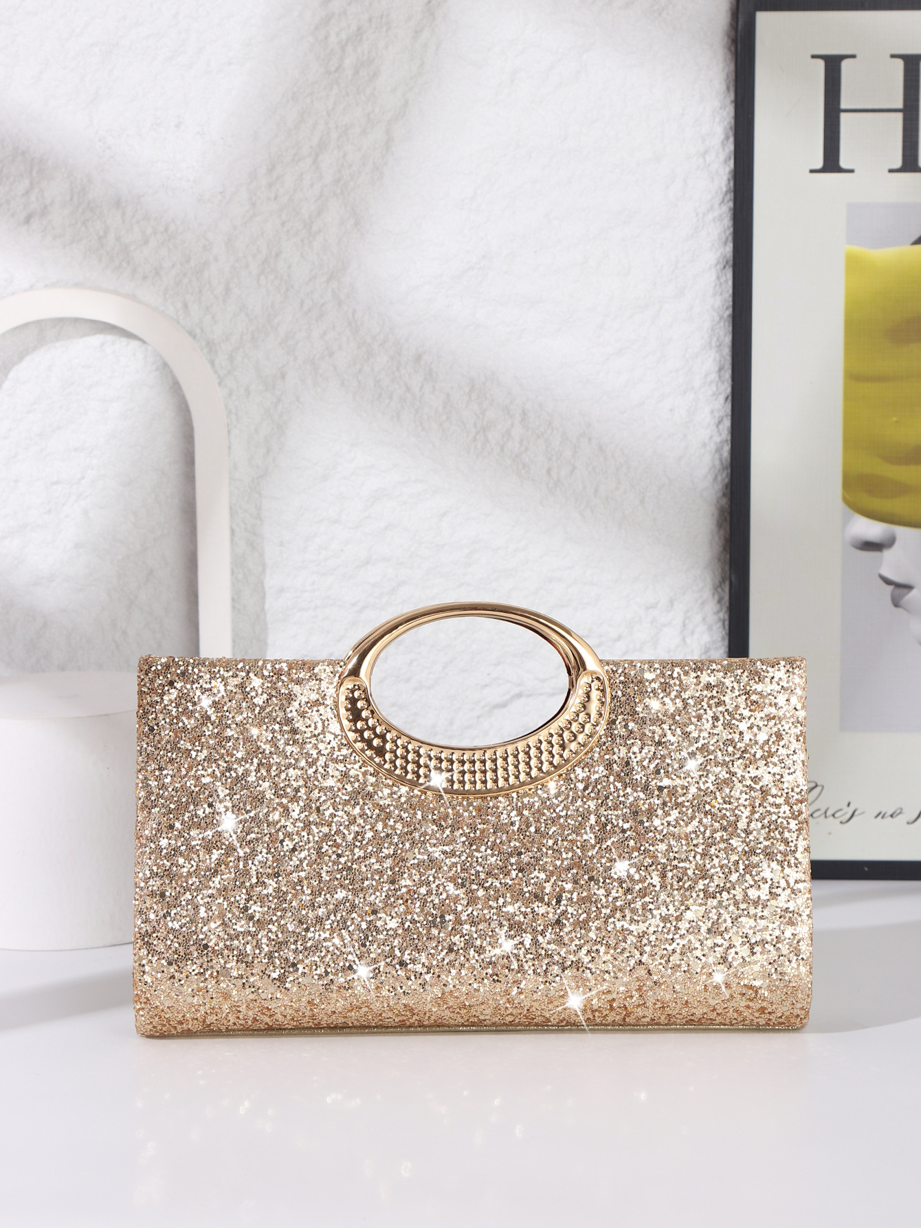 Cross-Border Popular Evening Bag, European and American Retro Large Ring Handbag, High-End Texture, Sparkling Fashion Trendy Clutch Bag