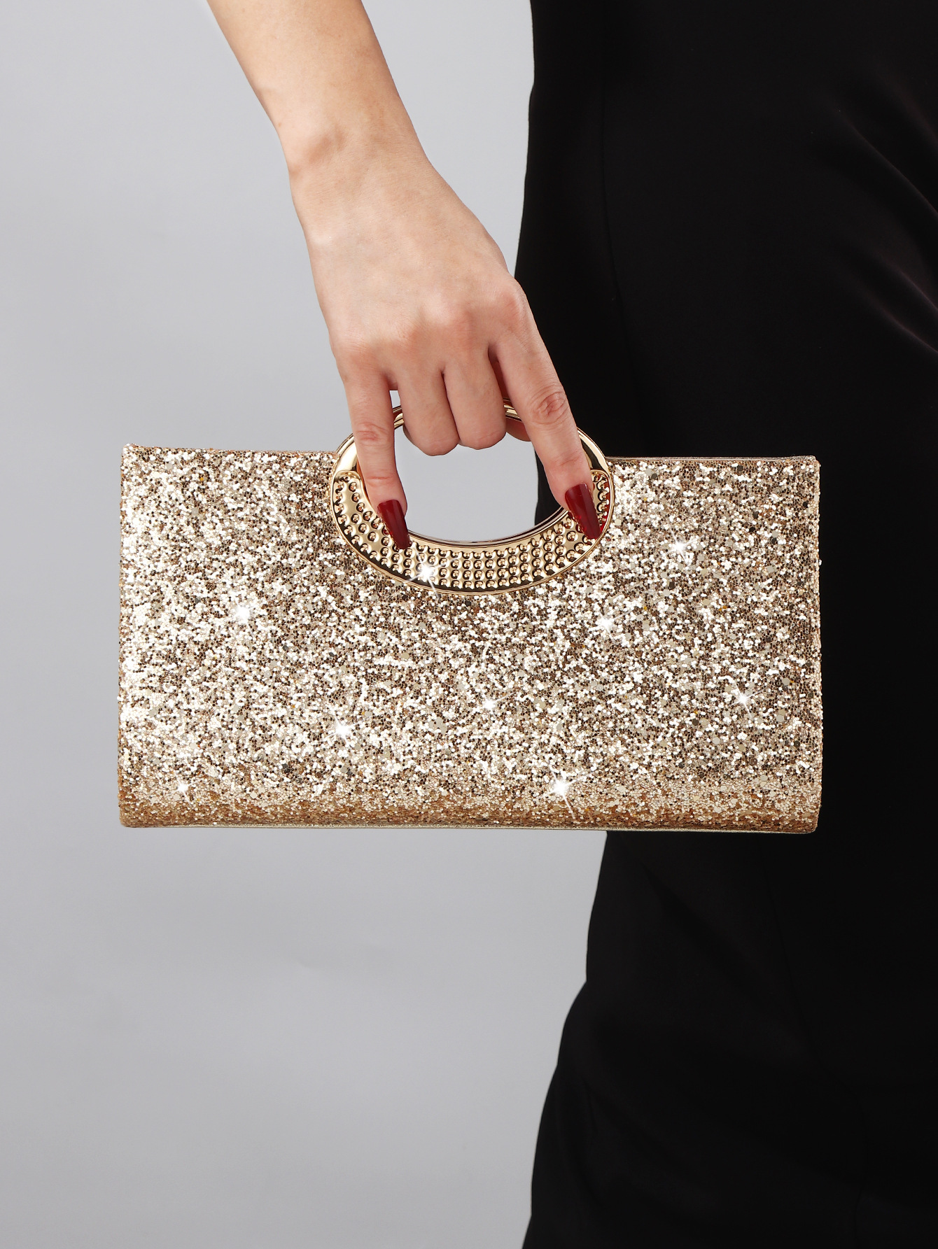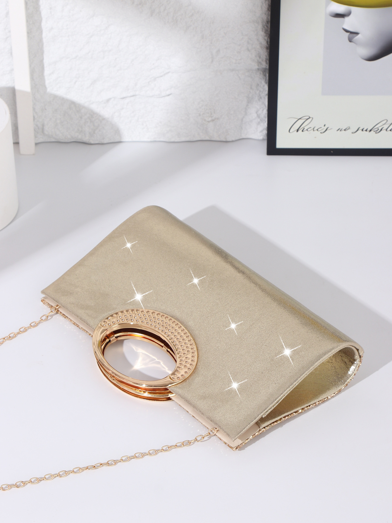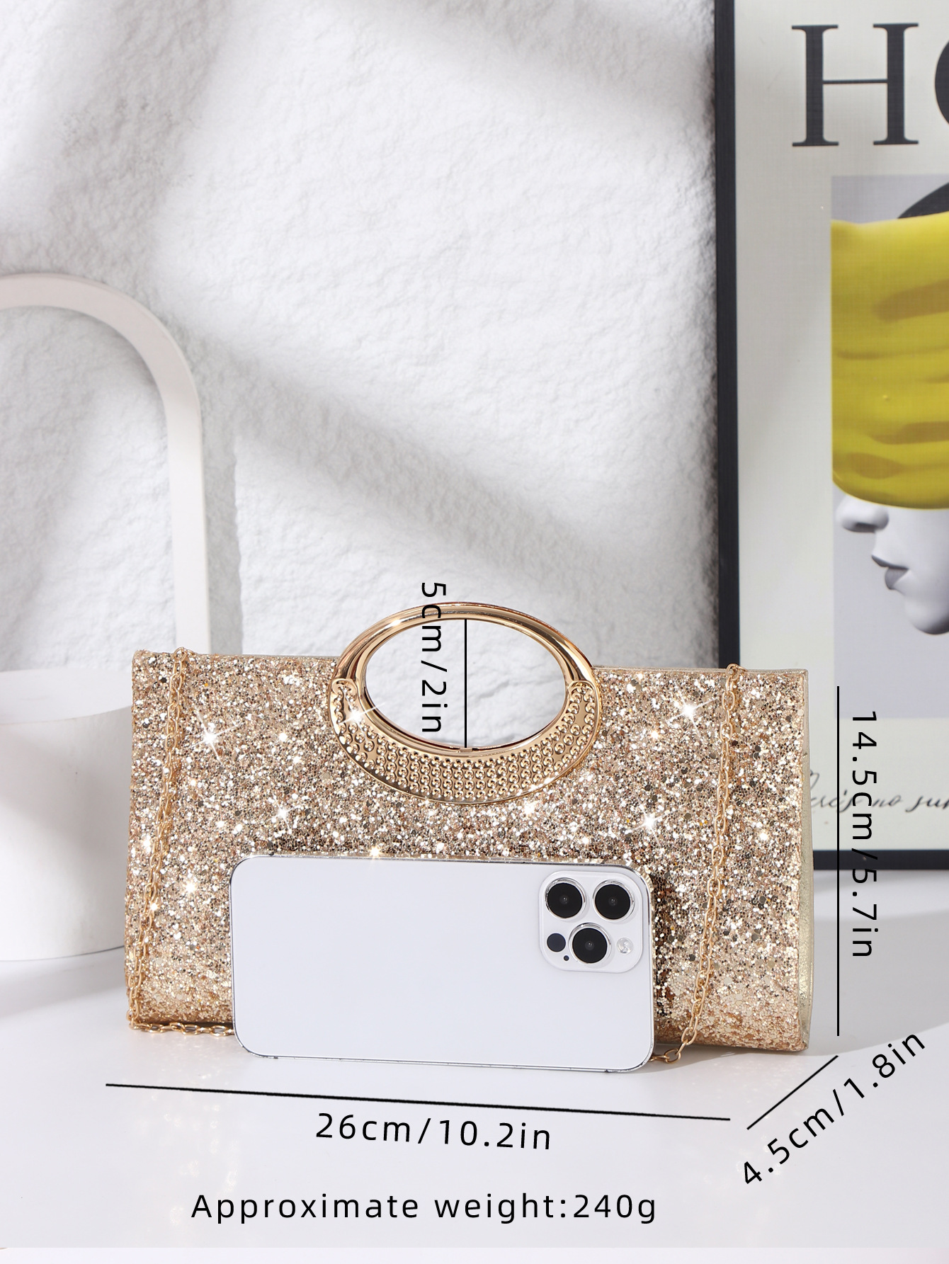 Cross-Border Popular Evening Bag, European and American Retro Large Ring Handbag, High-End Texture, Sparkling Fashion Trendy Clutch Bag