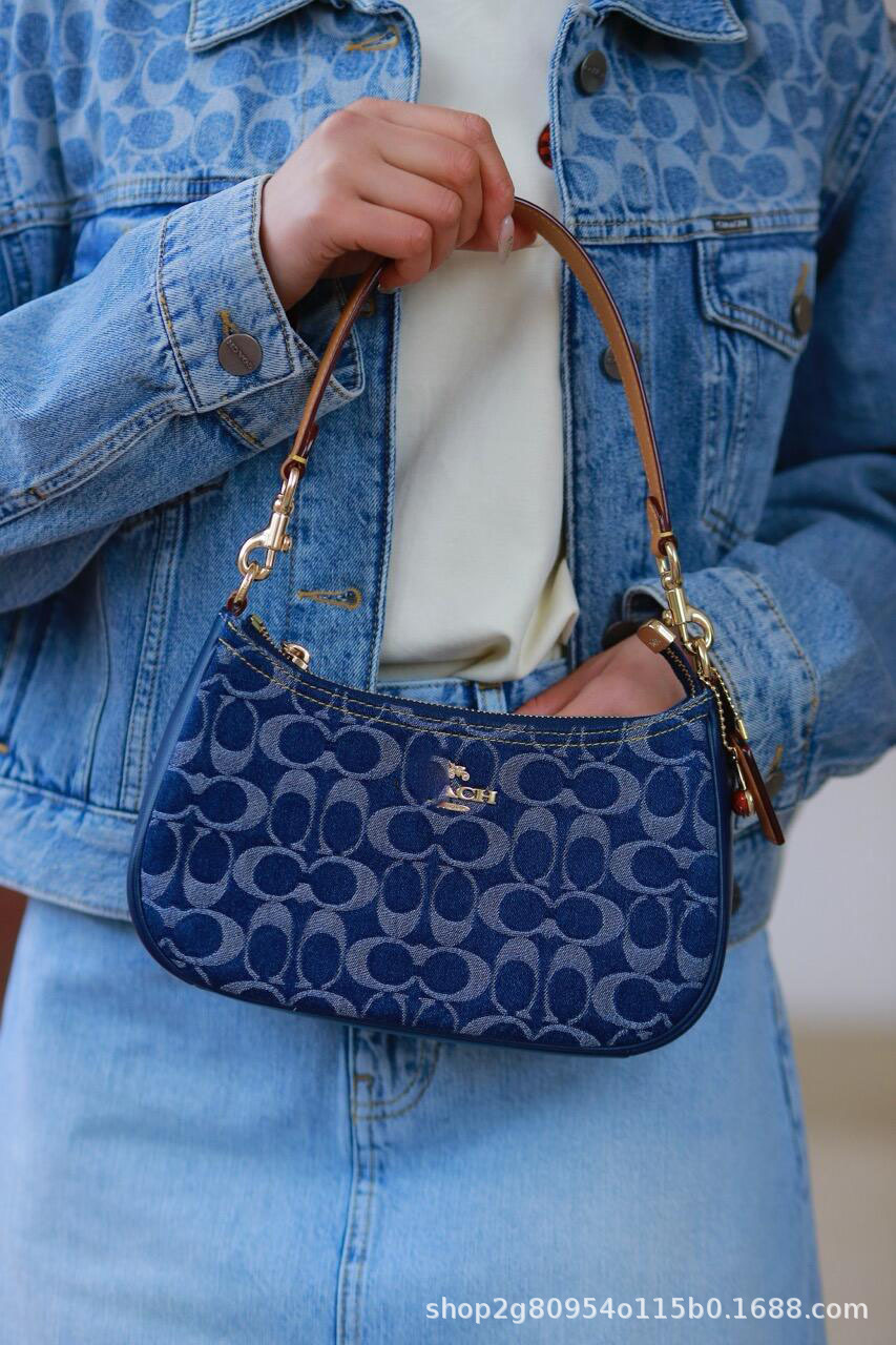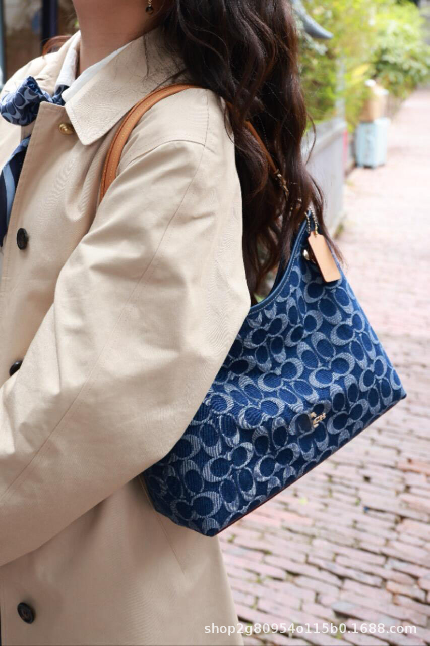 2025 New Style Kuo C Brand Printed Denim Blue Retro Underarm Bag Large Capacity Crossbody Vintage Hobo Bag Shoulder Bag