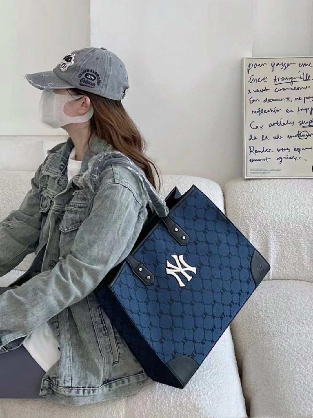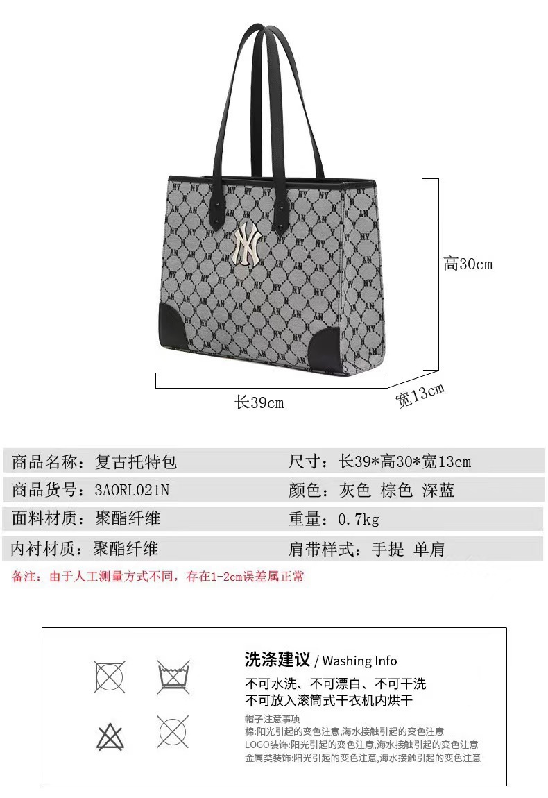 South Korea's 2025 New Mlb Tote Bag Women's Trendyy Fashion Handbag Daily Versatile Large-Capacity Shoulder Bag