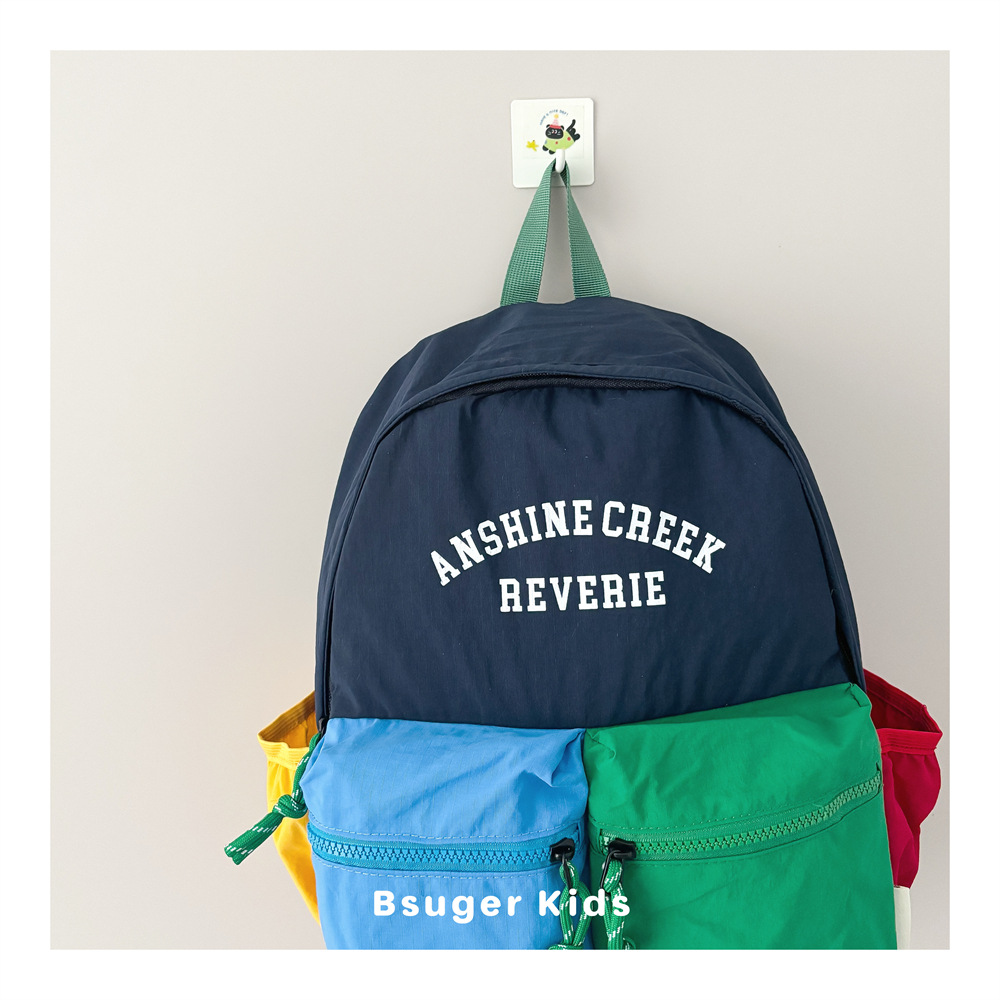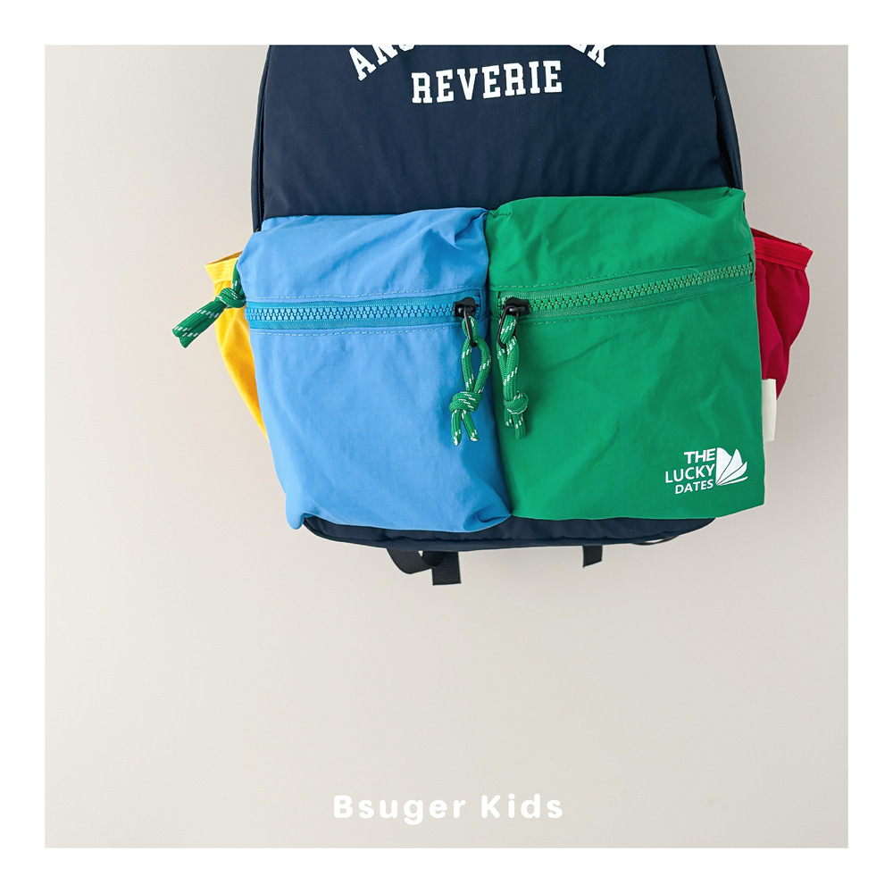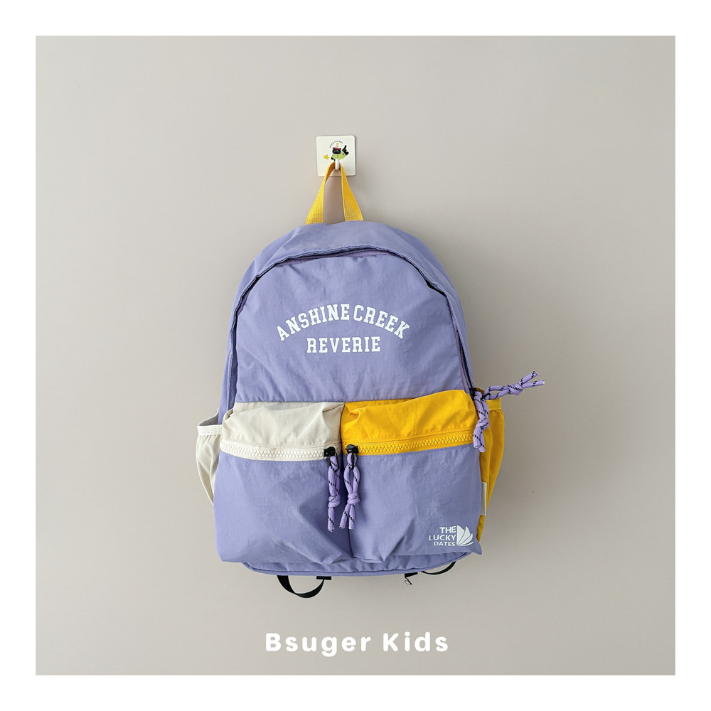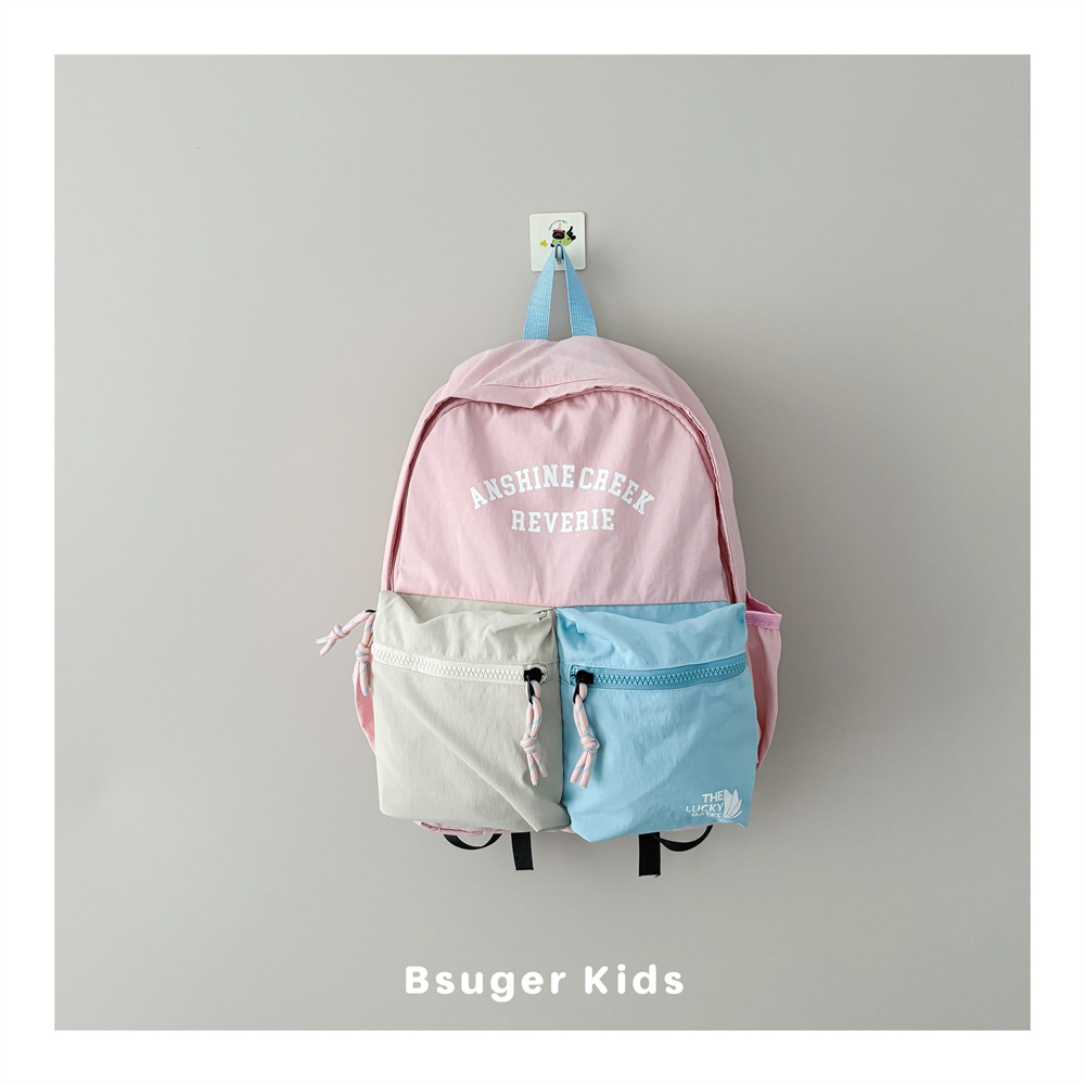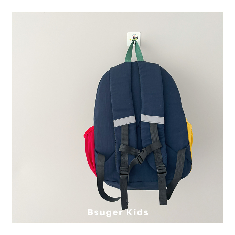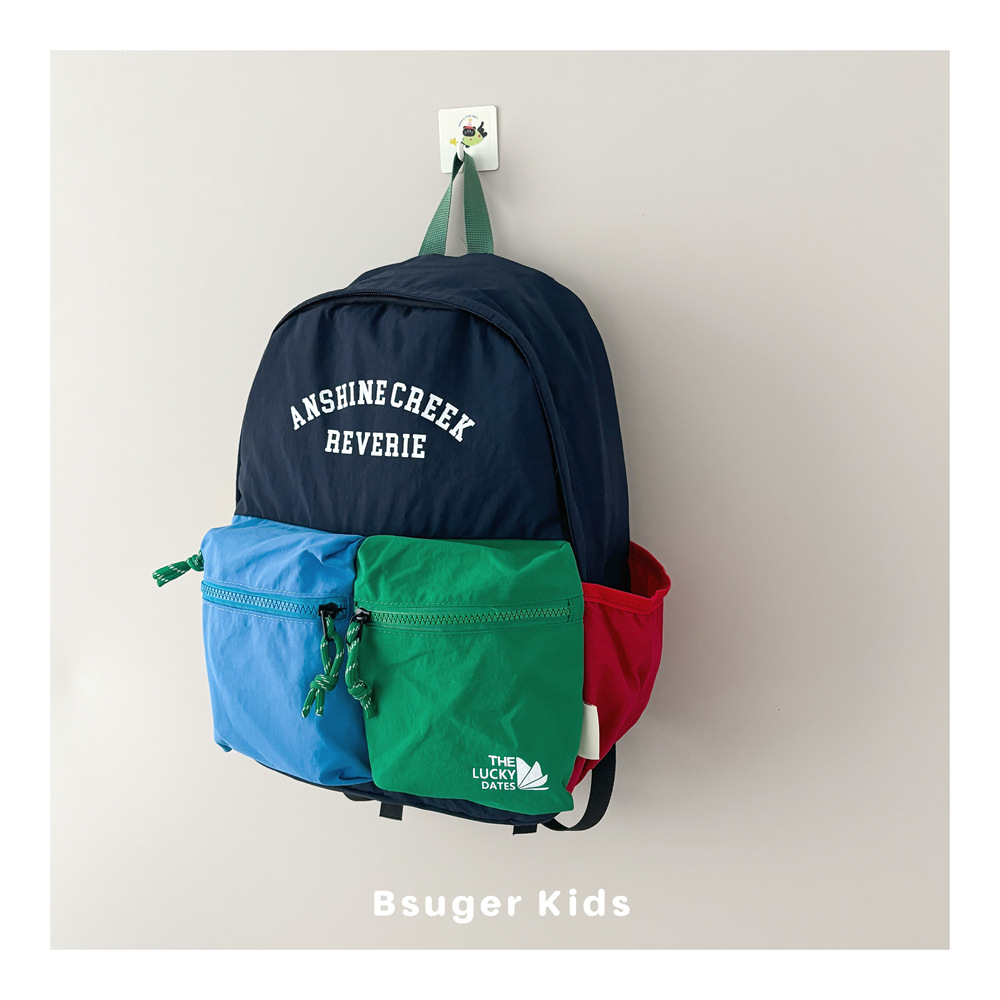 Ins Style Korean Version Contrasting Color Casual Double Pocket Kidsren's Backpack Boys and Girls Primary School Students Large Capacity Baby Backpack