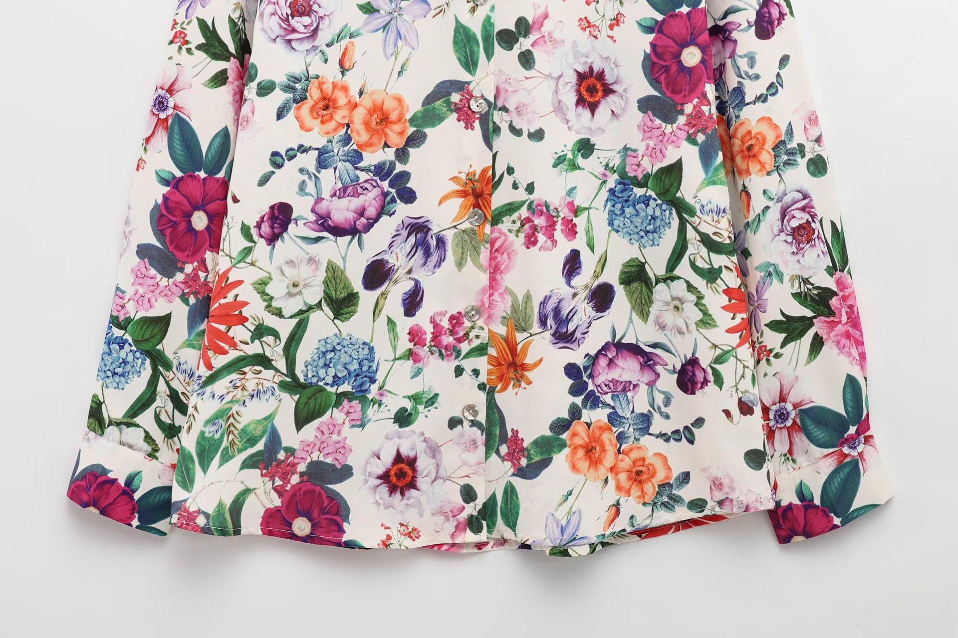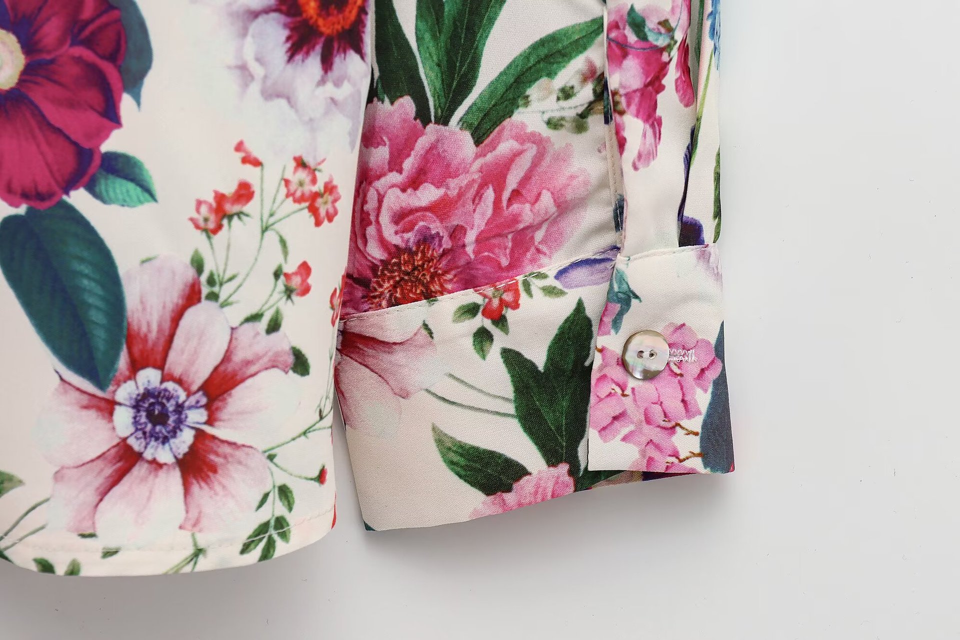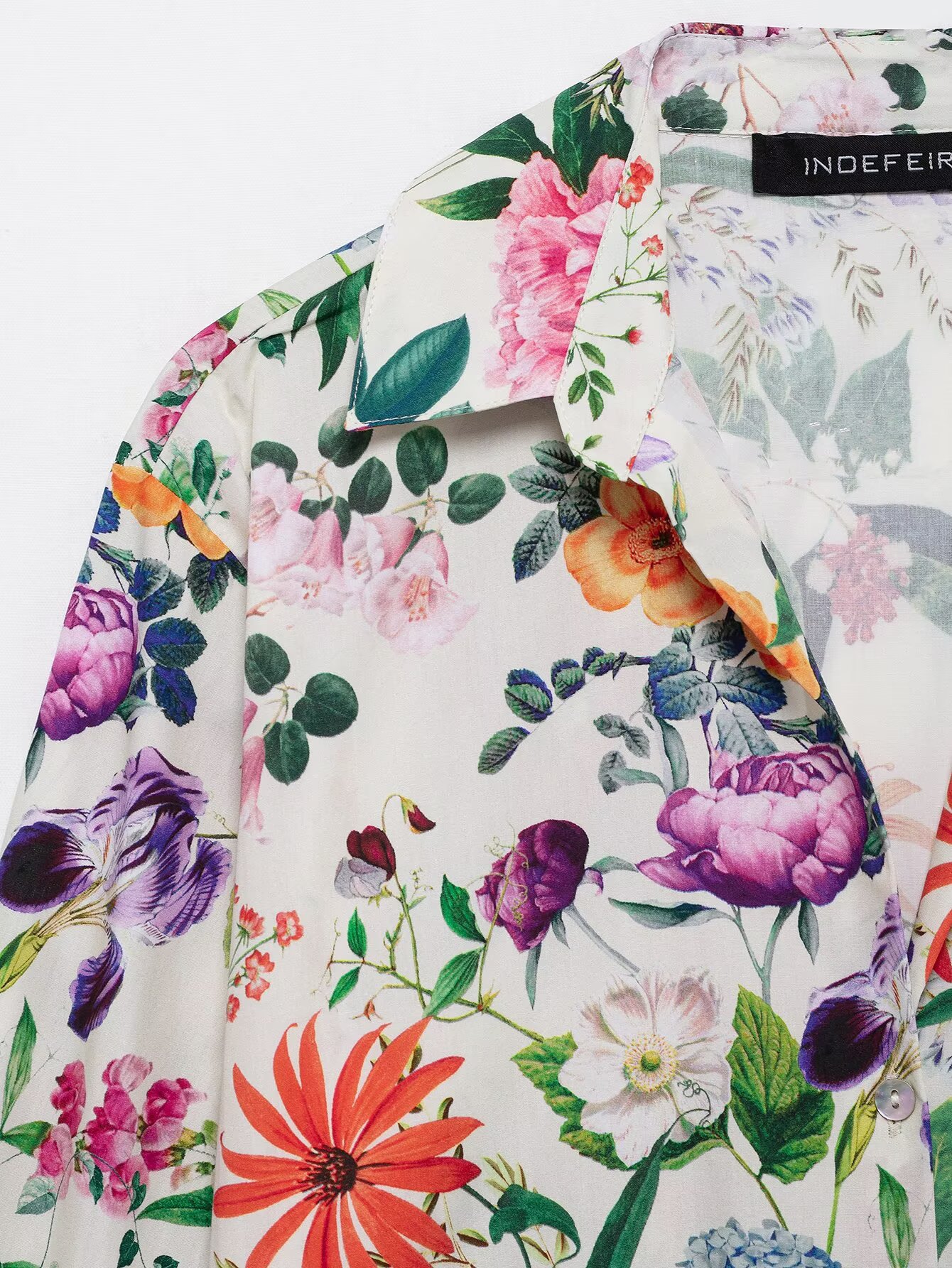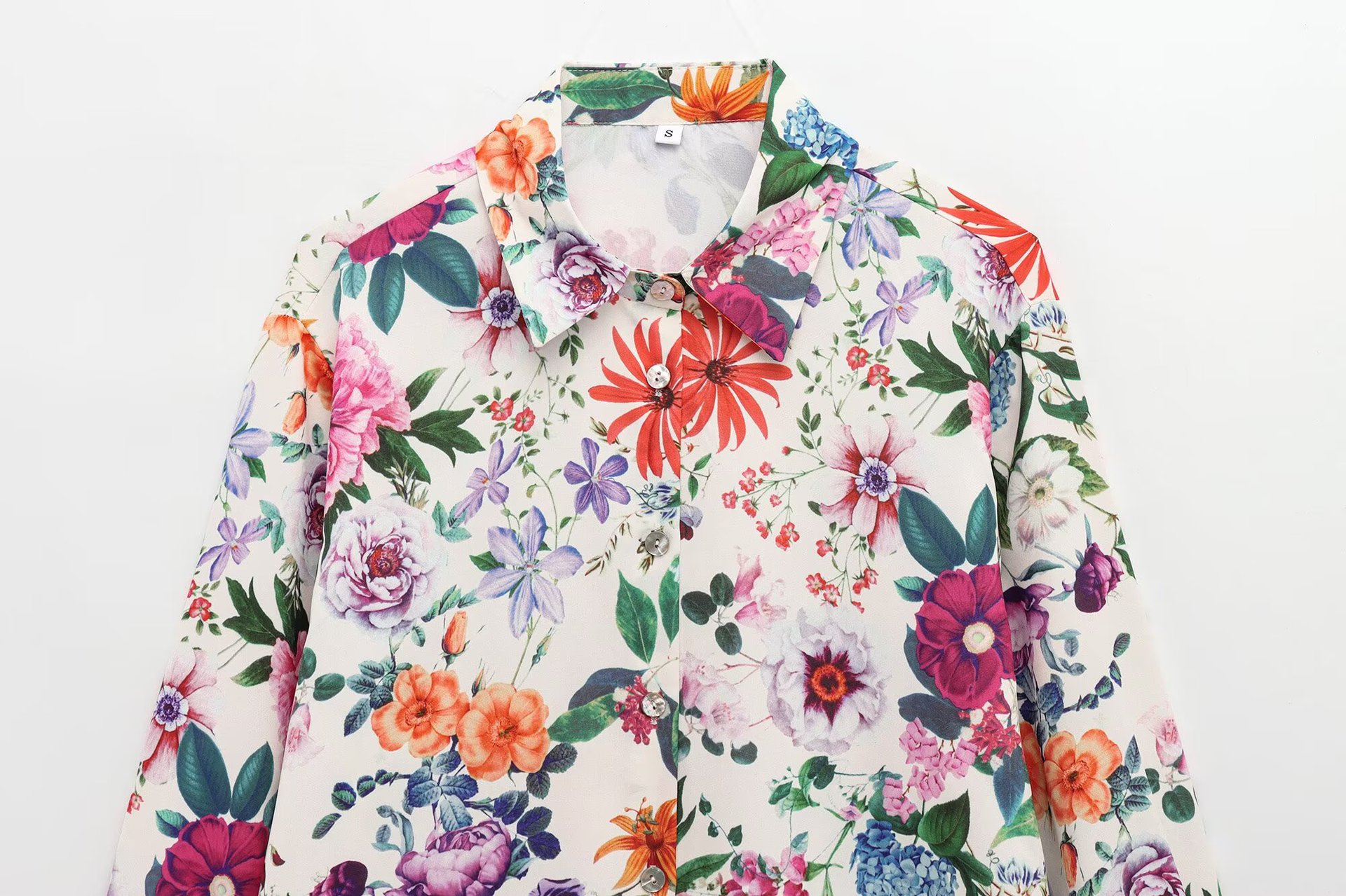 Foreign Trade Cross-Border Popular Shirt Za Spring New Style European and American Vacation Style Floral Print Poplin Long-Sleeved Fashion Shirt