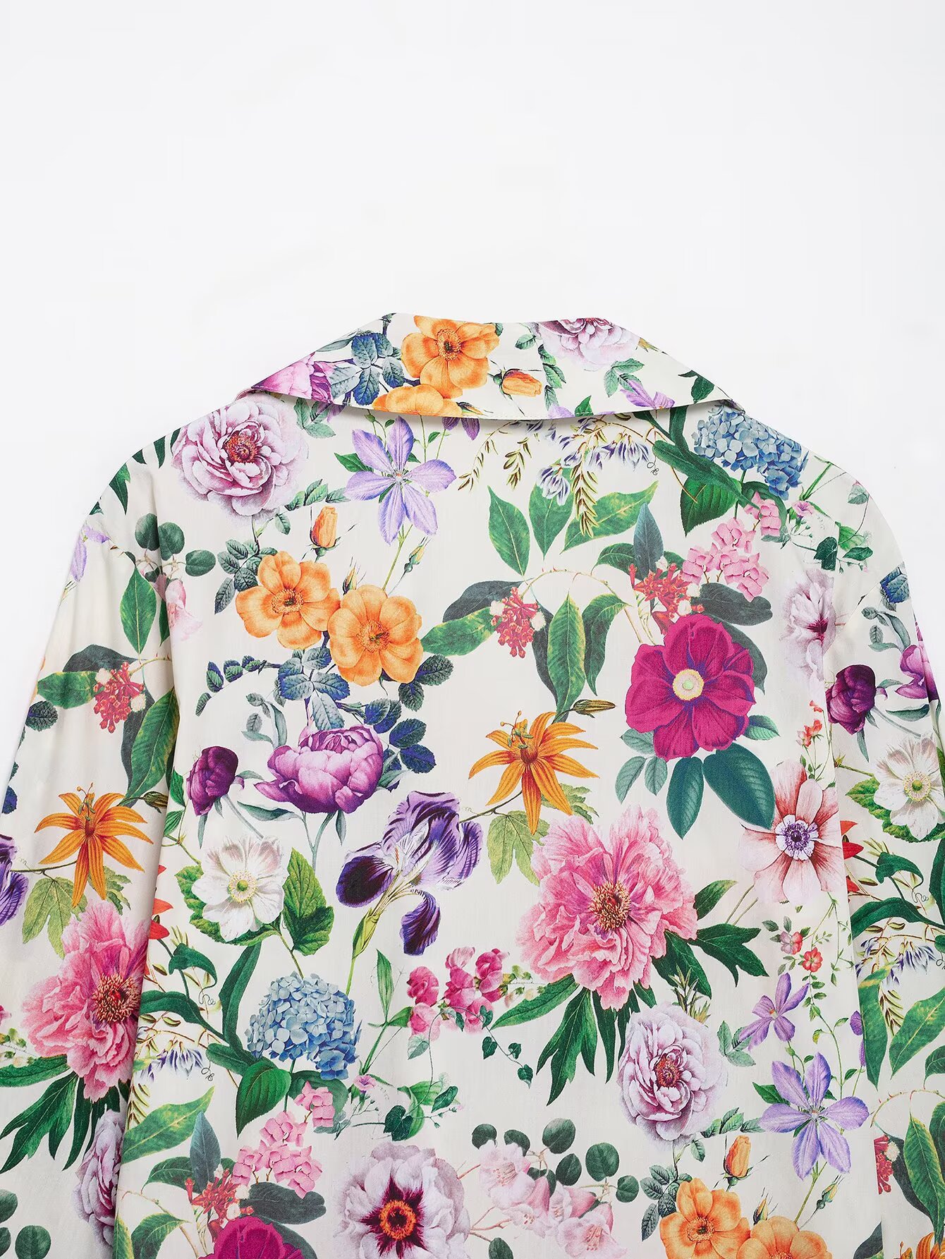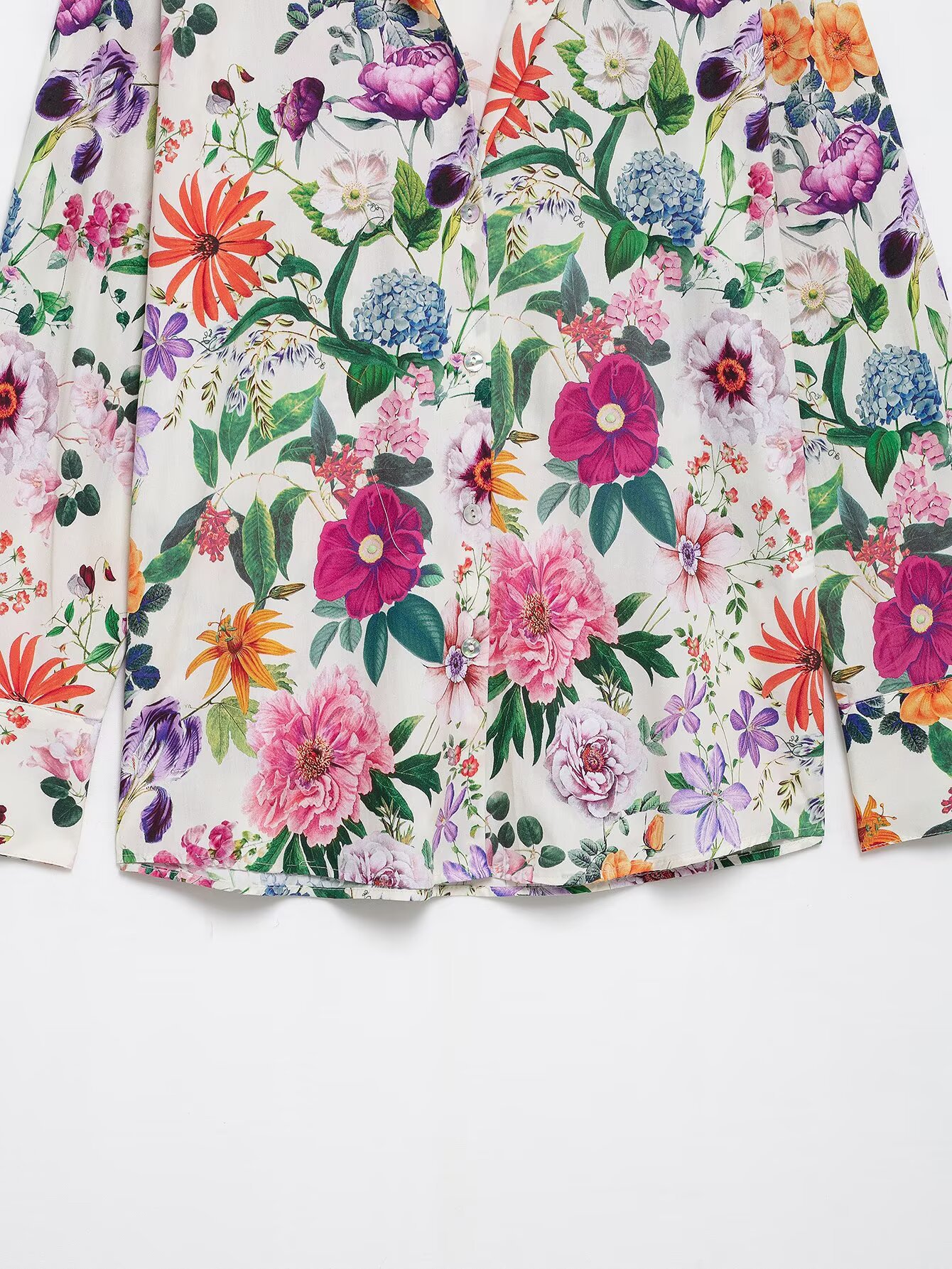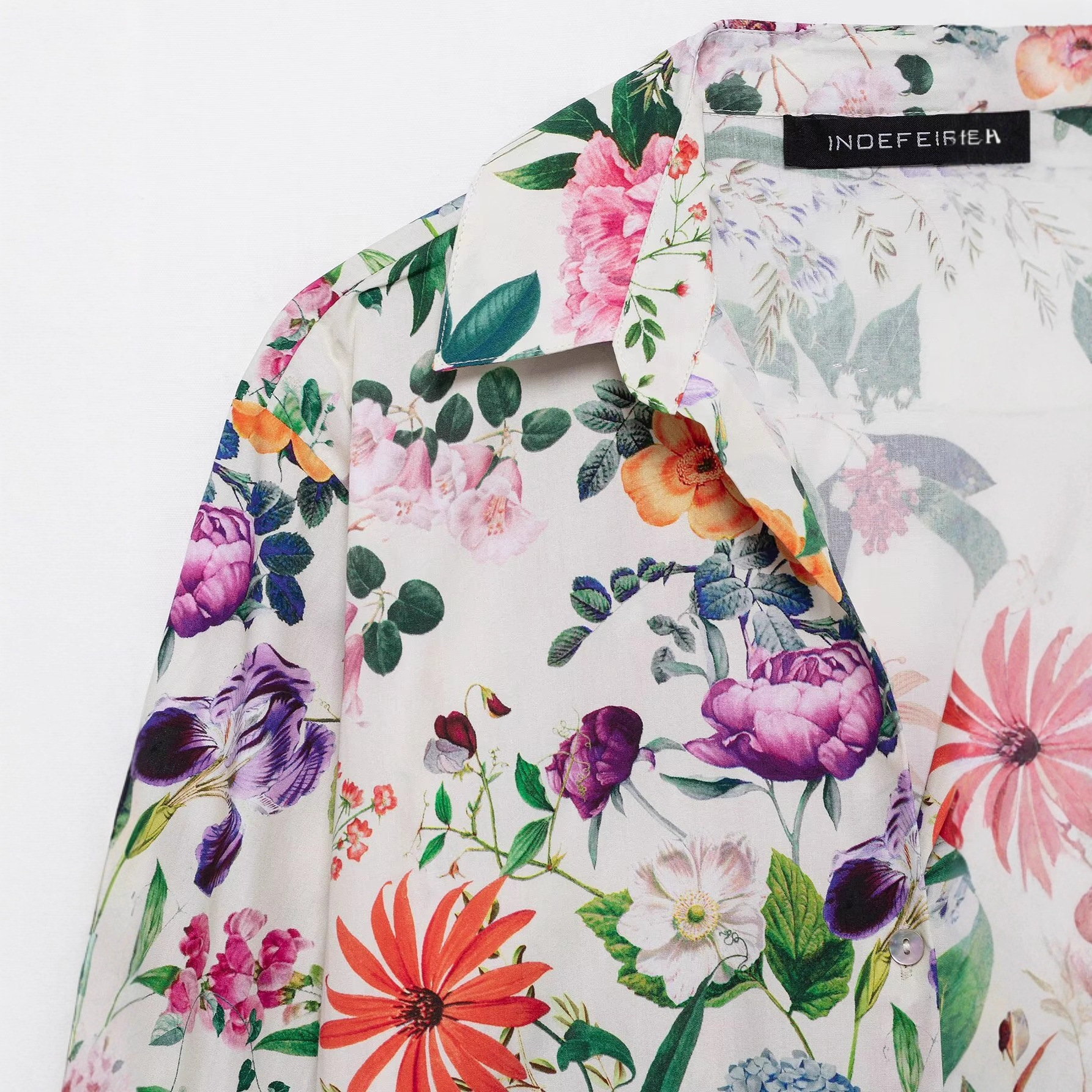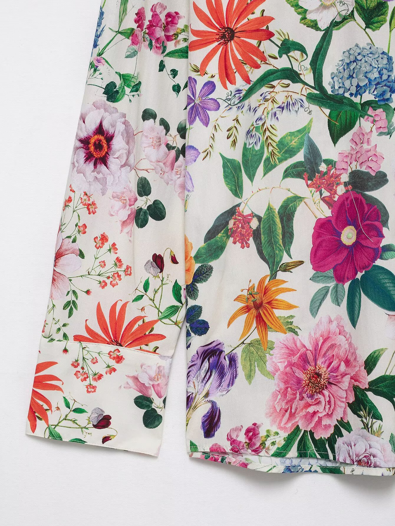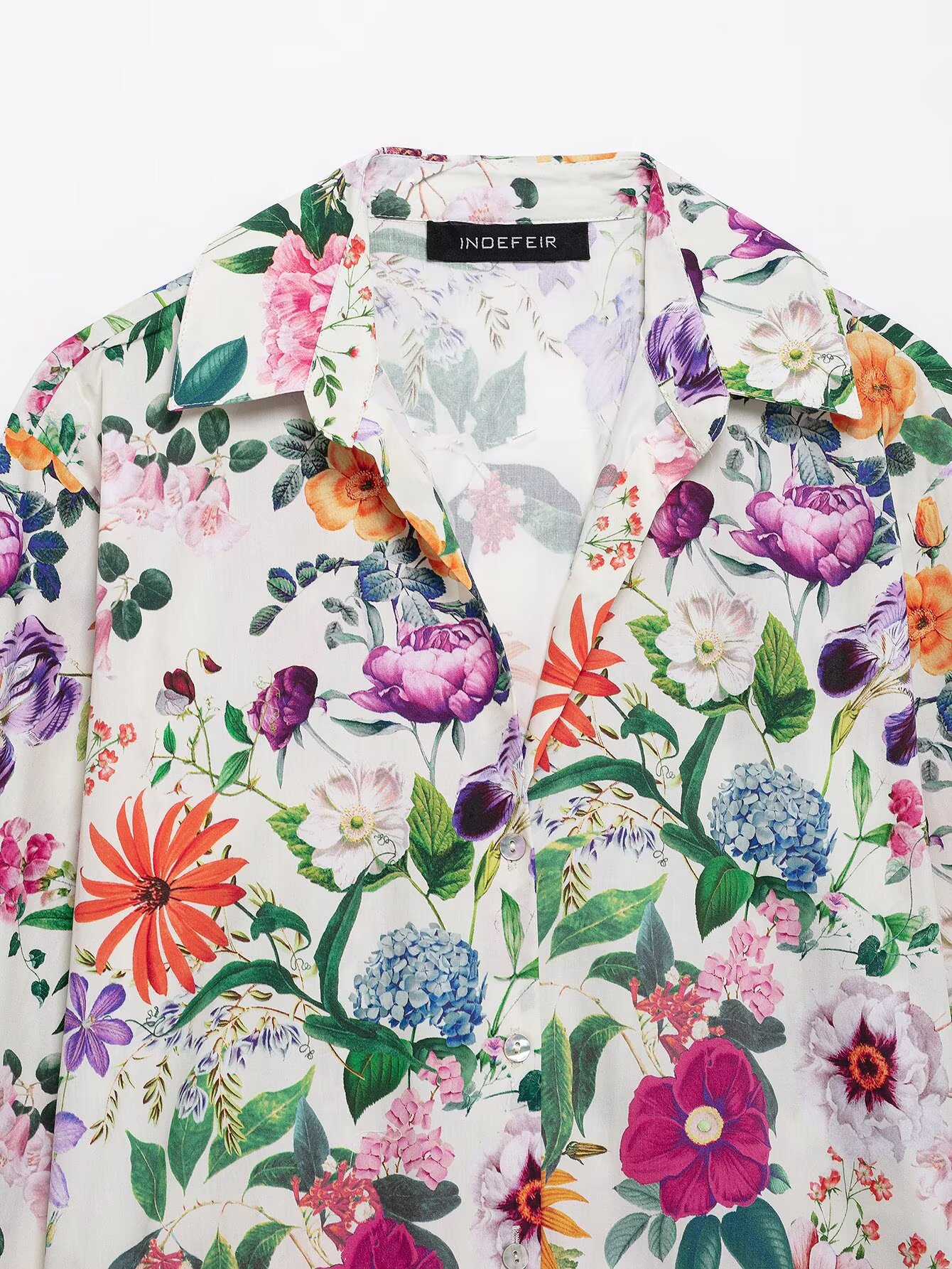 Foreign Trade Cross-Border Popular Shirt Za Spring New Style European and American Vacation Style Floral Print Poplin Long-Sleeved Fashion Shirt
