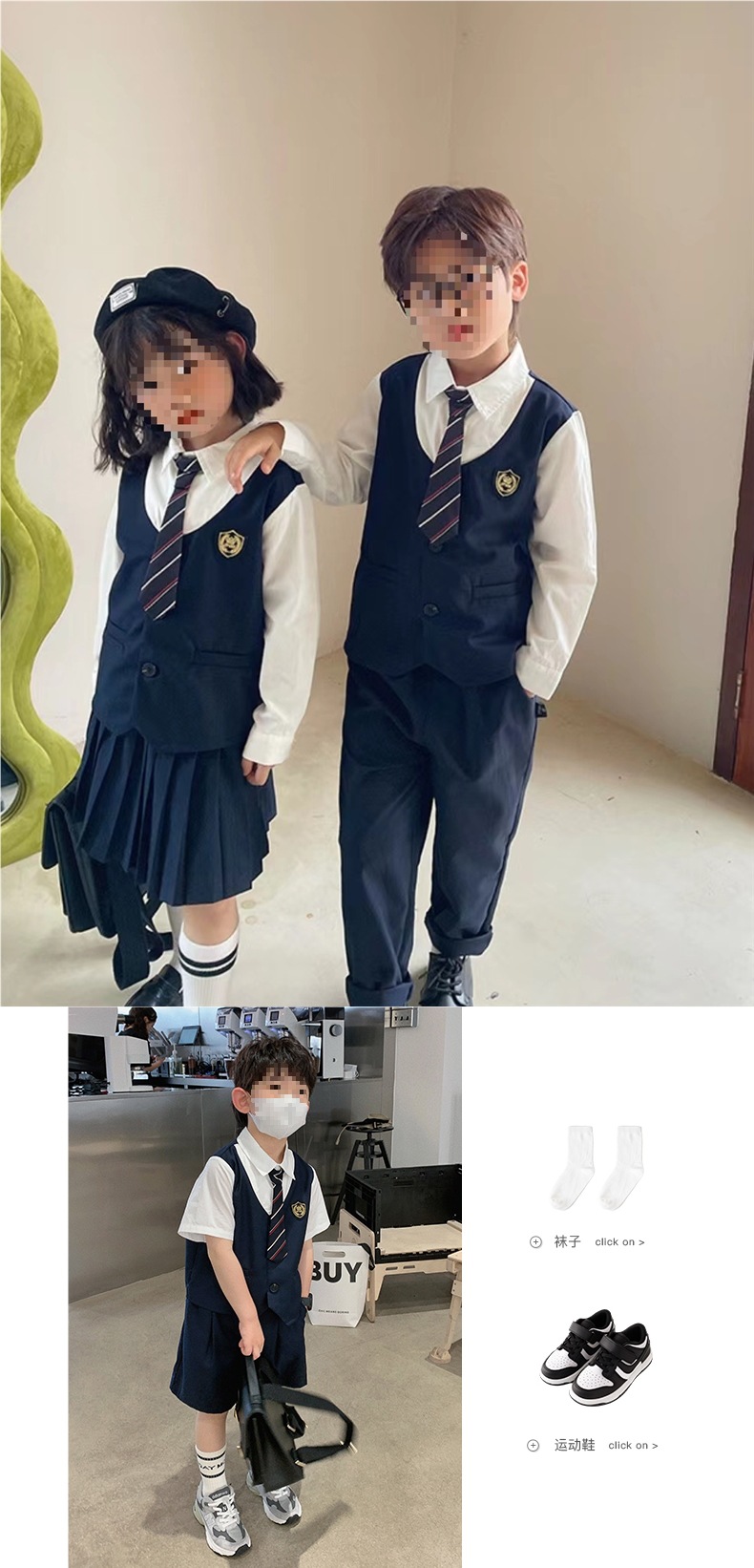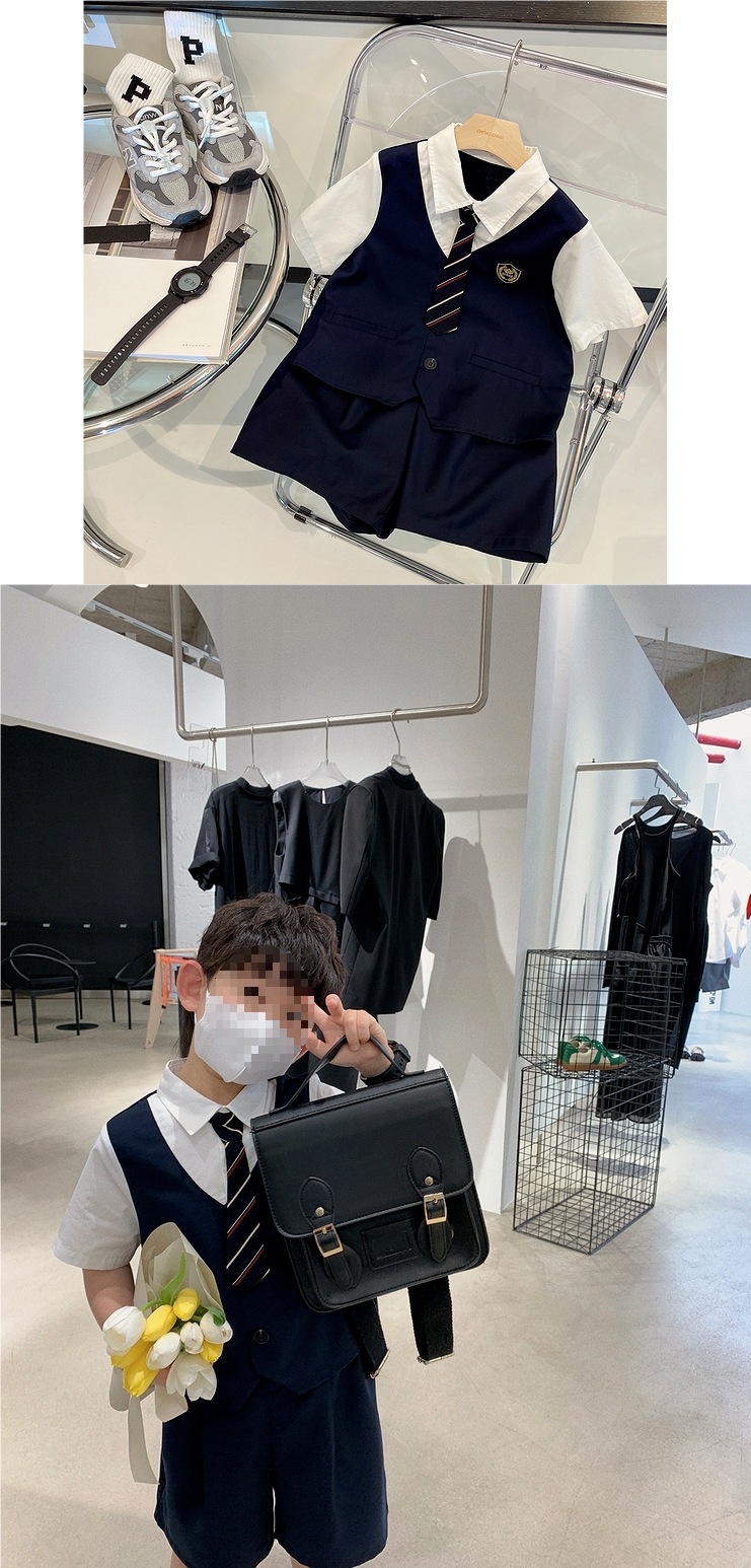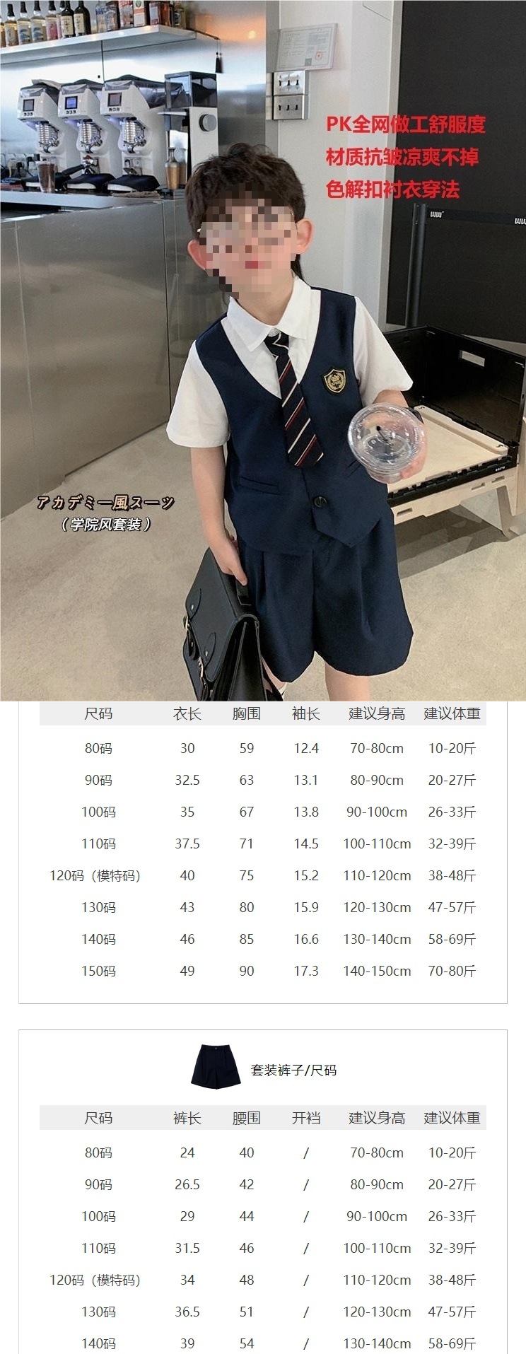 Black and white short-sleeved suit, anti-wrinkle and non-fading
