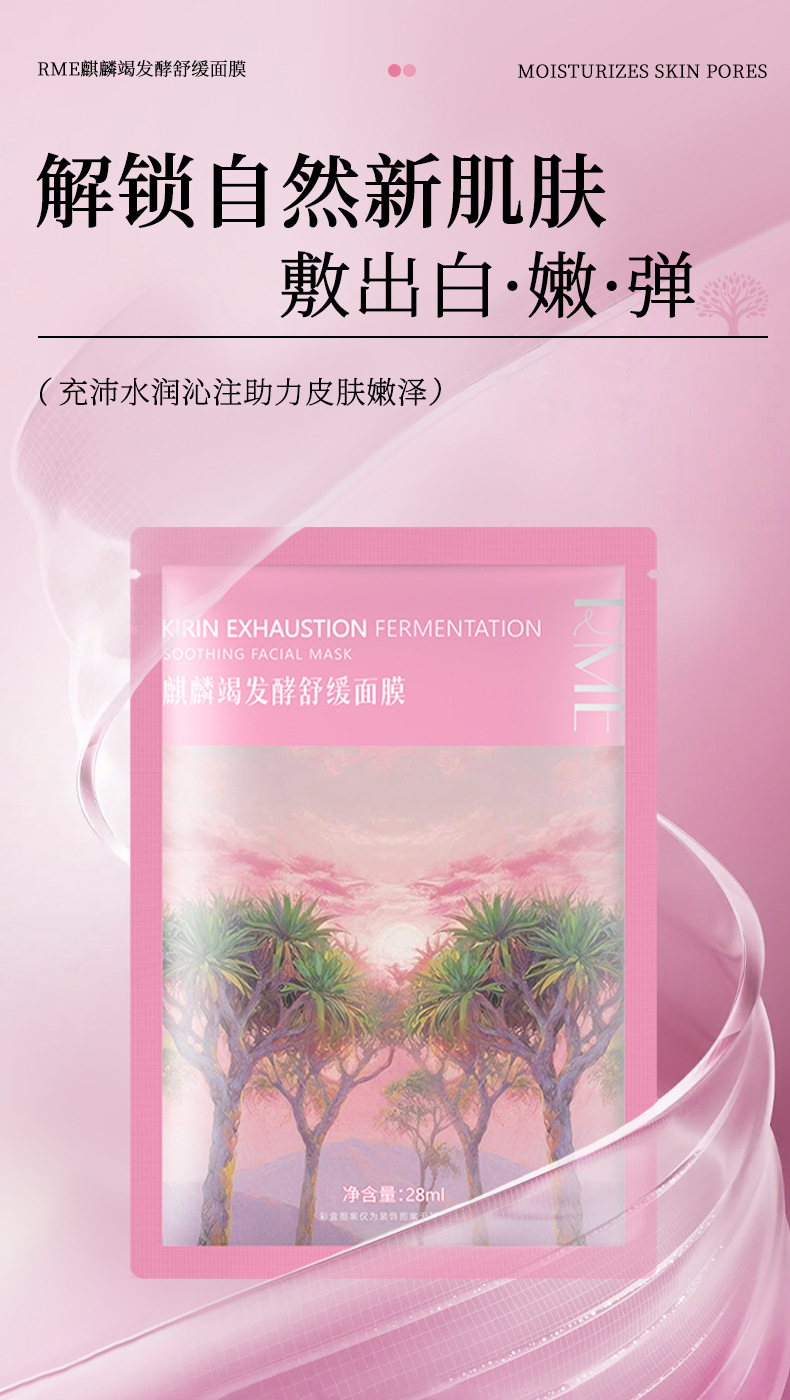 Rme kirin exhaust fermented soothing mask 28ml*5 pieces/box