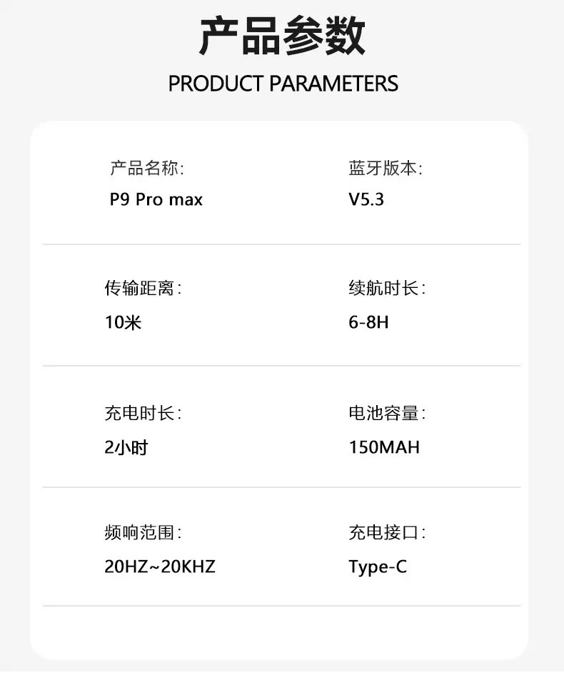 Bluetooth Headset Head-Mounted P9Promax Wireless Sports Ultra-Long Battery Life Huaqiangbei Headset Manufacturer Wholesale