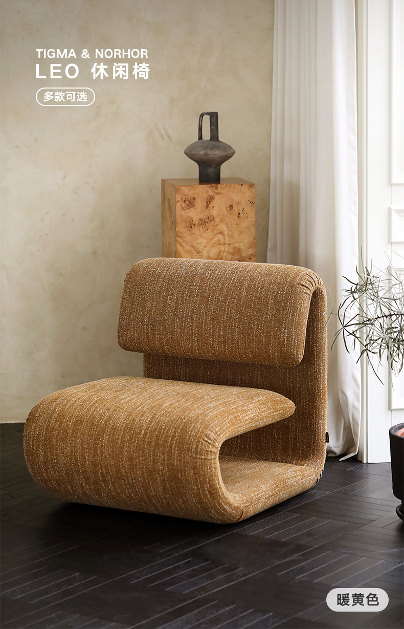 Fangyu Zheng Scandinavian French Cream Retro Mid-Century Style/Leo Leisure Chair Fabric Single Sofa Chair