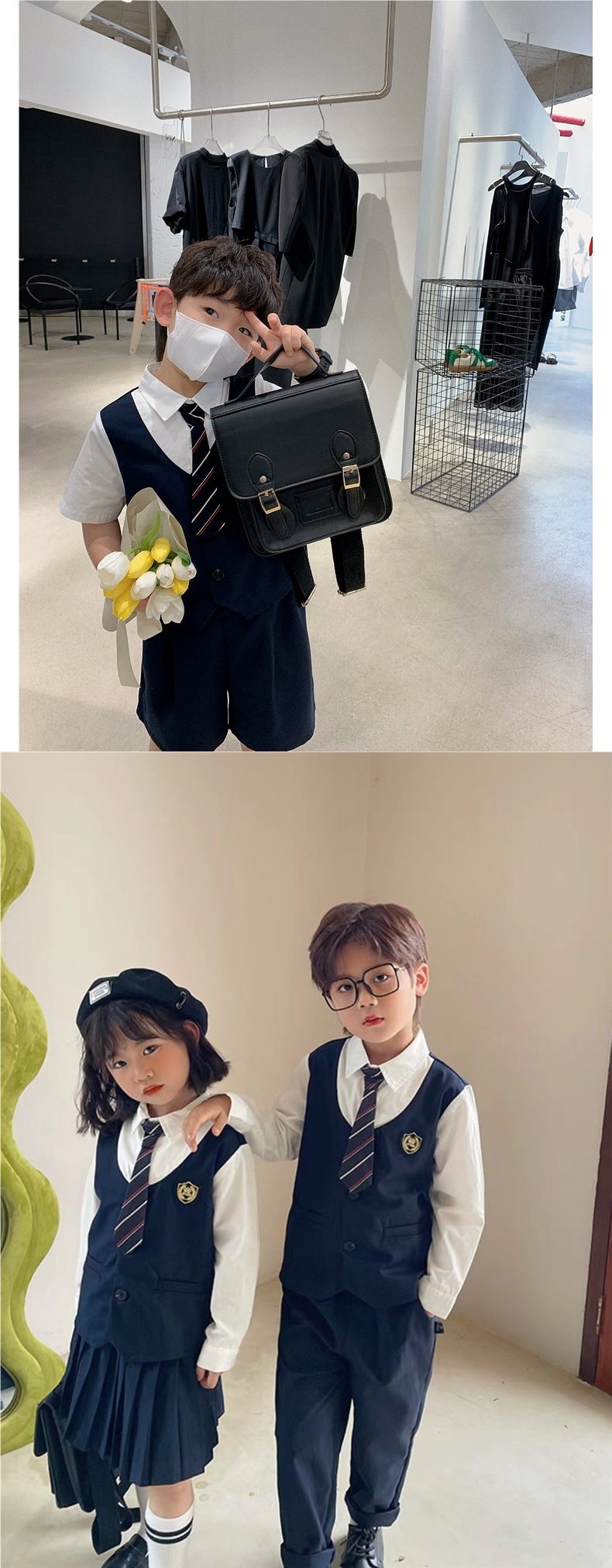 Black and white short-sleeved suit, anti-wrinkle and non-fading