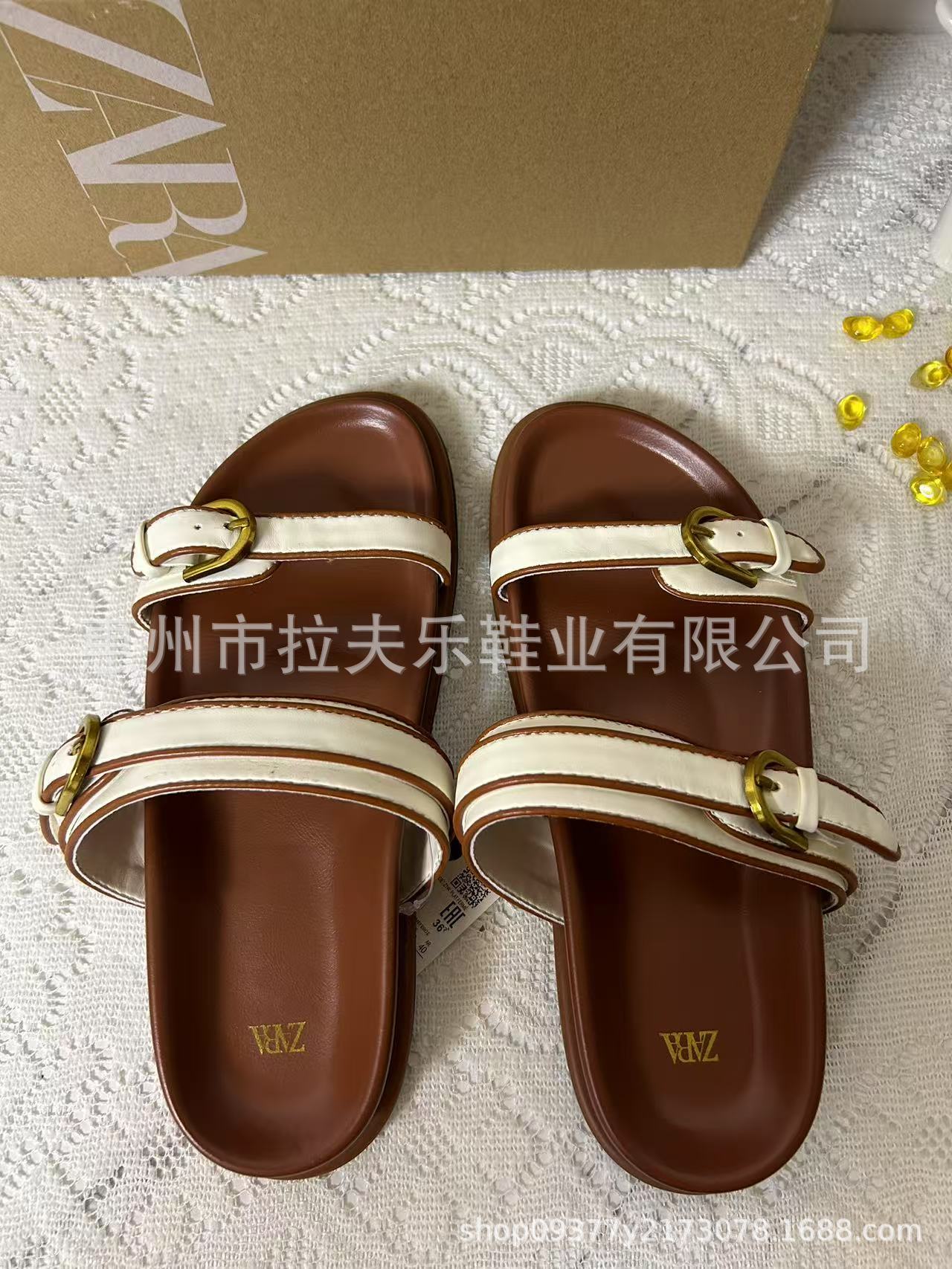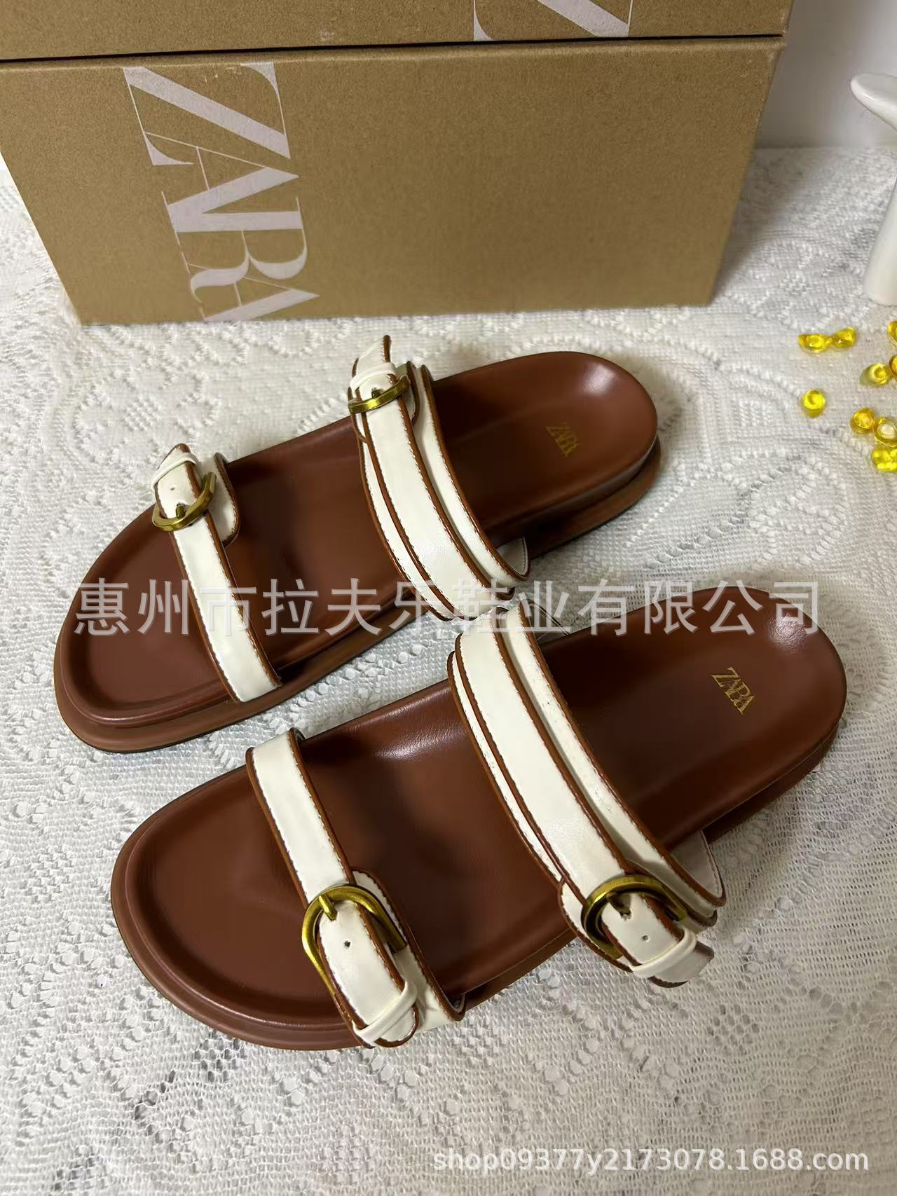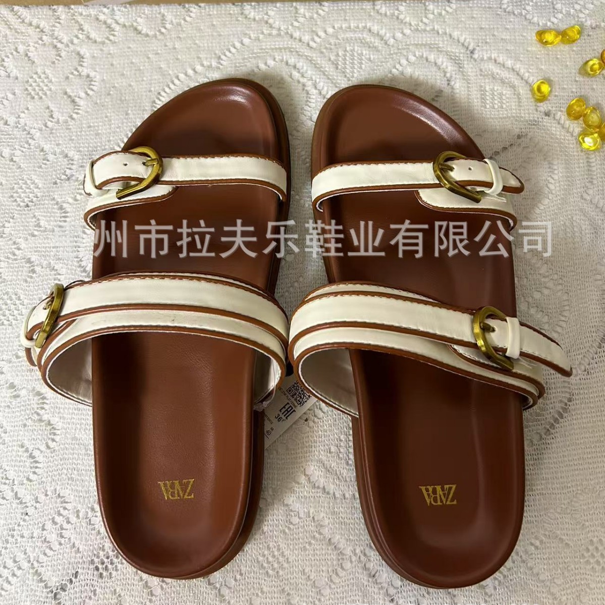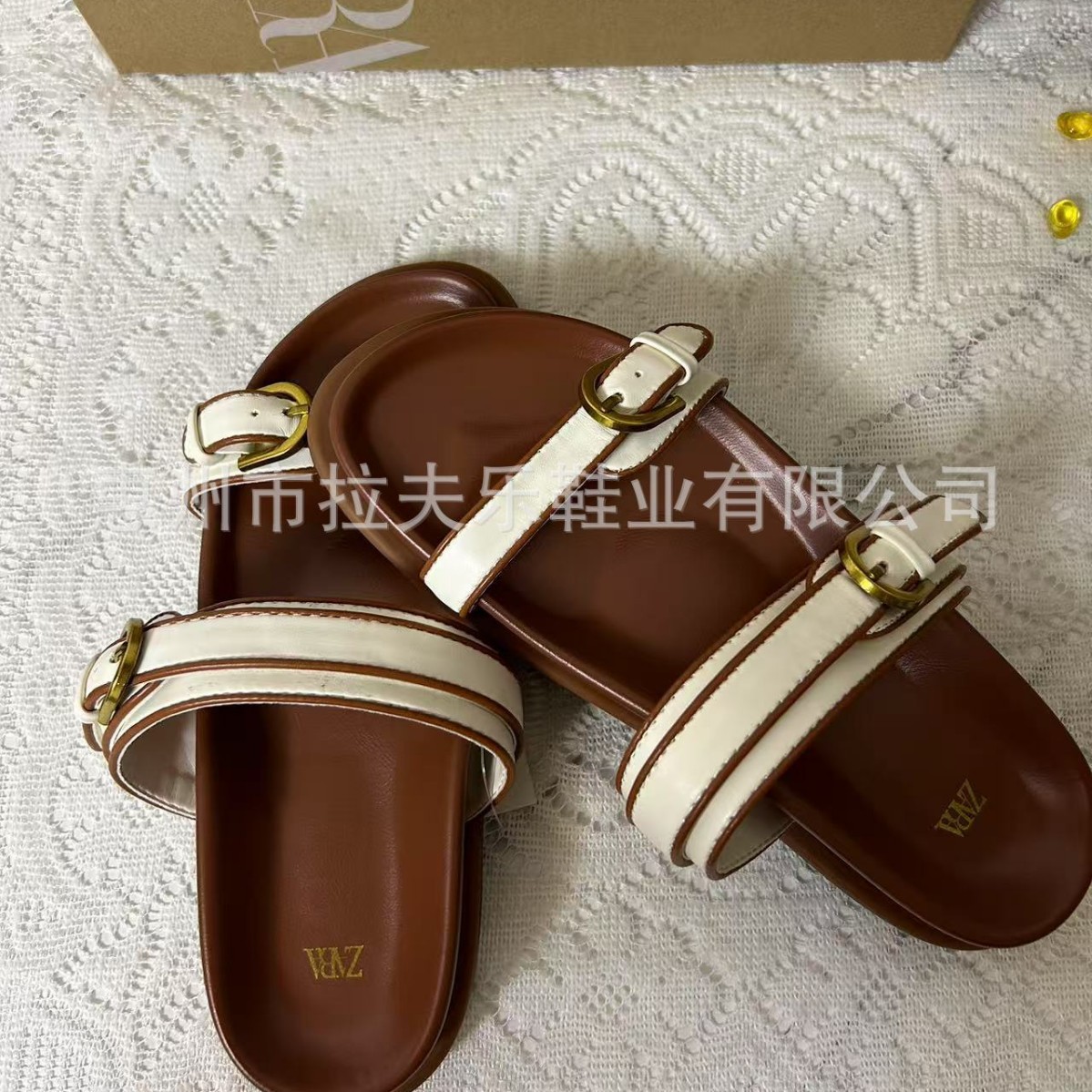 Za Spain 2025 Summer New Slippers Casual Internet Celebrity Sandals Rice Dumpling Color Leather Buckle Flats Sandals for Women