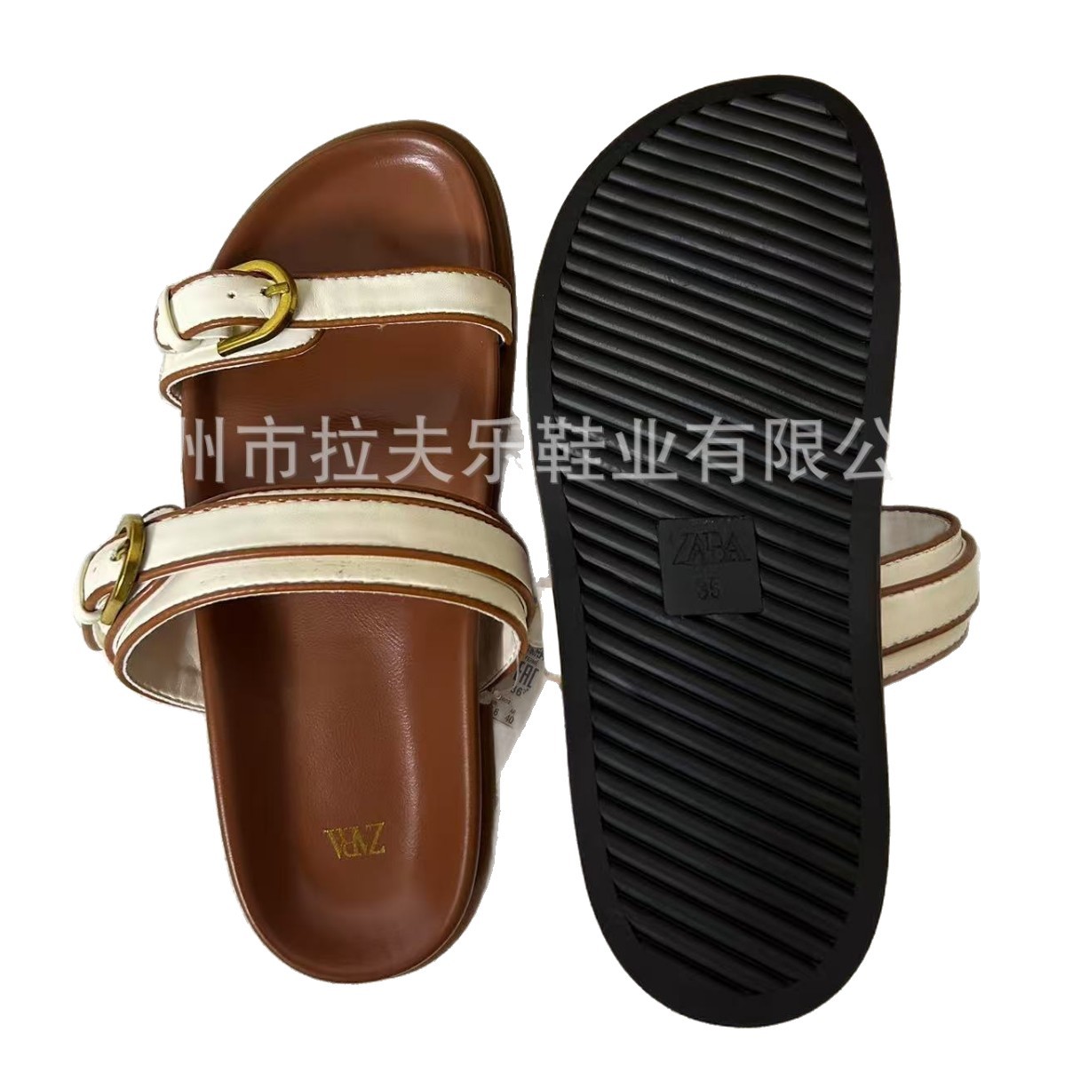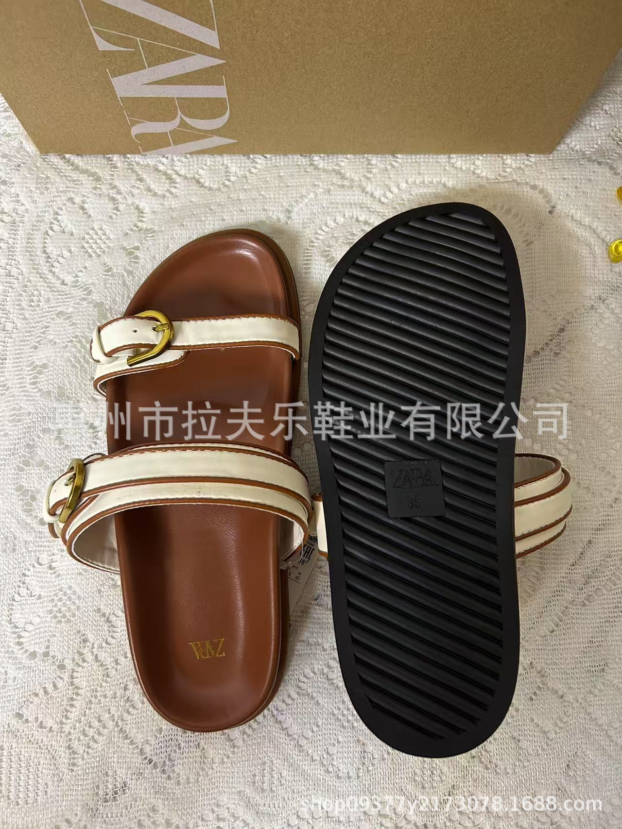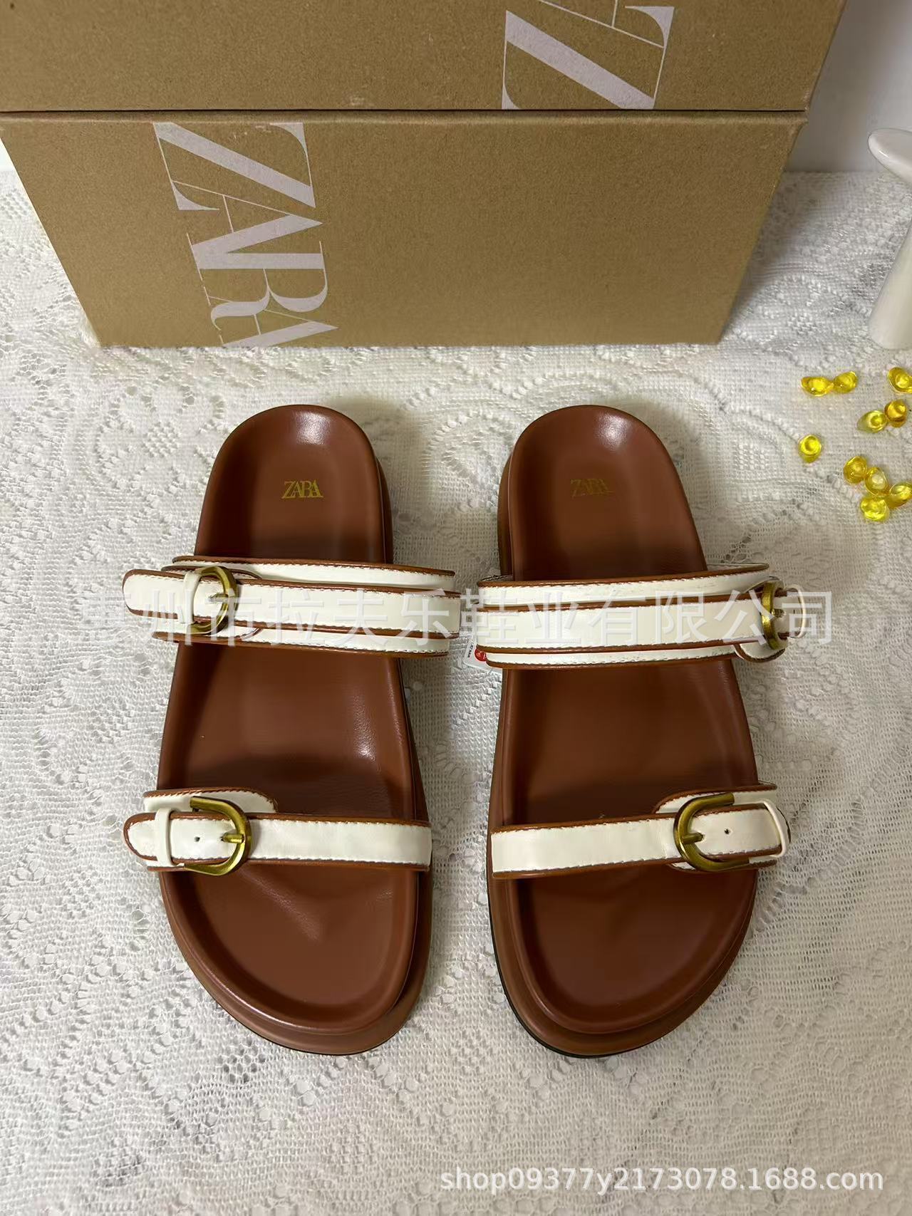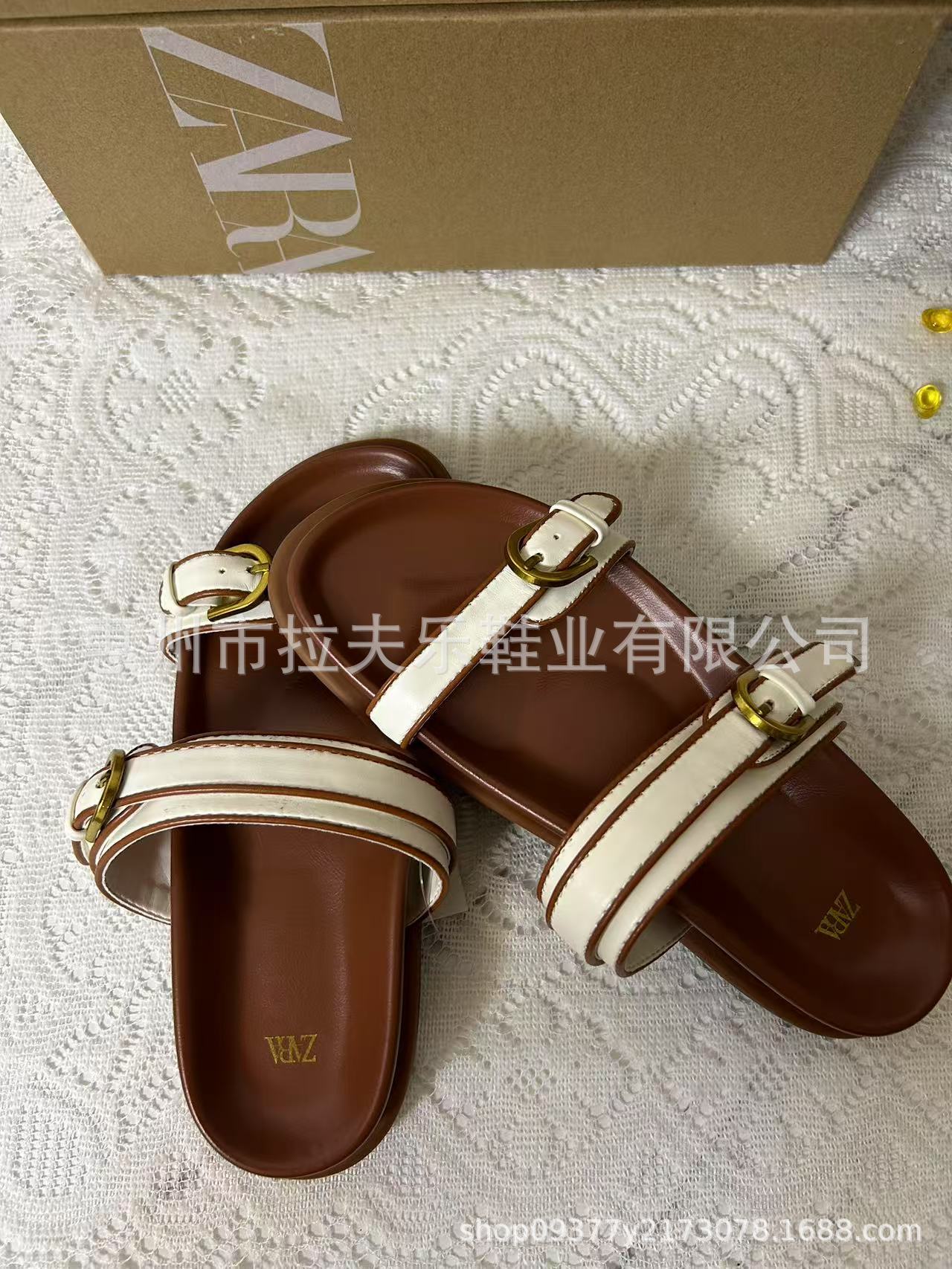 Za Spain 2025 Summer New Slippers Casual Internet Celebrity Sandals Rice Dumpling Color Leather Buckle Flats Sandals for Women
