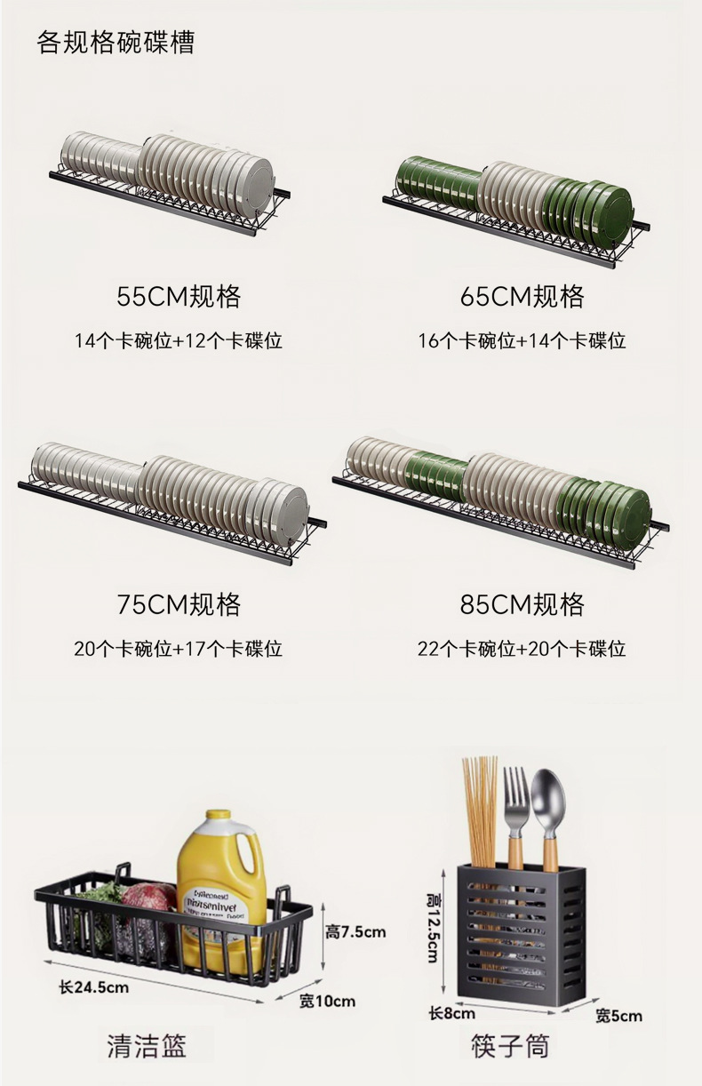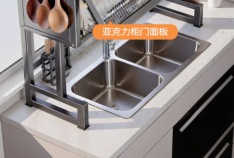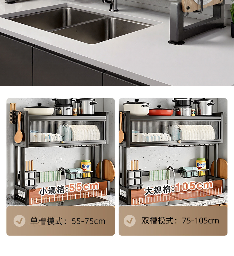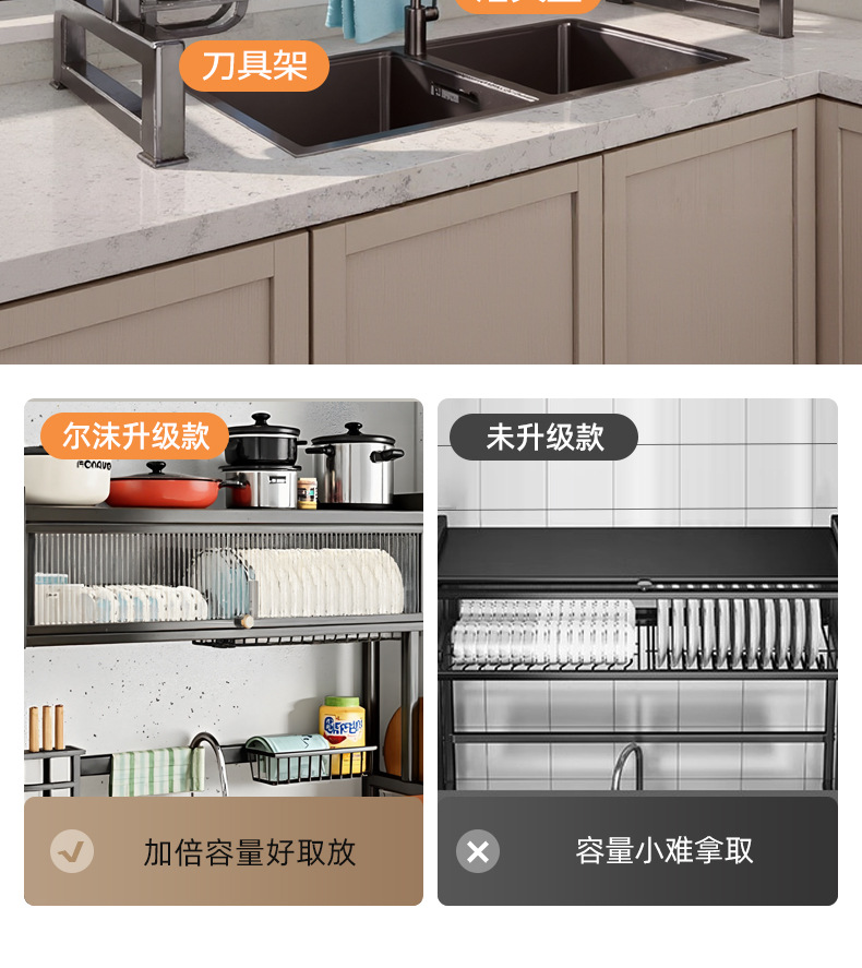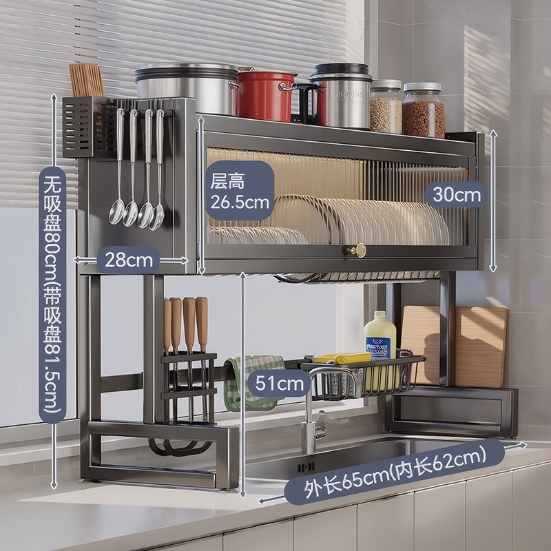 Upgraded and thickened [high style - black 65cm] luxury complete set | Main rack + knife holder + sanitary ware rack + chopping board holder + chopstick barrel (free 6 jun)