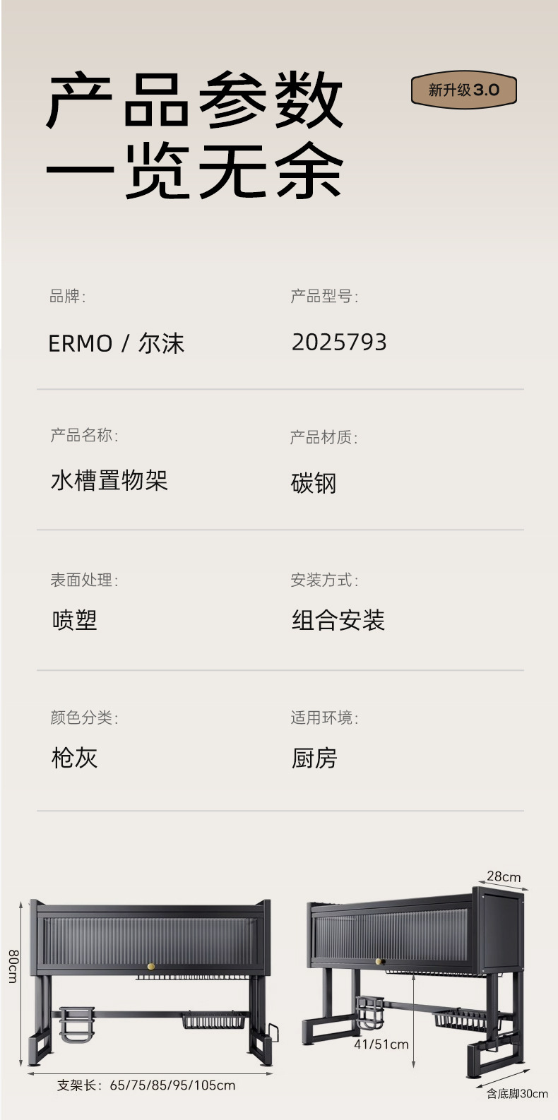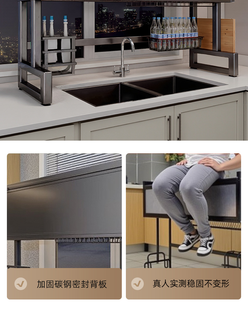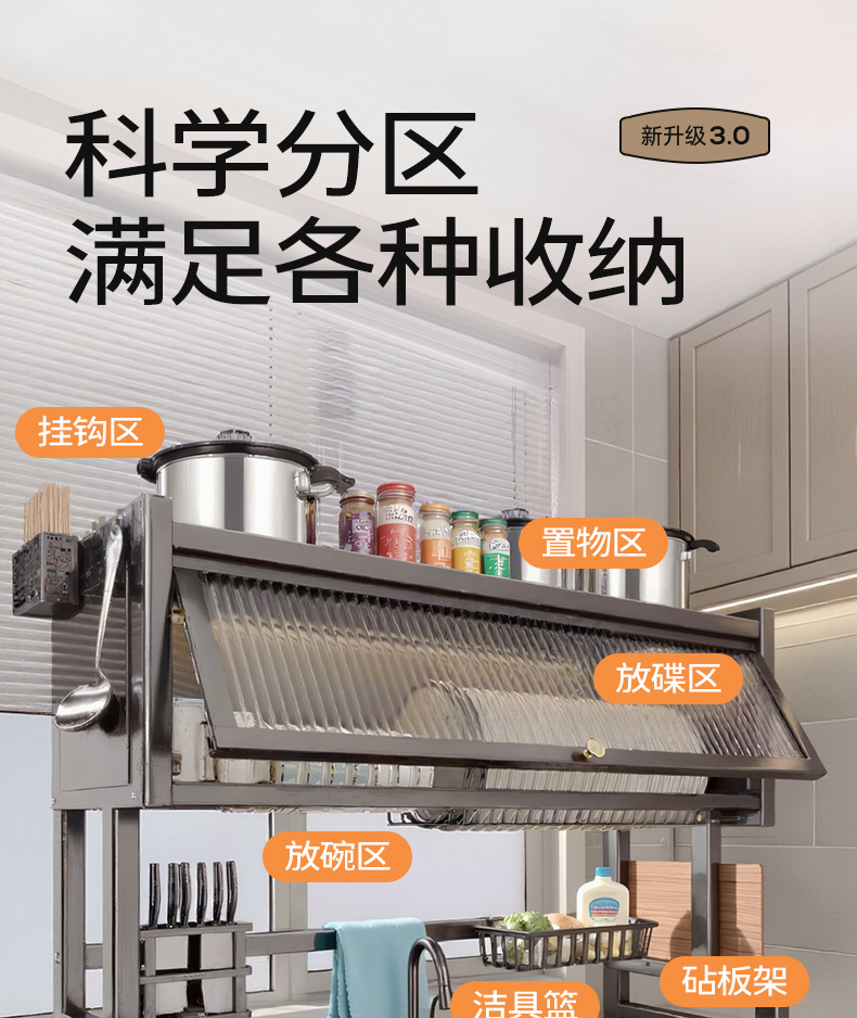 Upgraded and thickened [high style - black 65cm] luxury complete set | Main rack + knife holder + sanitary ware rack + chopping board holder + chopstick barrel (free 6 jun)