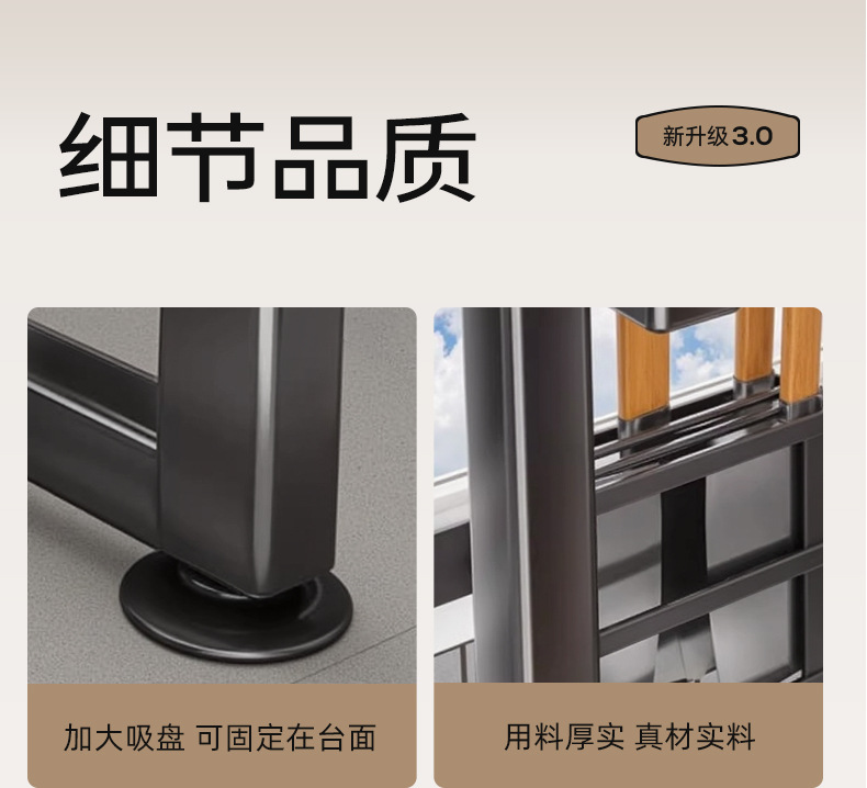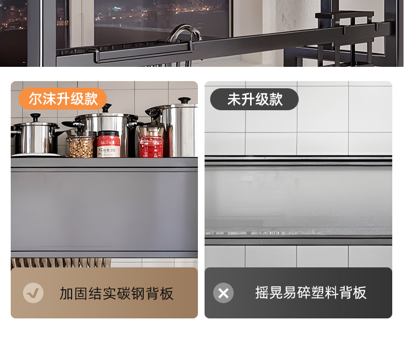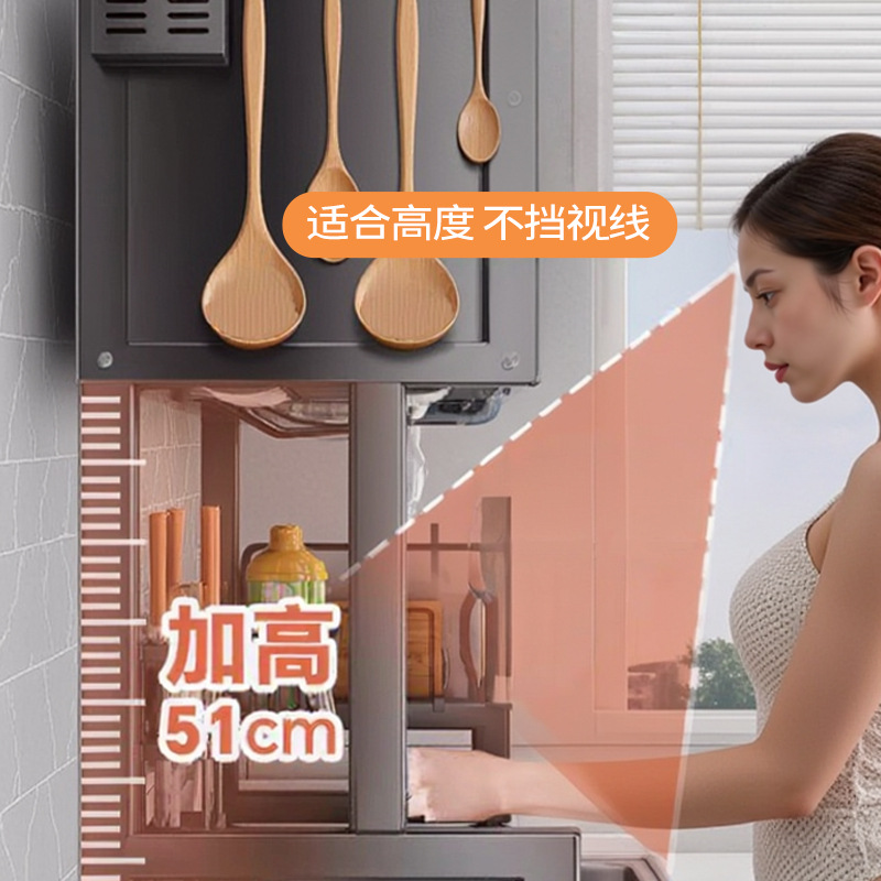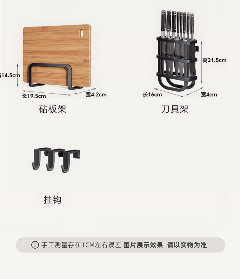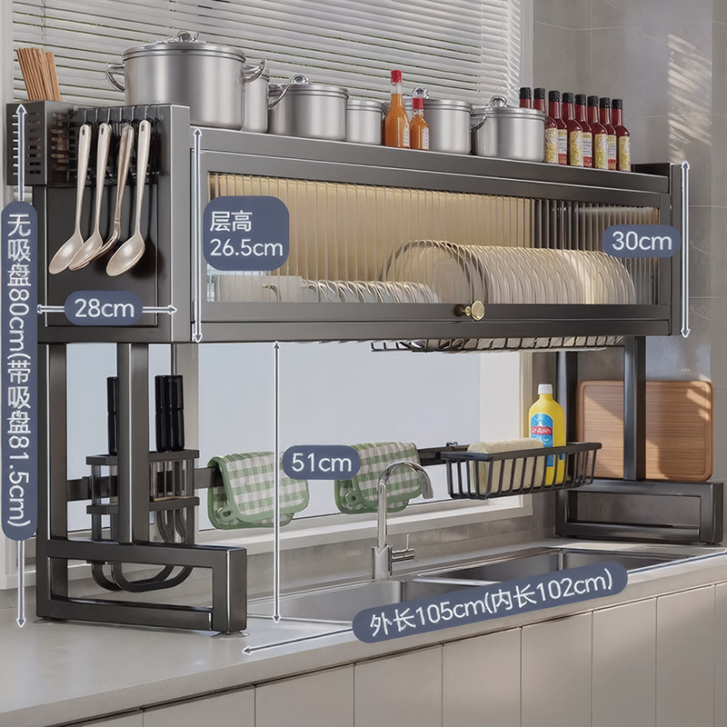 Upgraded and added tail [high style - black 105cm] luxury complete set | Main rack + knife holder + clean rack + chopping board holder + chopstick barrel (free 6 hooks)