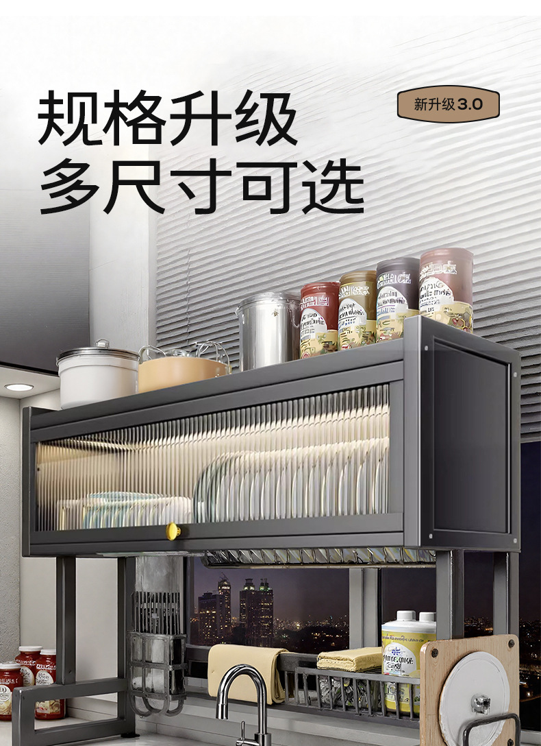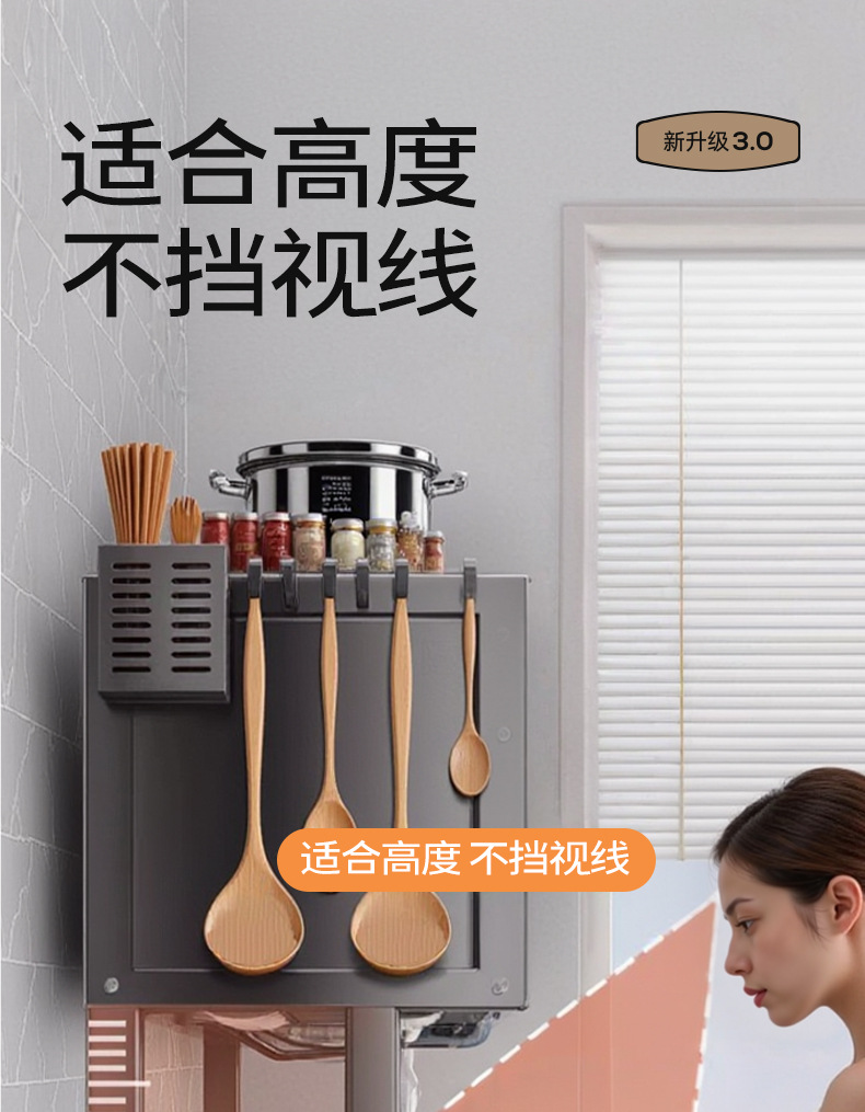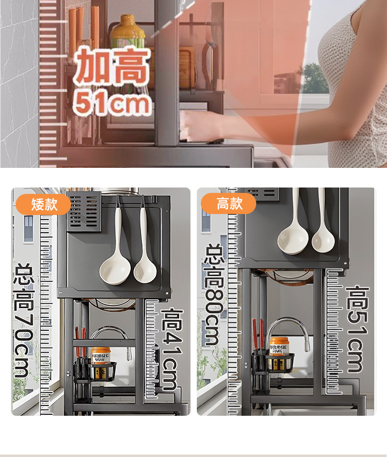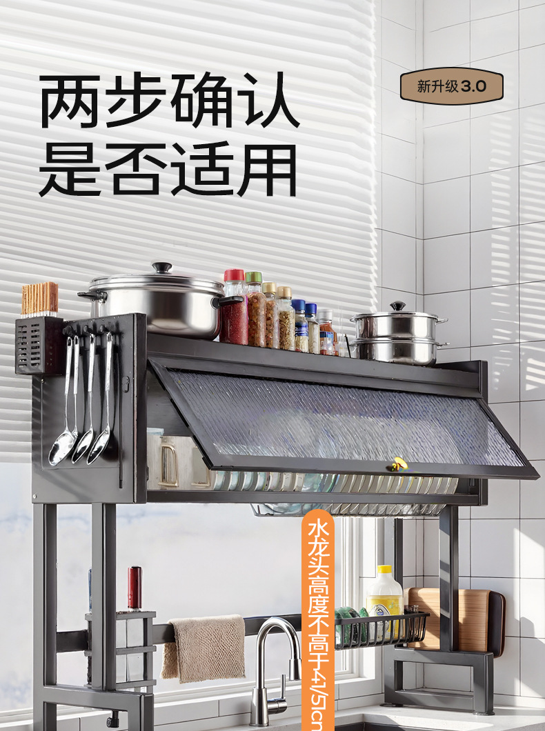 Upgraded and added tail [high style - black 105cm] luxury complete set | Main rack + knife holder + clean rack + chopping board holder + chopstick barrel (free 6 hooks)