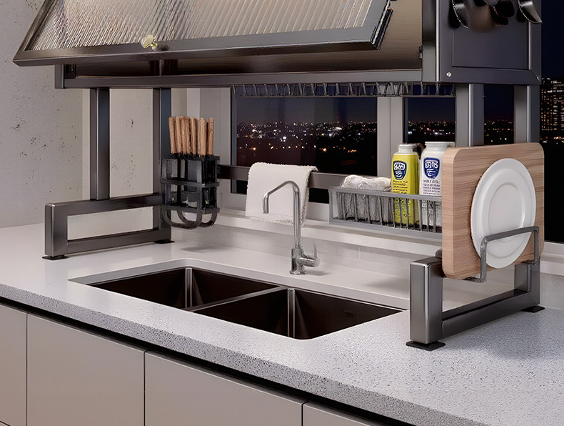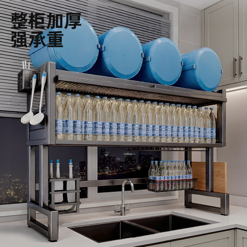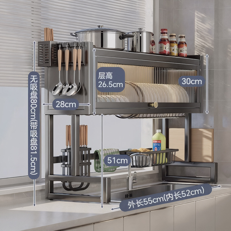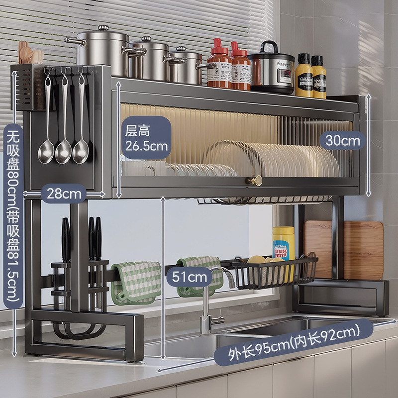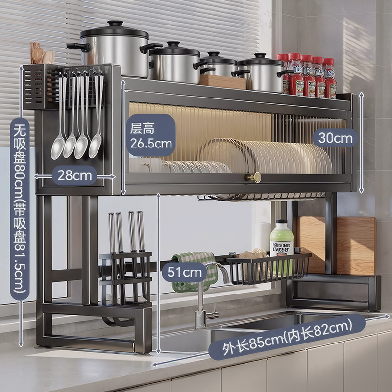 Upgraded and thickened [high style - black 85cm] luxury complete set | Main rack + knife holder + clean rack + chopping board holder + chopstick barrel (free 6 hooks)