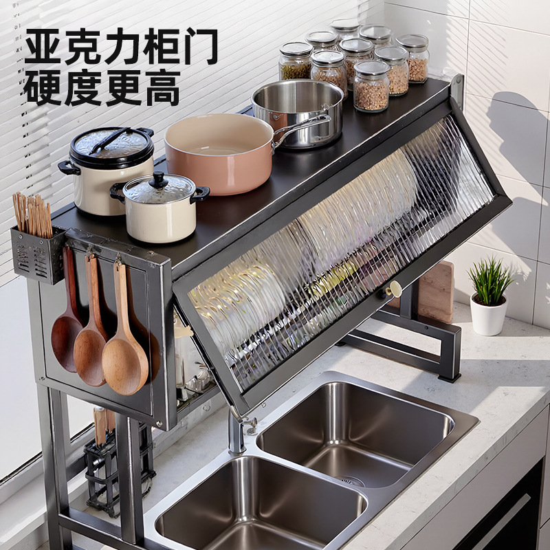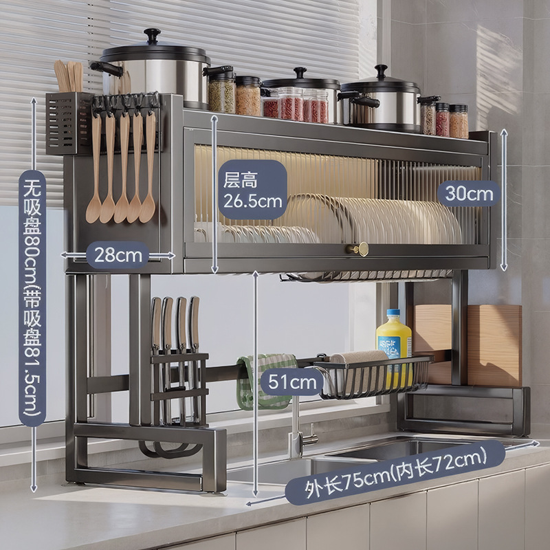 Upgraded and thickened [high style - black 75cm] luxury complete set | Main rack + knife holder + clean rack + chopping board holder + chopstick barrel (free 6 hooks)