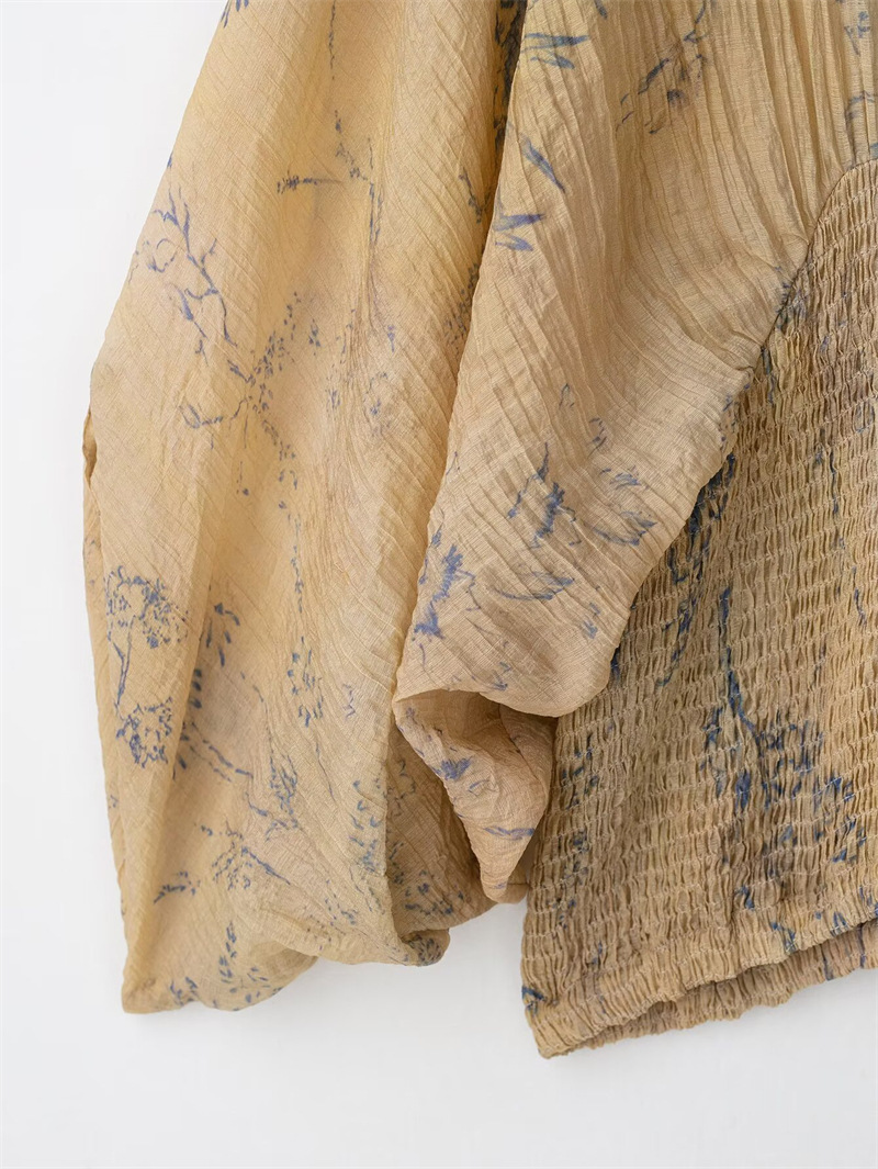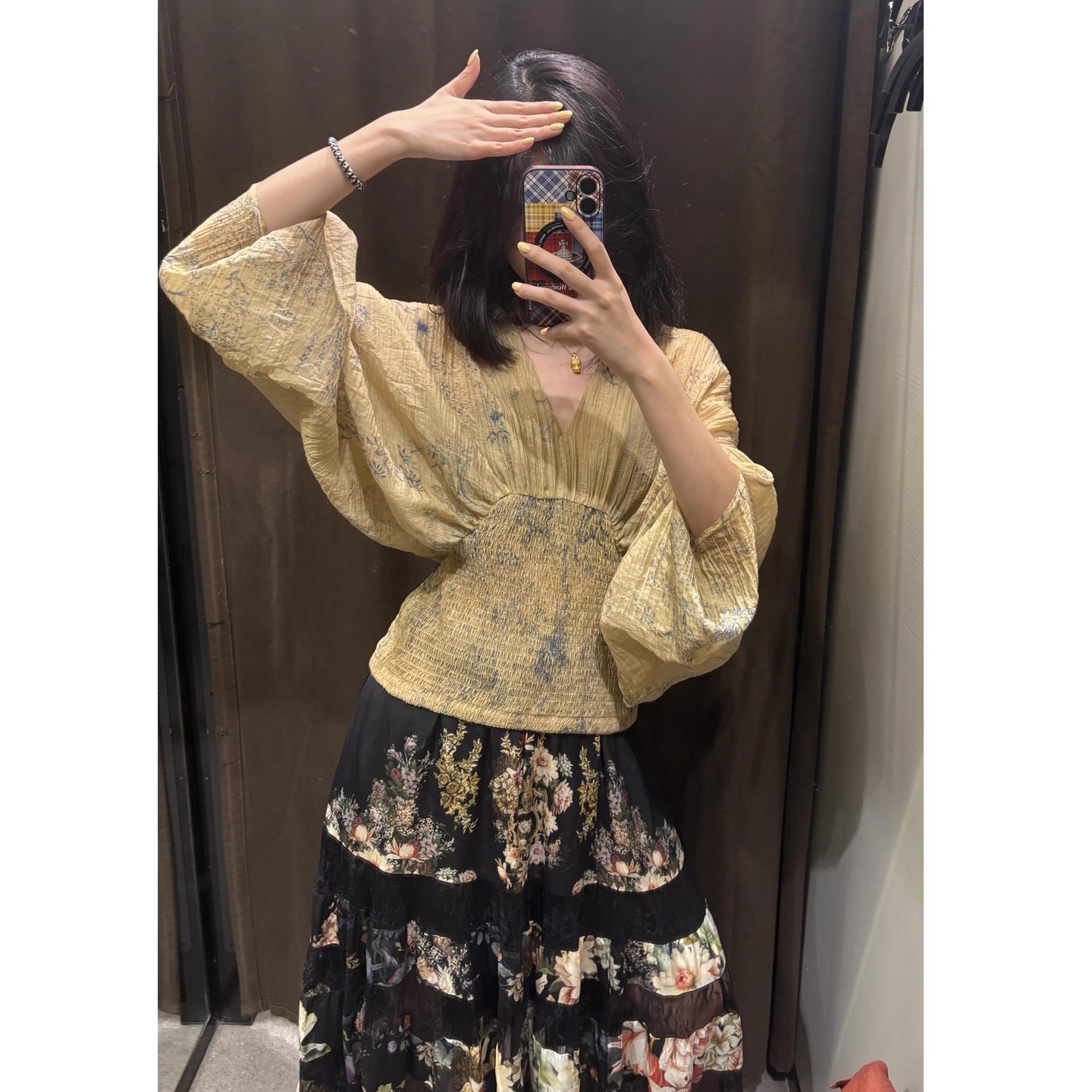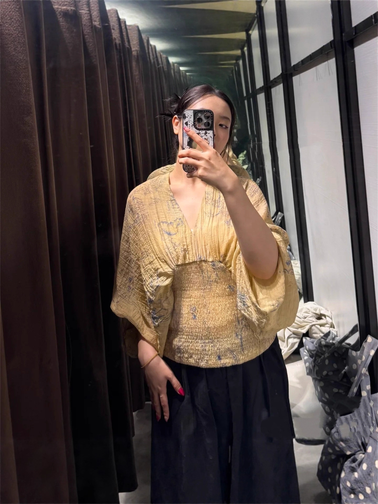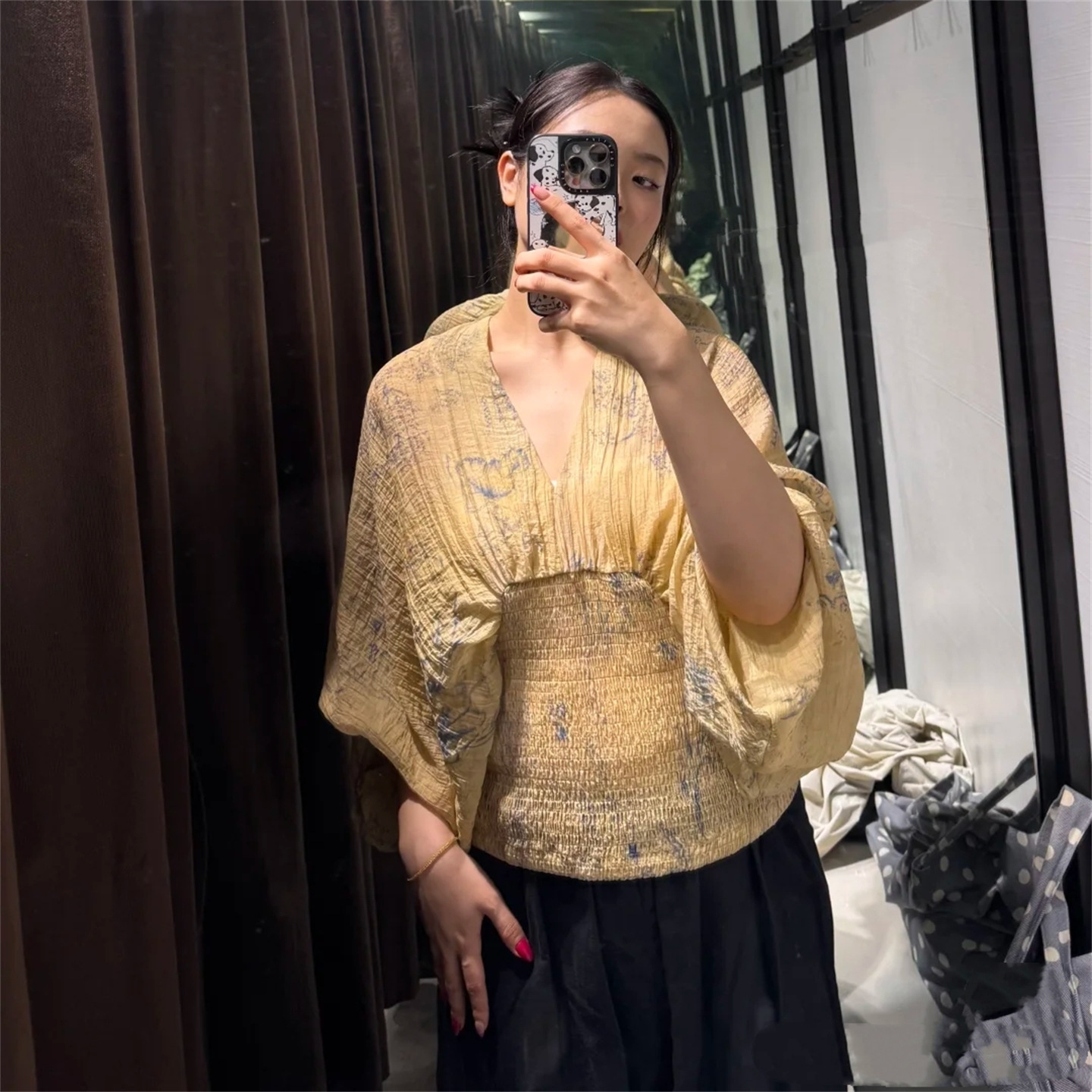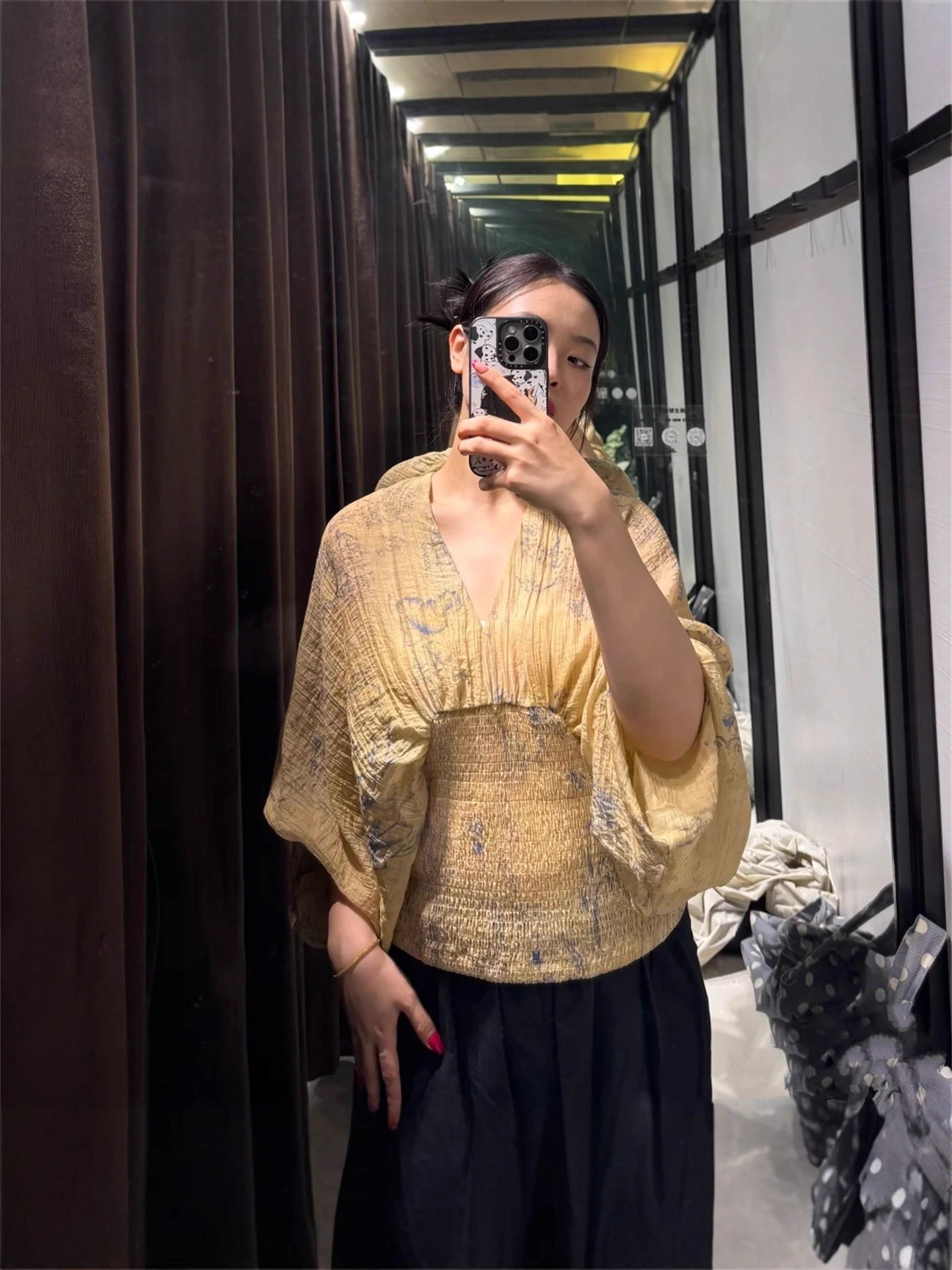 Foreign Trade Wholesale 2025 Autum Za Women's Style Elegant Loose Printed V Neck Shirt Top 8286005