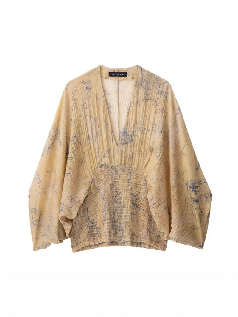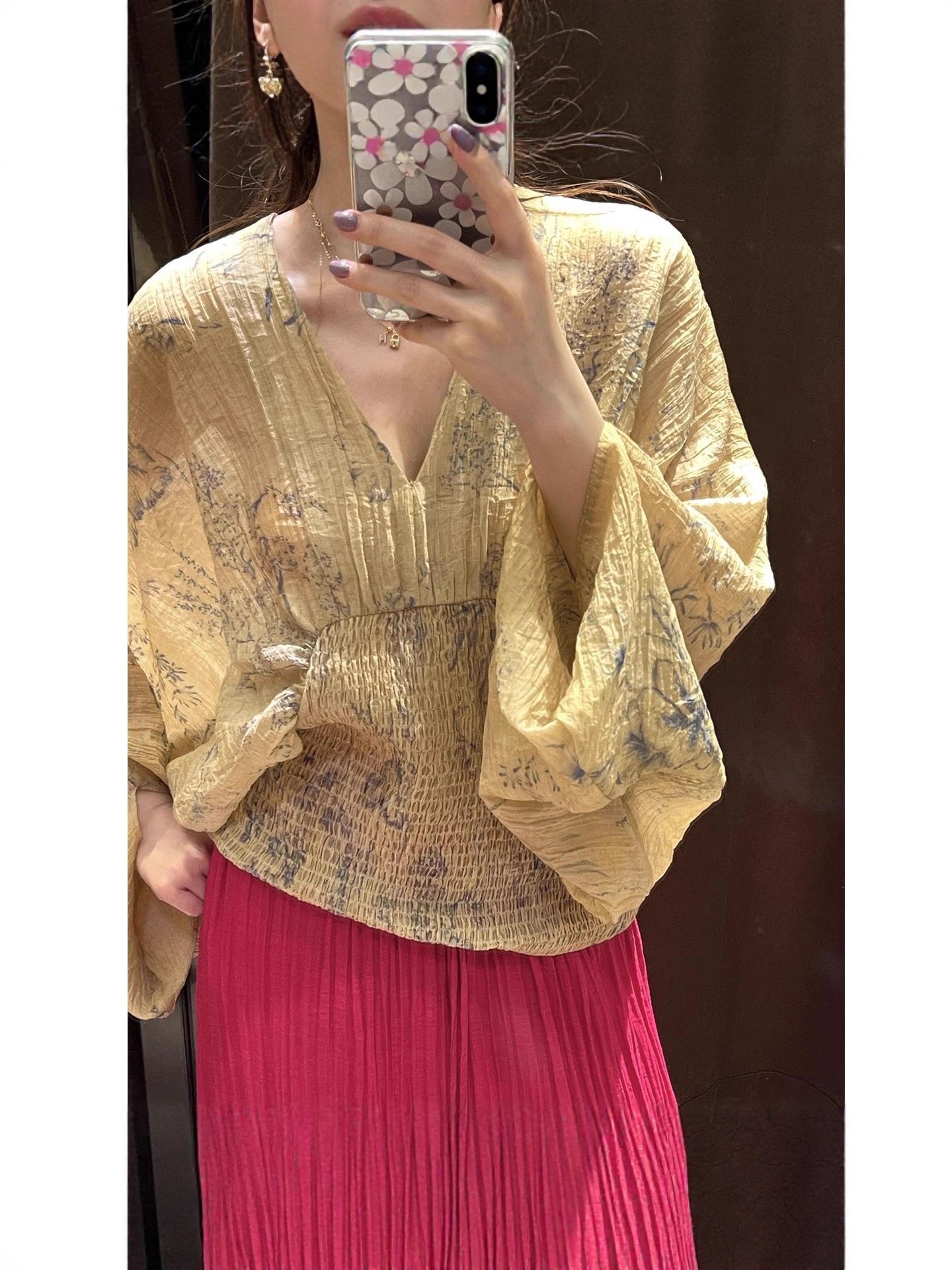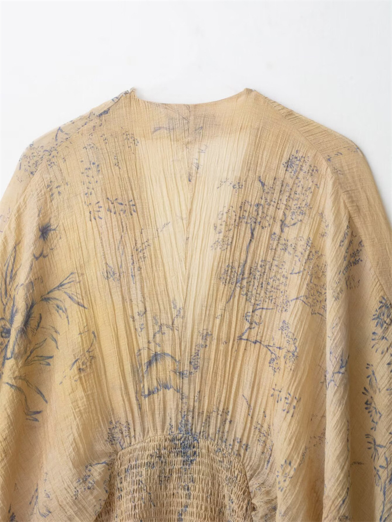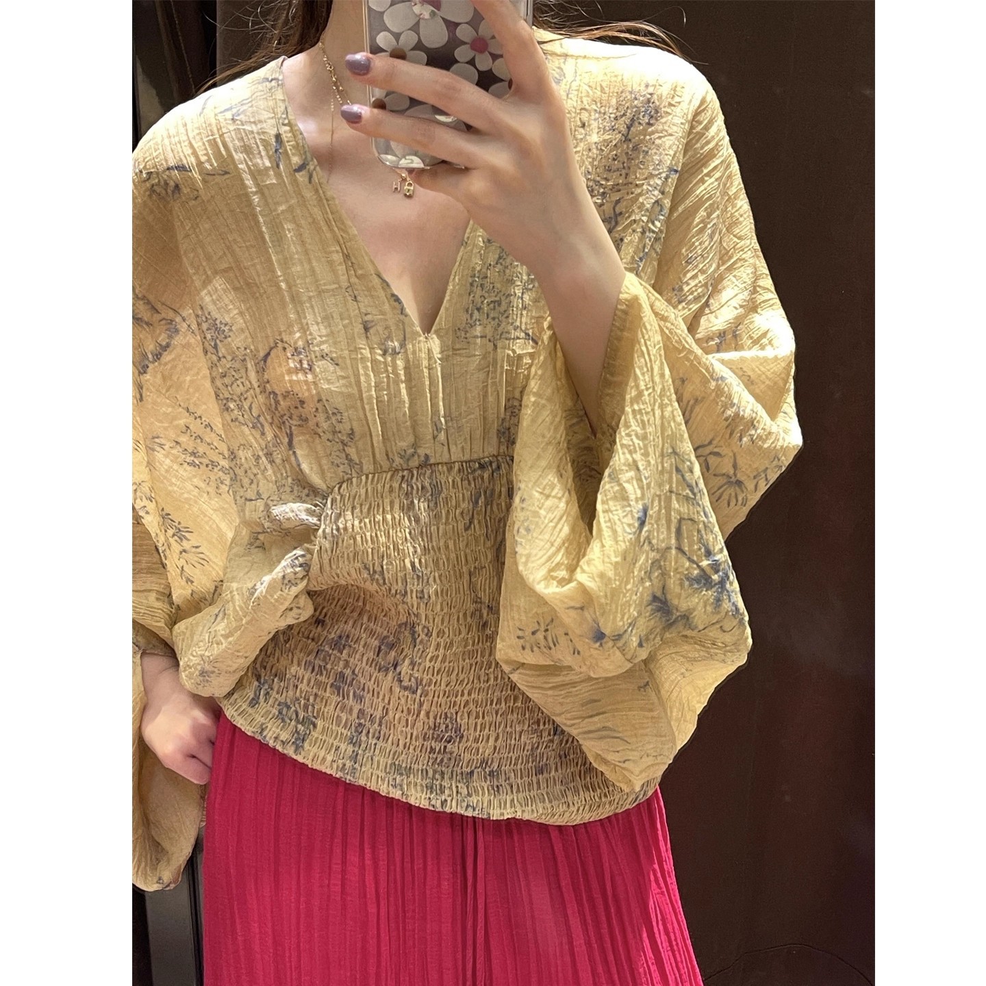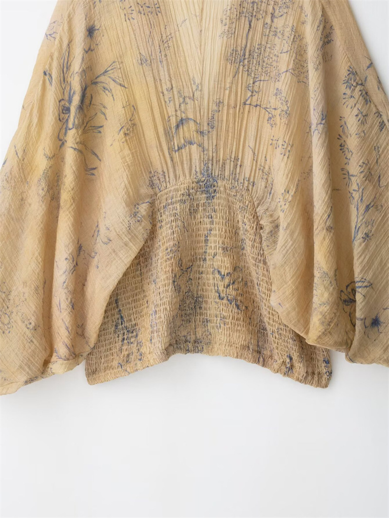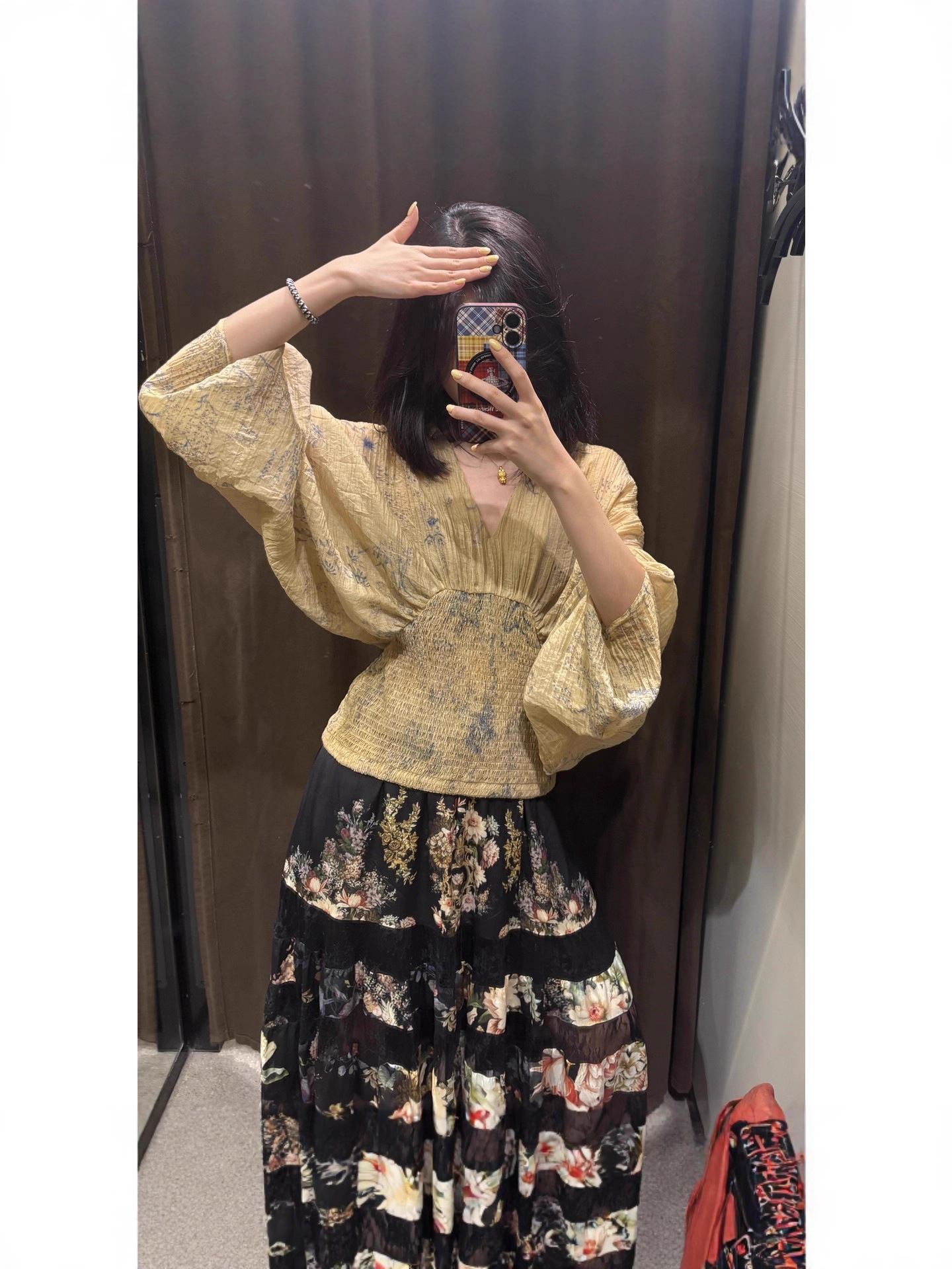 Foreign Trade Wholesale 2025 Autum Za Women's Style Elegant Loose Printed V Neck Shirt Top 8286005