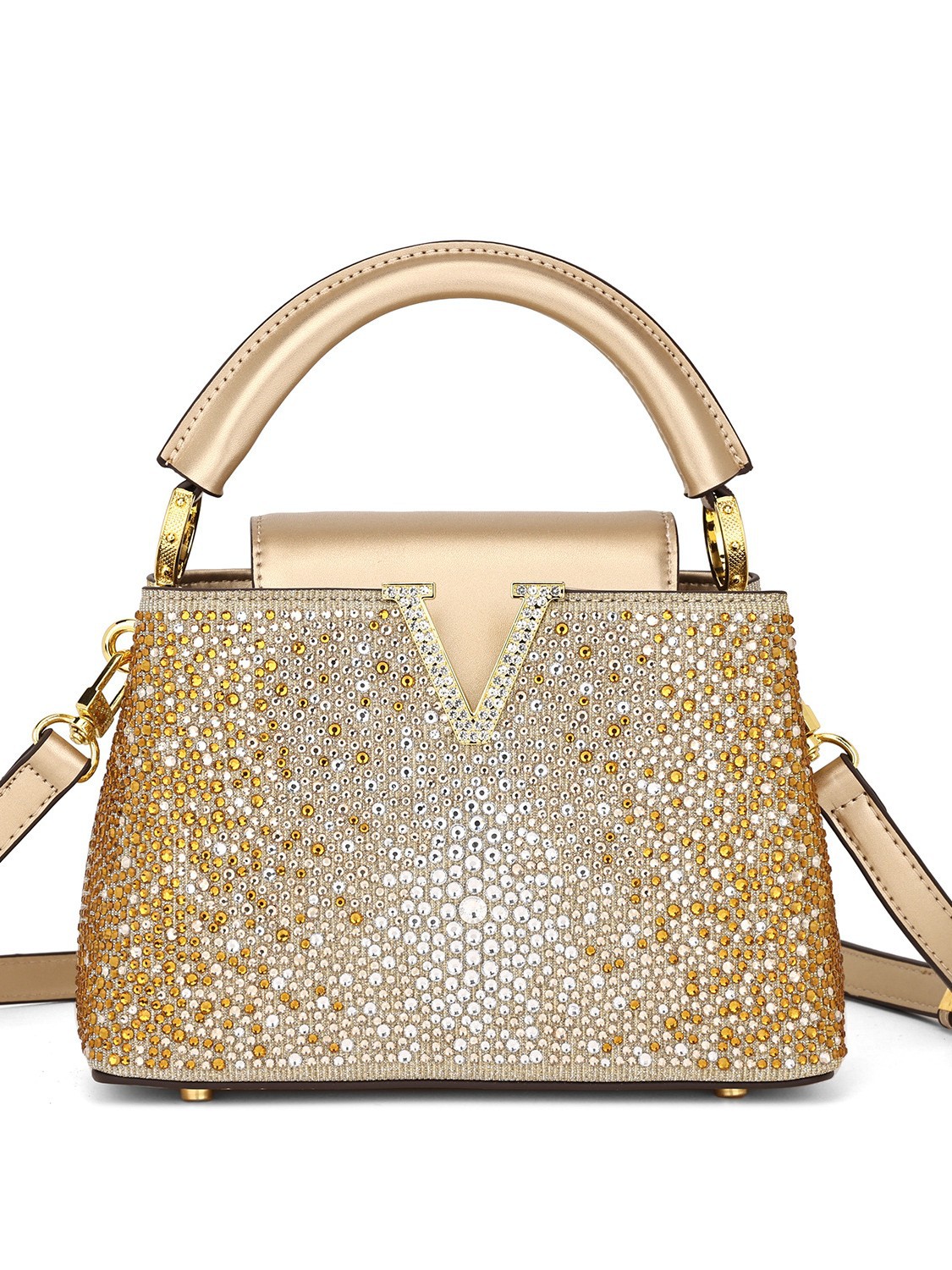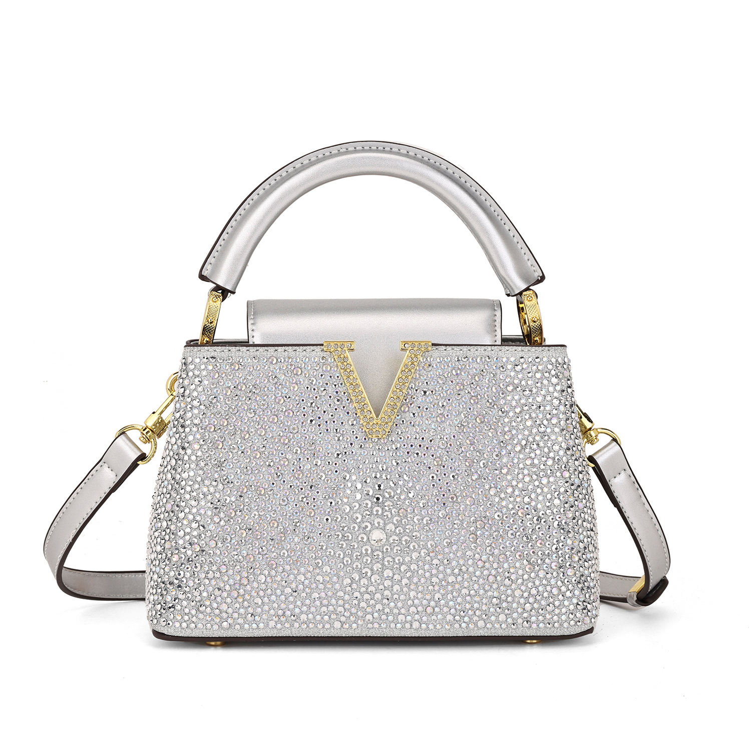 Diamond-Encrusted Women's Bags 2023 New European and American Fashion Versatile Hot Diamond Evening Bag Rose Red Single Shoulder Crossbody Handbag