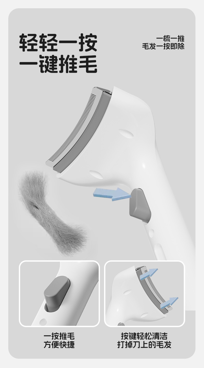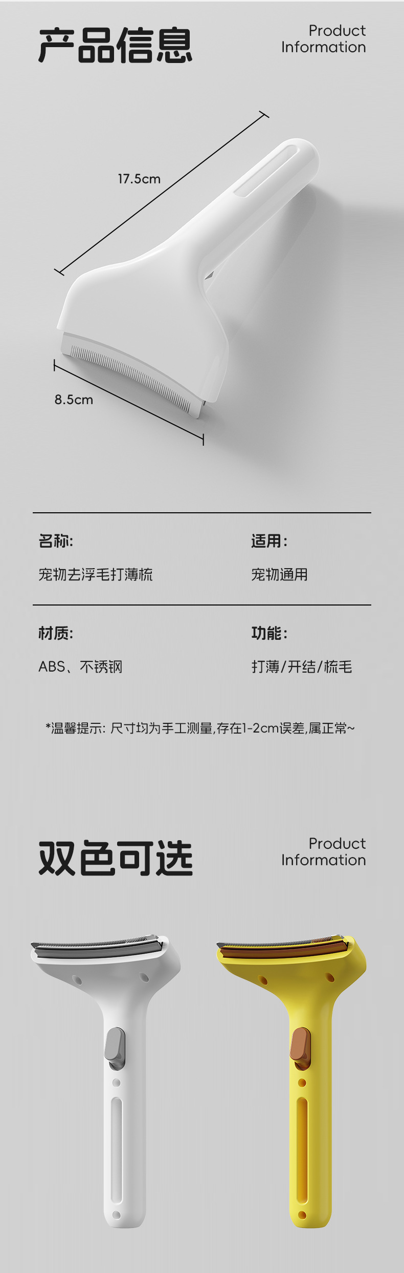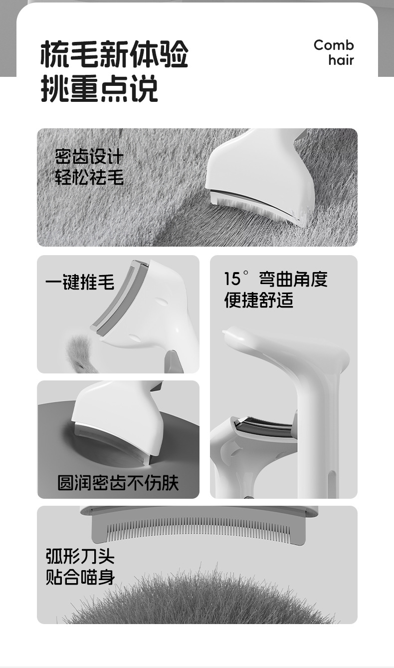 Pet Hair Thinning Tool for Removing Loose Hair, Curved Blade Cat Detangling Comb, One-Click Shedding Razor to Prevent Knots