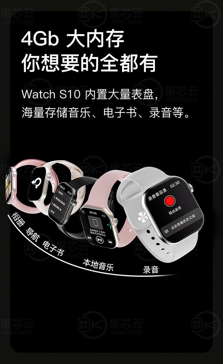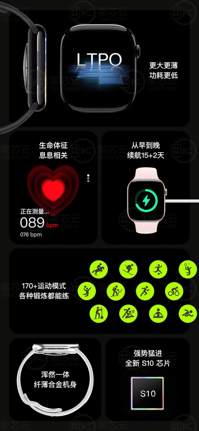 Watch series 10 midnight black appearance upgrade - real 4g memory - wechat expression reply - dual payment - watch stocks - himalayan - full functionality