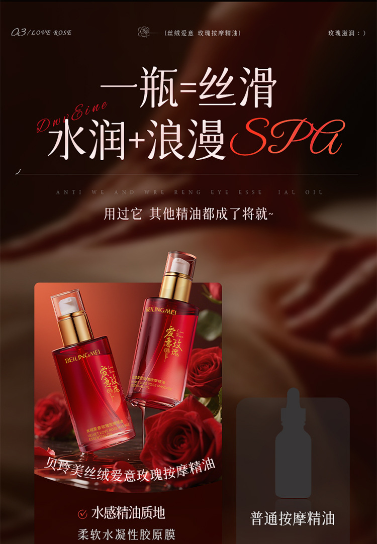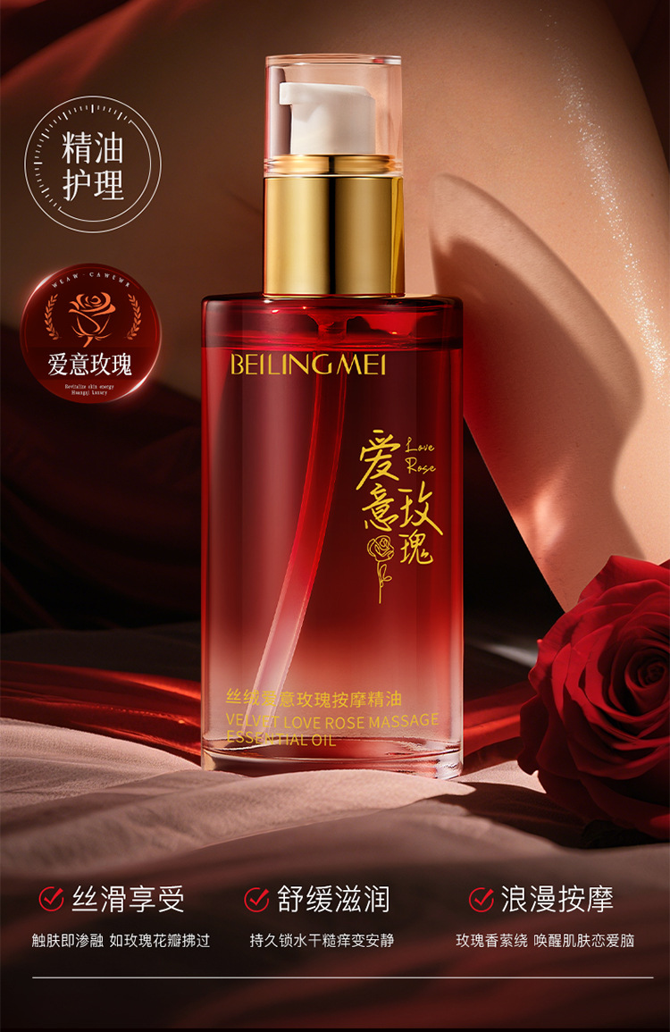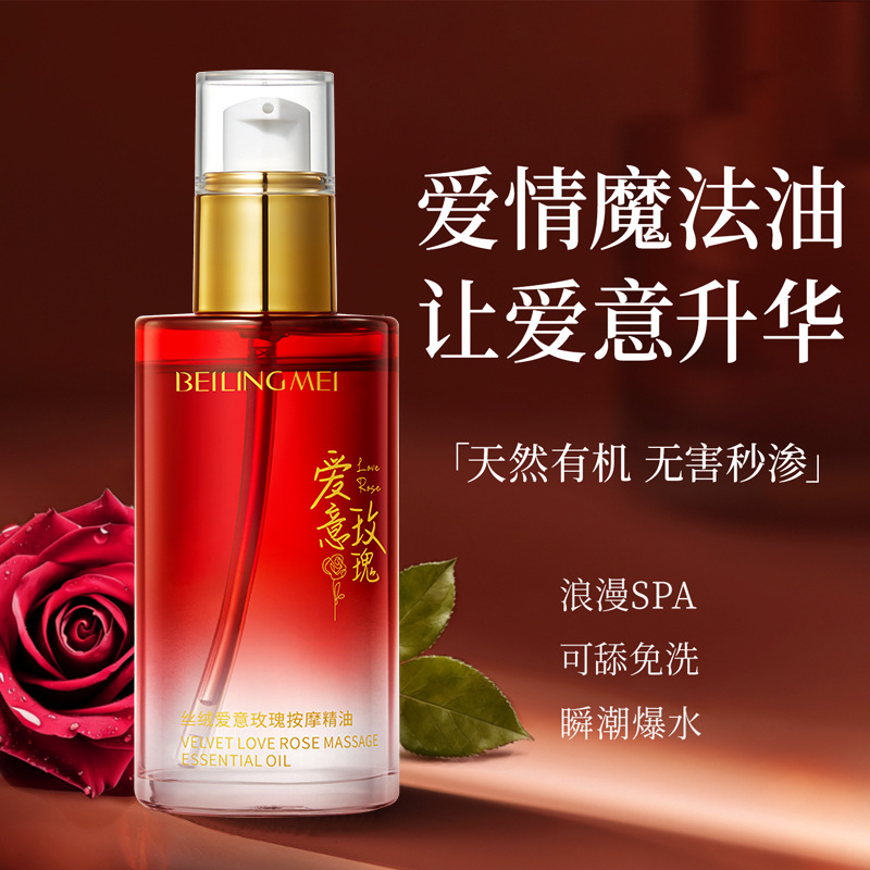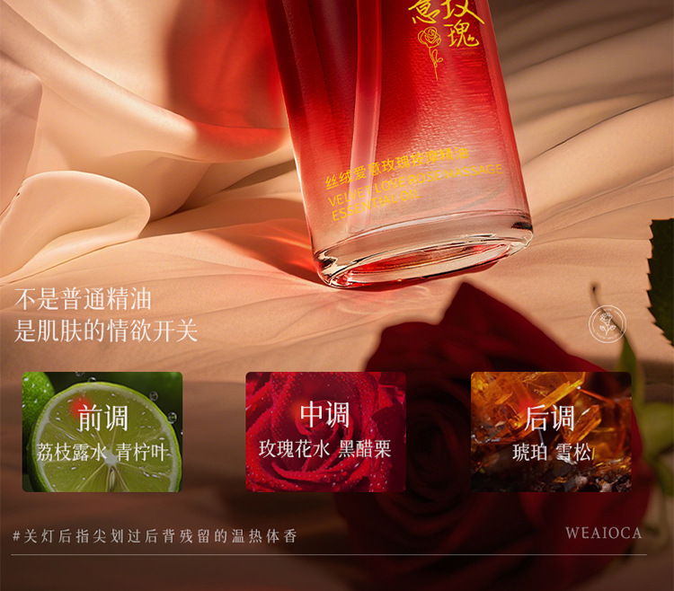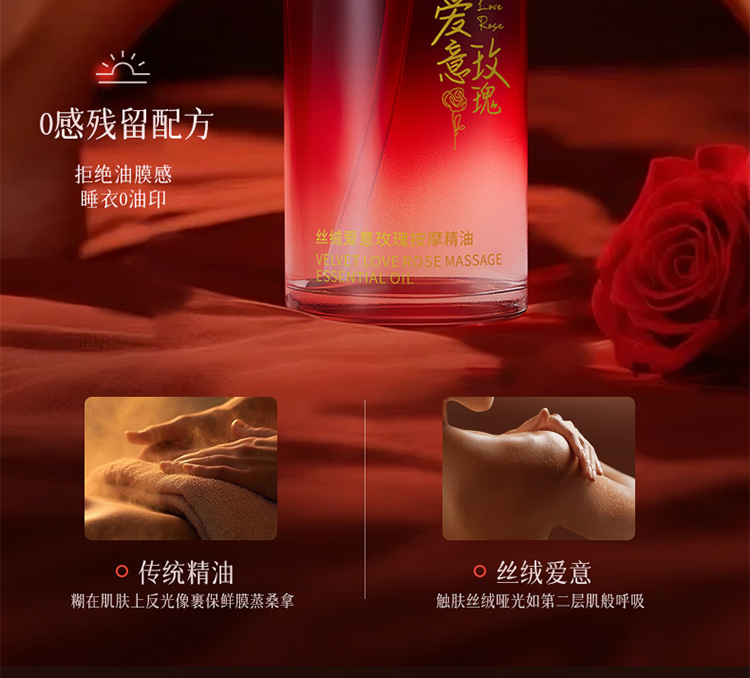 Velvet Love Rose Massage Oil for Back, Heating Private Parts, Full Body Moisturizing, Lubricating, Couples Spa, Plant-Based, No Rinse