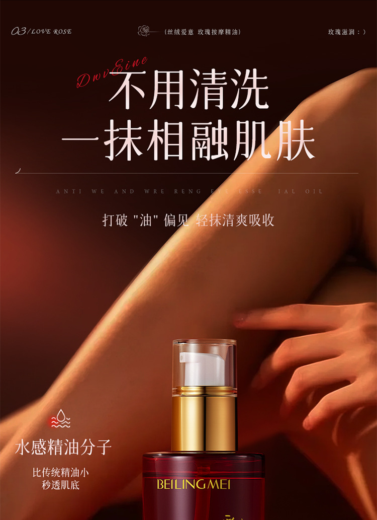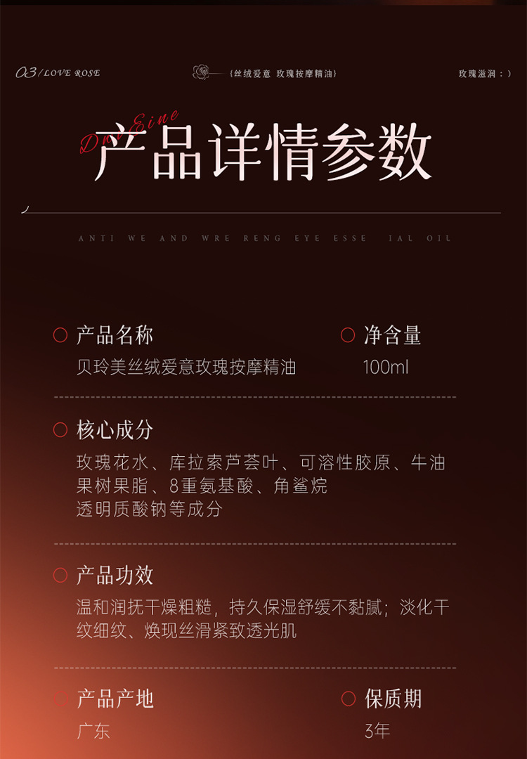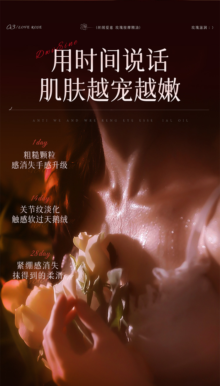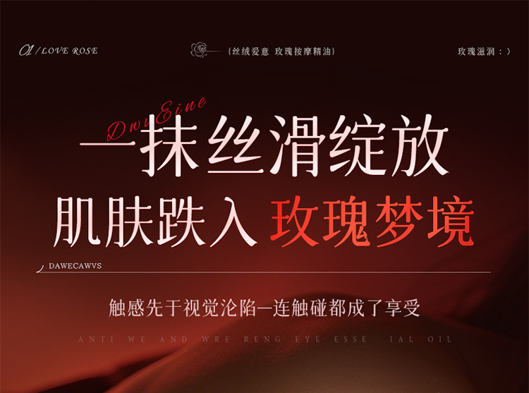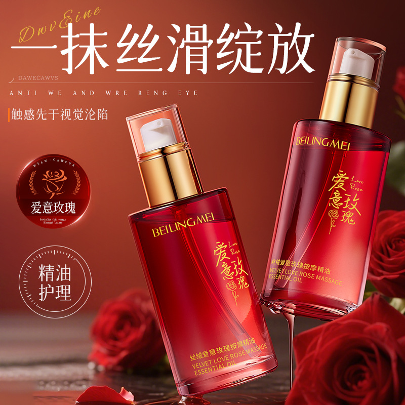 Velvet Love Rose Massage Oil for Back, Heating Private Parts, Full Body Moisturizing, Lubricating, Couples Spa, Plant-Based, No Rinse