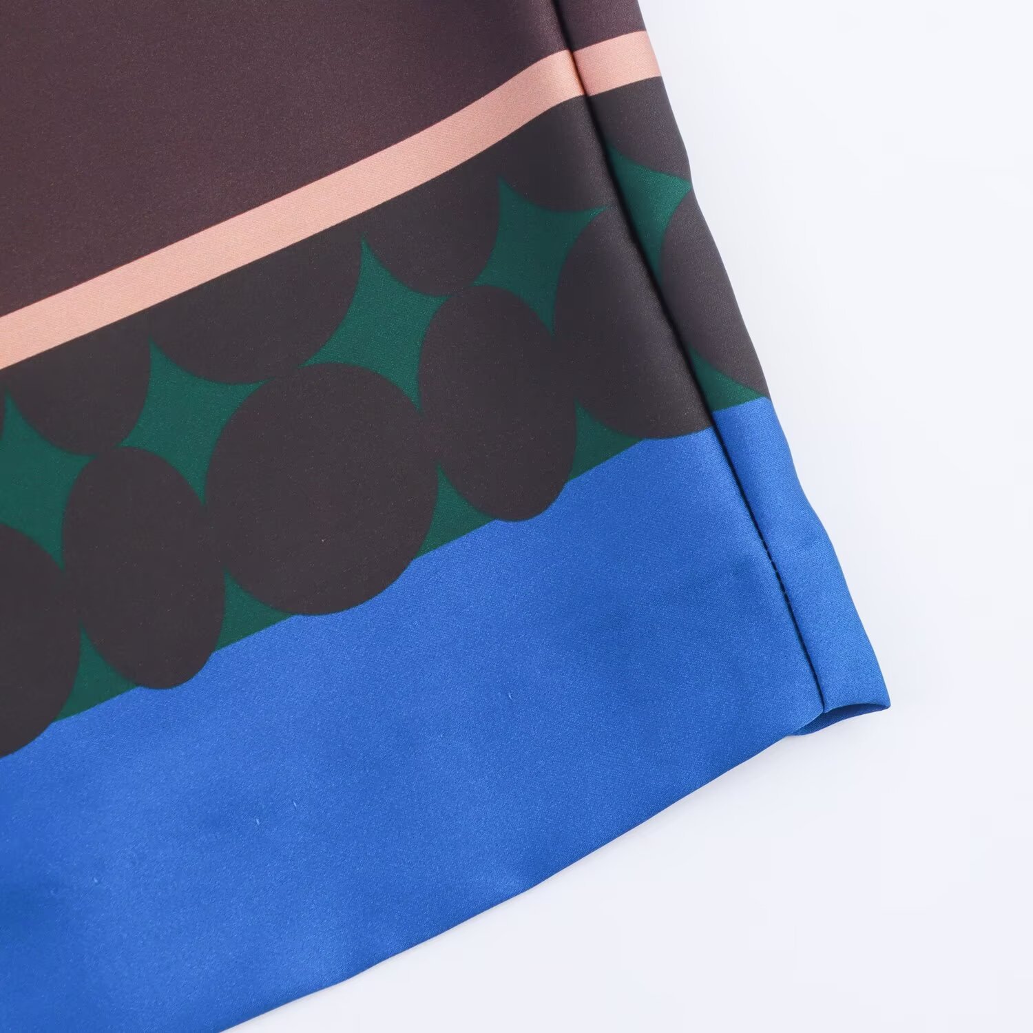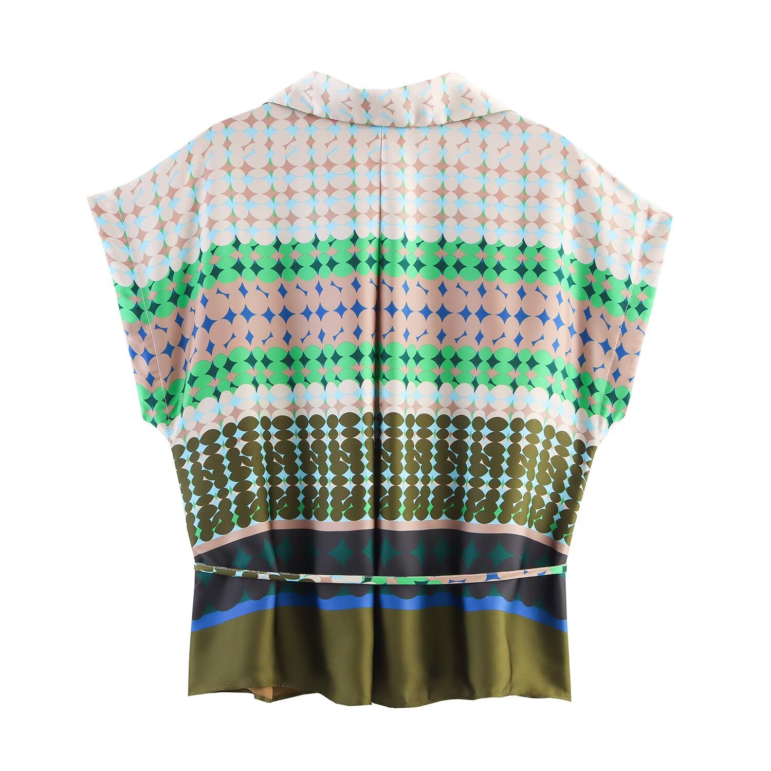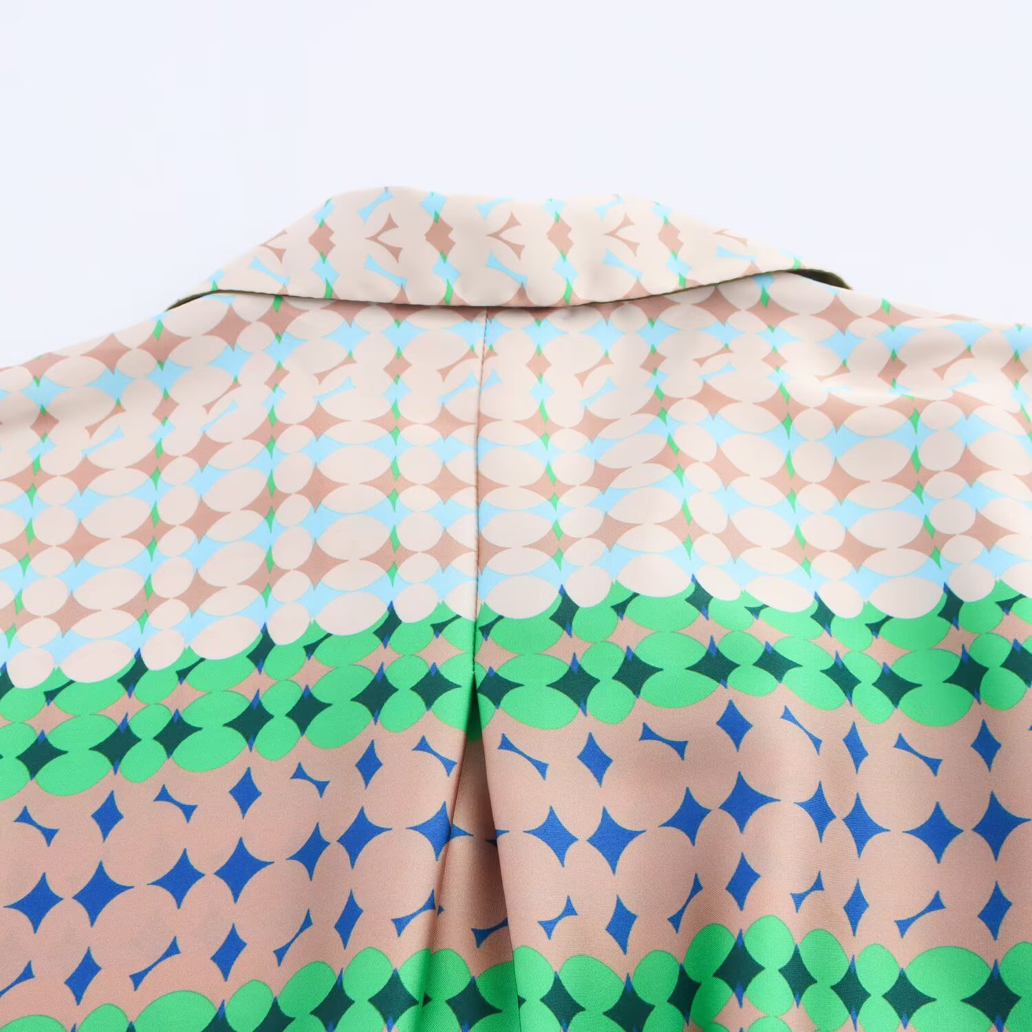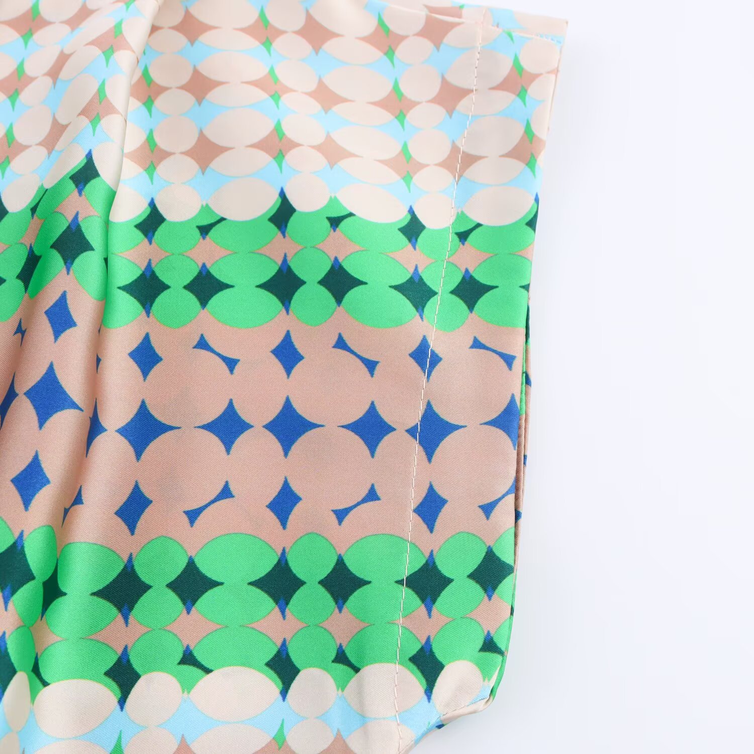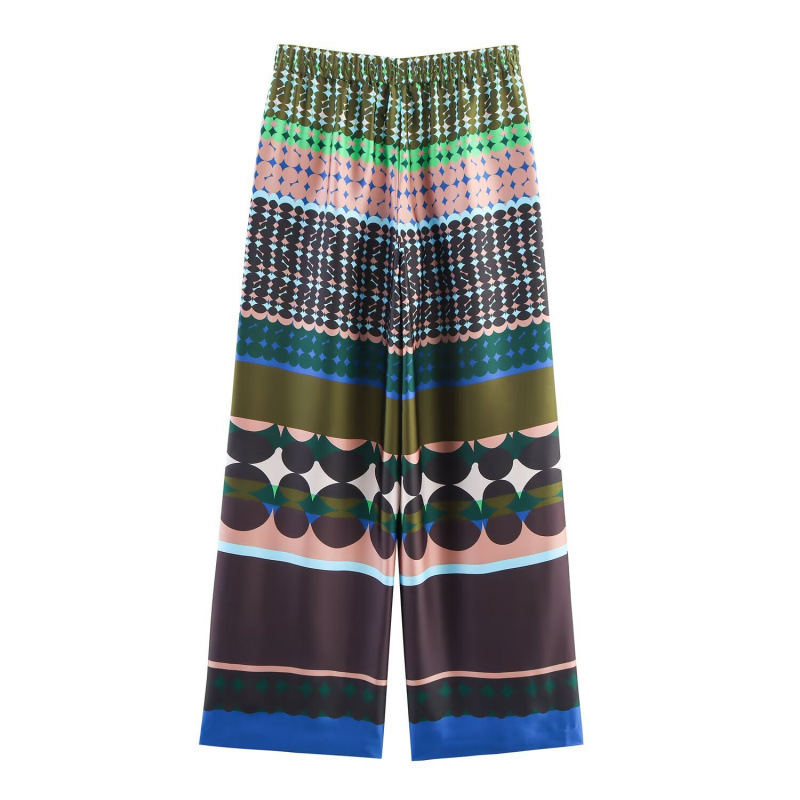 Za European and American Style Women's Four-Section Textured Satin Positioning Printed Short-Sleeved Shirt Casual Straight Draped Pants Suit