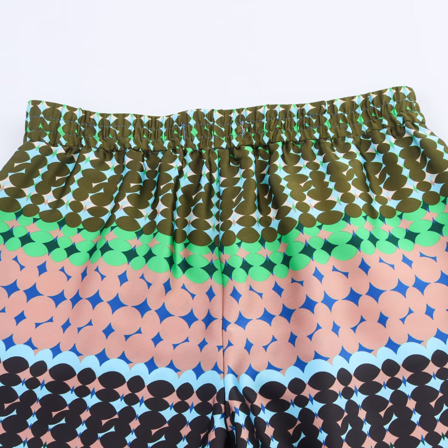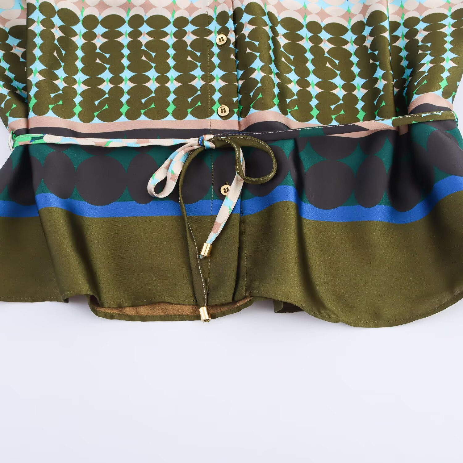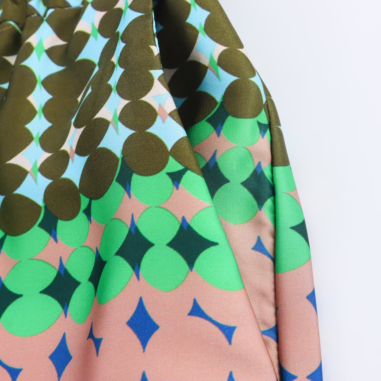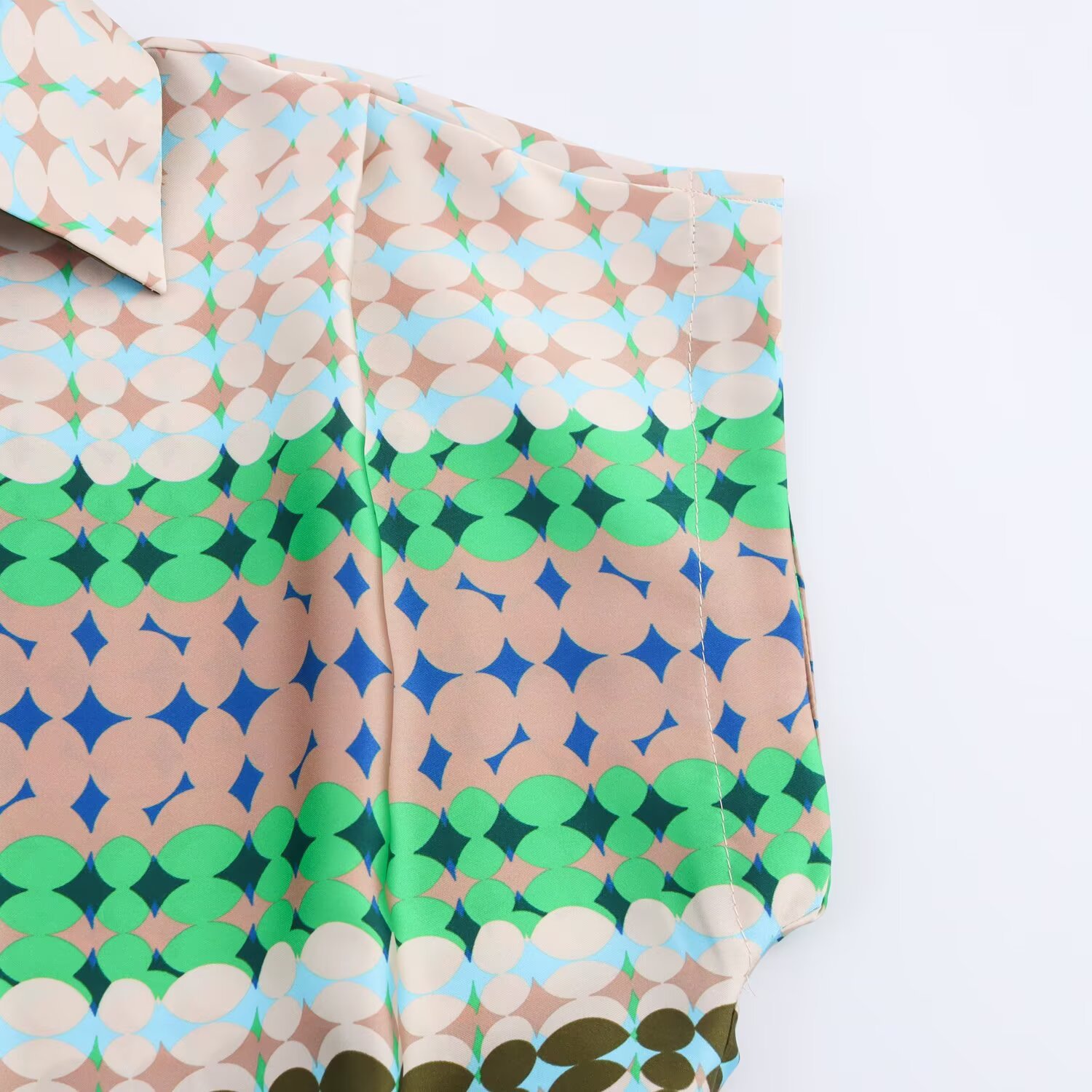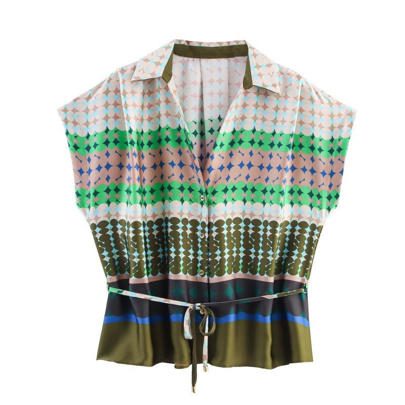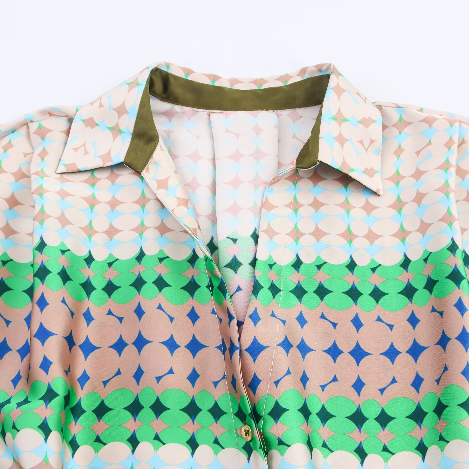 Za European and American Style Women's Four-Section Textured Satin Positioning Printed Short-Sleeved Shirt Casual Straight Draped Pants Suit