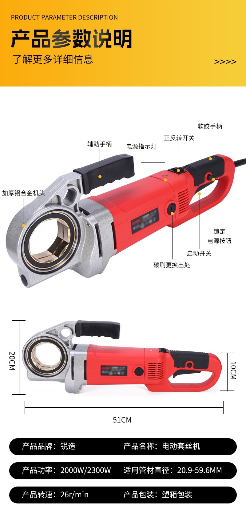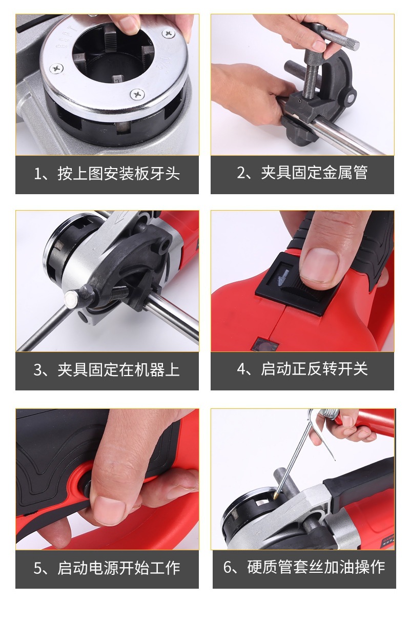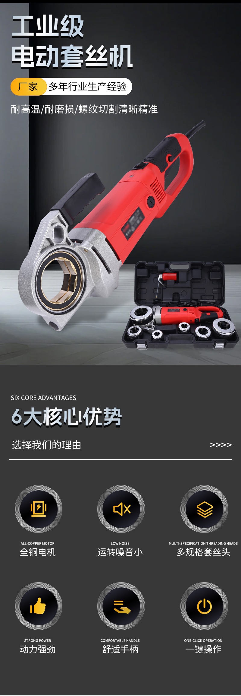 Type 50 electric threading machine + 6 threading heads + cutter + clamp + auxiliary device
