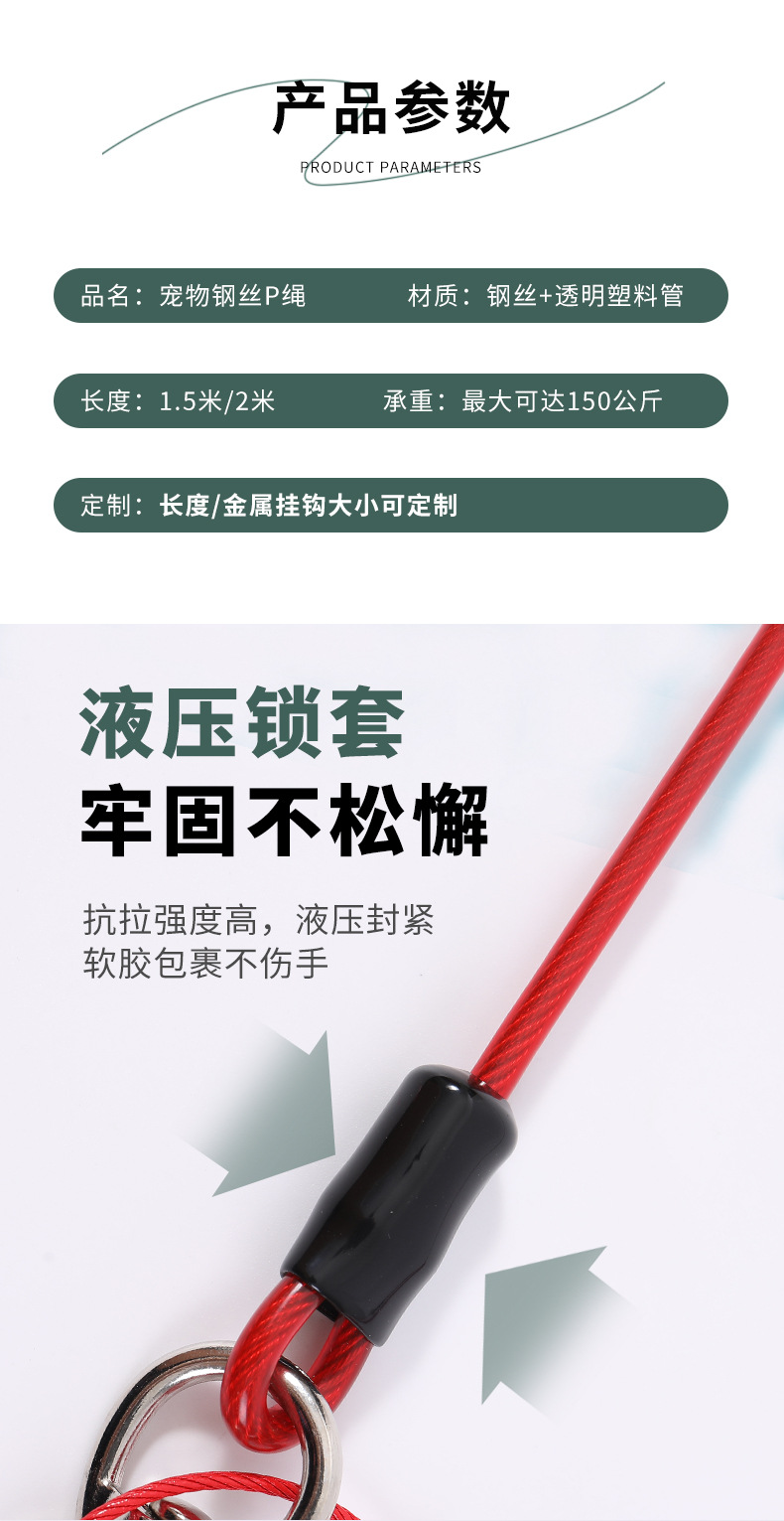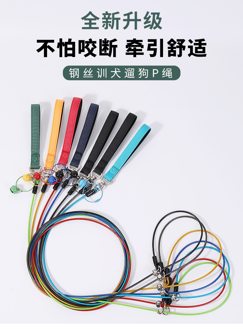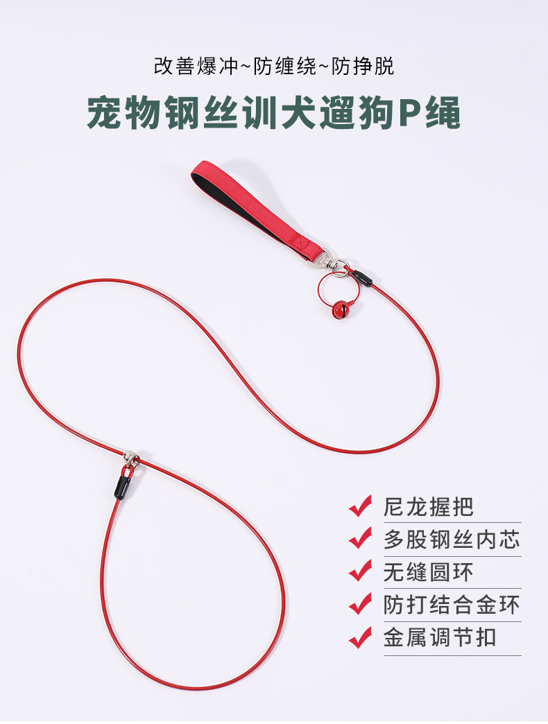 Cross-Border Steel Wire Dog Leash Pet Collar Integrated Dog Walking Leash for Large and Small Dogs P Rope Dog Leash P Rope Wholesale