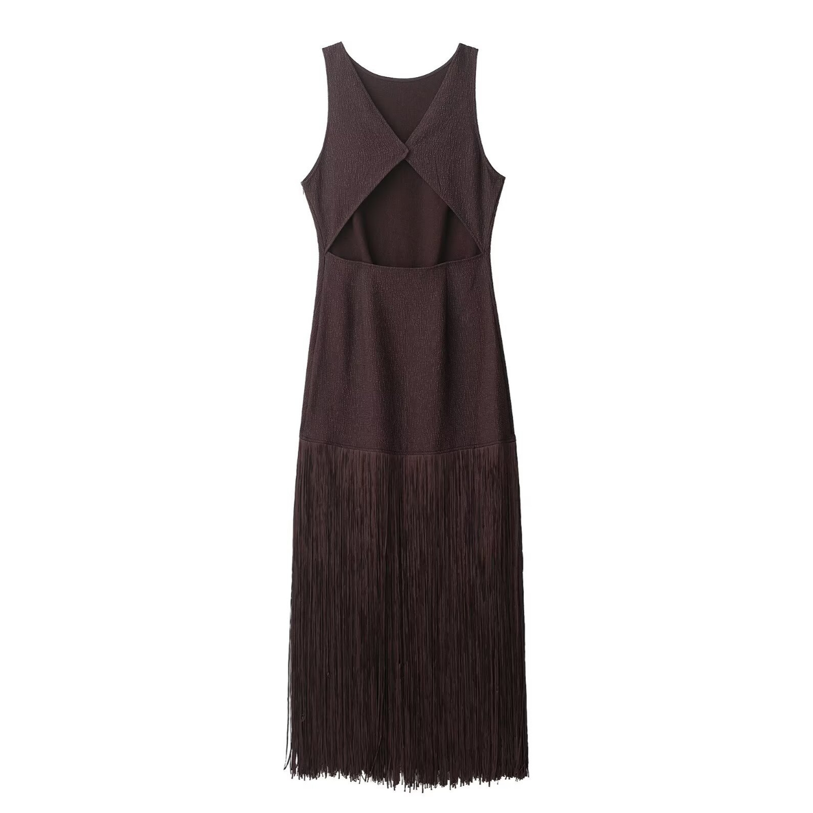 Myst&Za Women's 2025 Autumn New Fashion Sexy Backless Slim Tassel Patchwork Dress 8741240