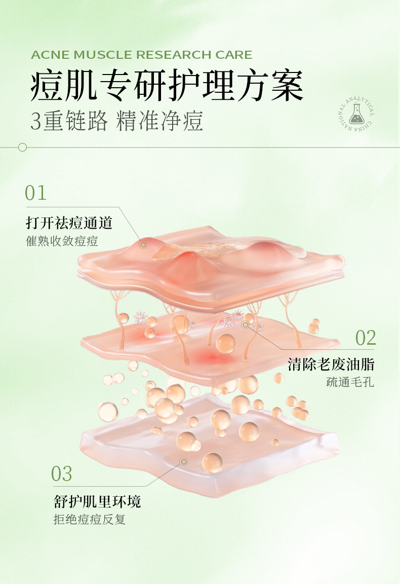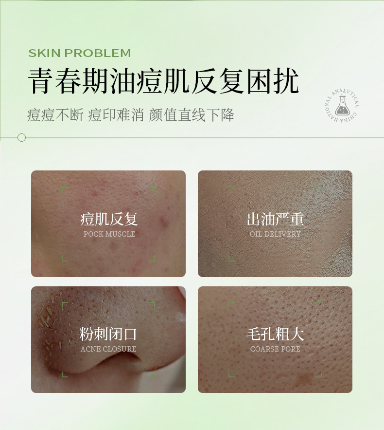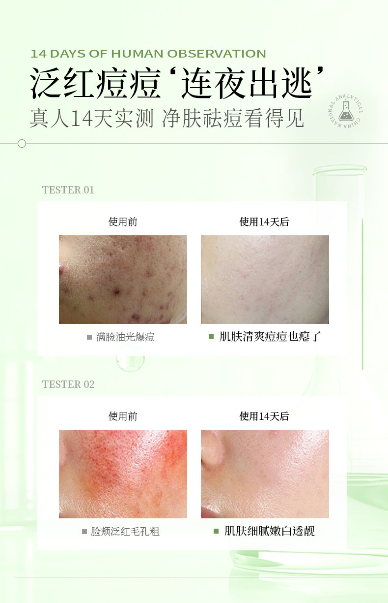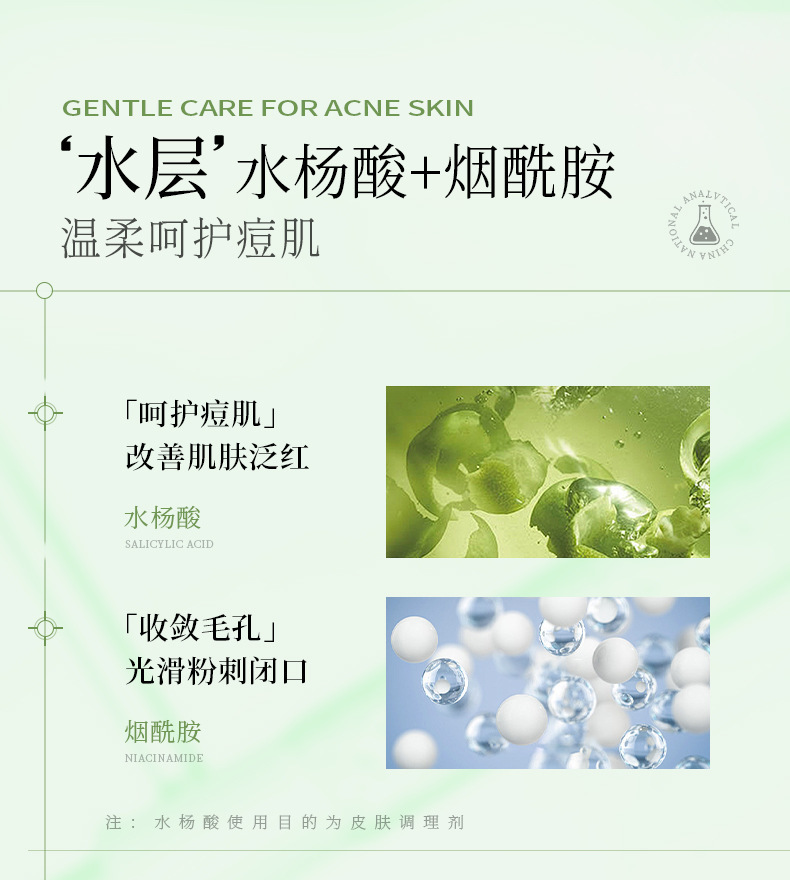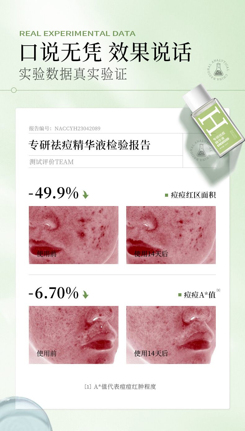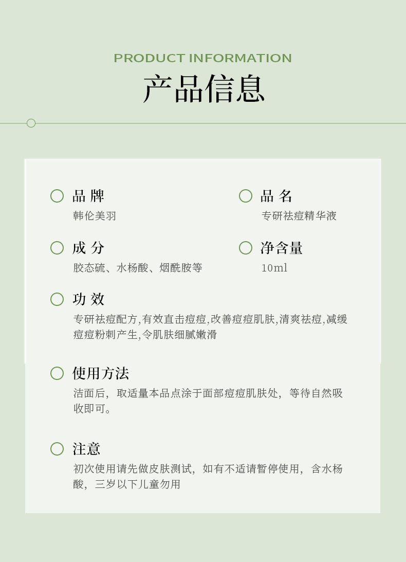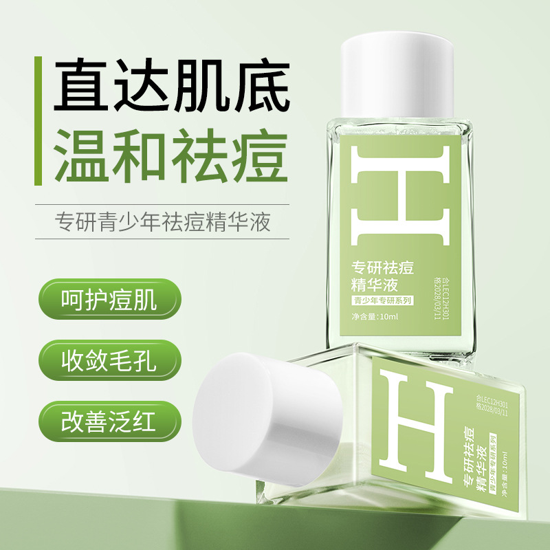 Han Lun Meiyu Specializes in Anti-Acne Serum in a Small Green Bottle to Fade Acne Marks, Facial Essence That Gently Repairs and Removes Oily Acne-Prone Skin