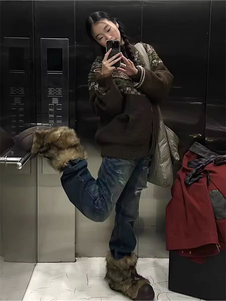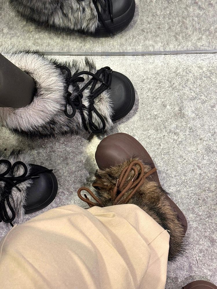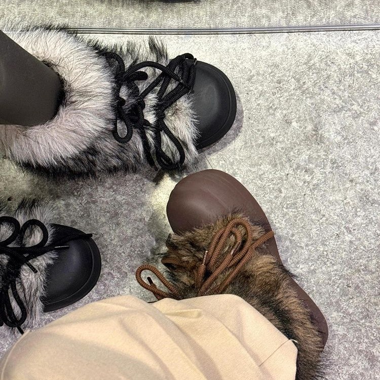 French-Style Thick-Soled Height-Increasing Snow Boots for Women, Autumn and Winter New Plush Warm Mid-Calf Boots, Retro Furry Boots, Martin Boots
