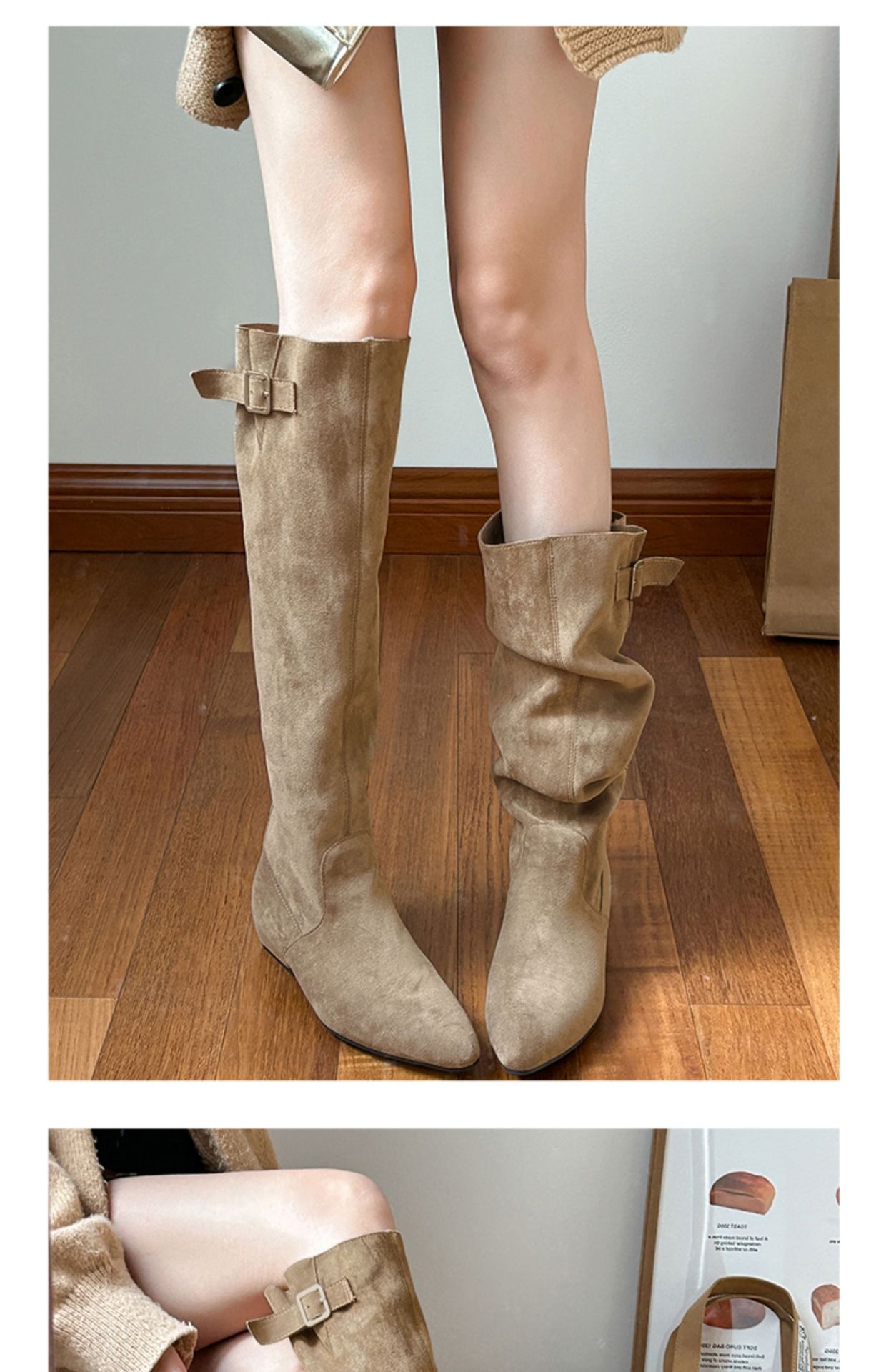 Soft Leather Version ~ Lazy Women's Winter Retro Pile Boots French Slim High Boots Thick Heel Suede Khaki Boots