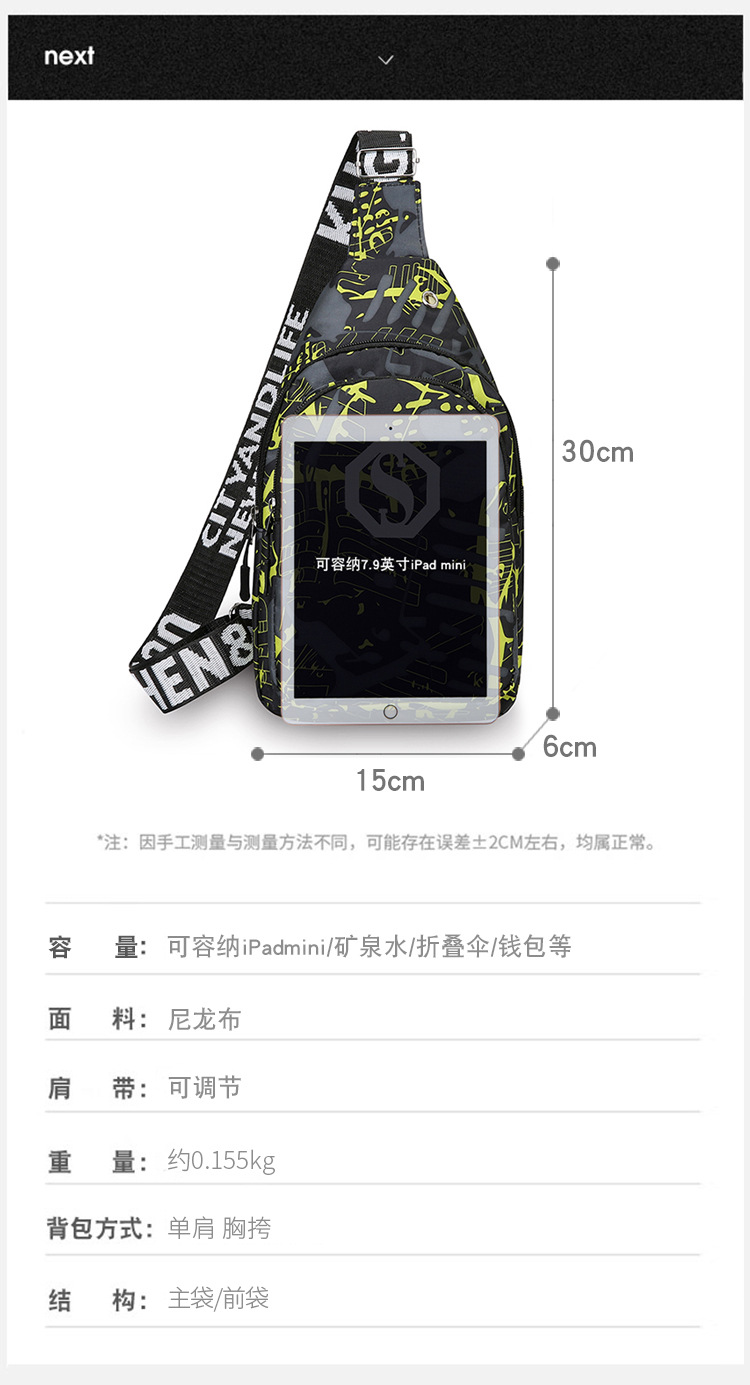 Chest Bag for Women 2025 New Korean Style Trendy Fashion Wear-Resistant Versatile Crossbody Bag Outdoor Leisure Nylon Small Backpack Customization