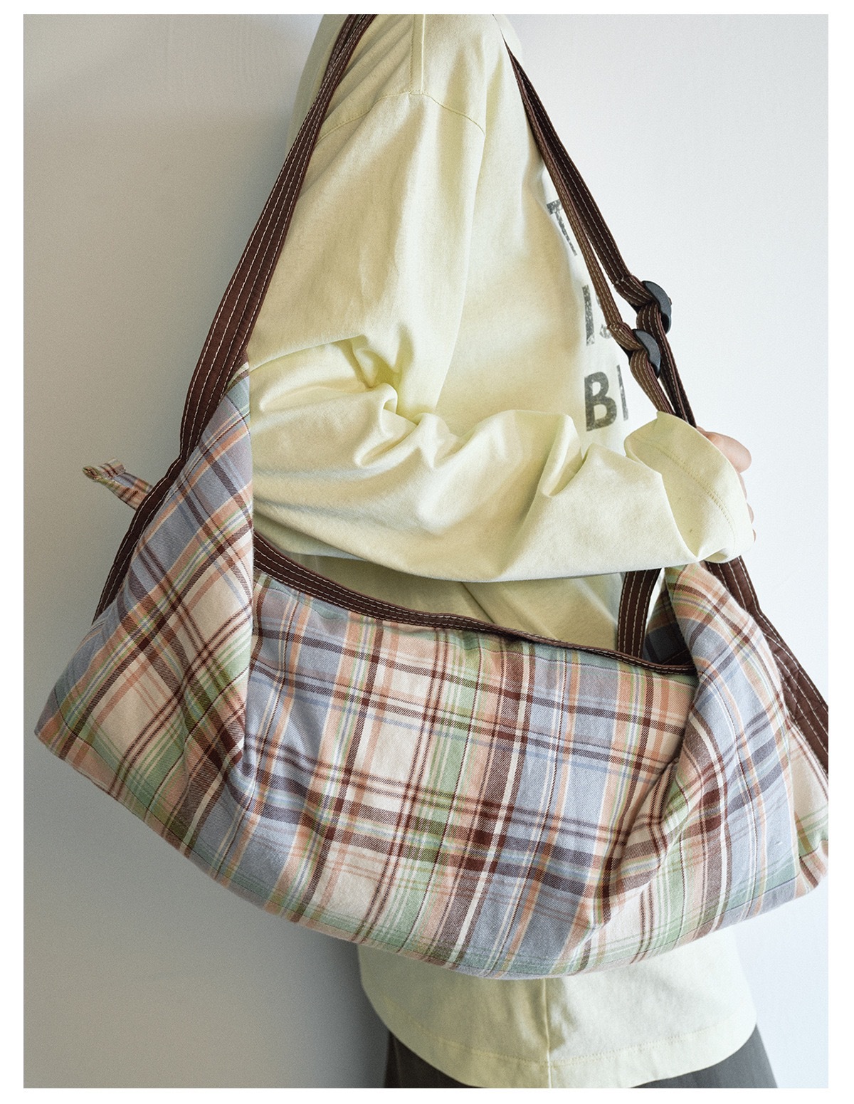 Helloseptember Retro Plaid Contrasting Color Quilted Shoulder Bag Women's Small Versatile Commuter Armpit Bag V9424