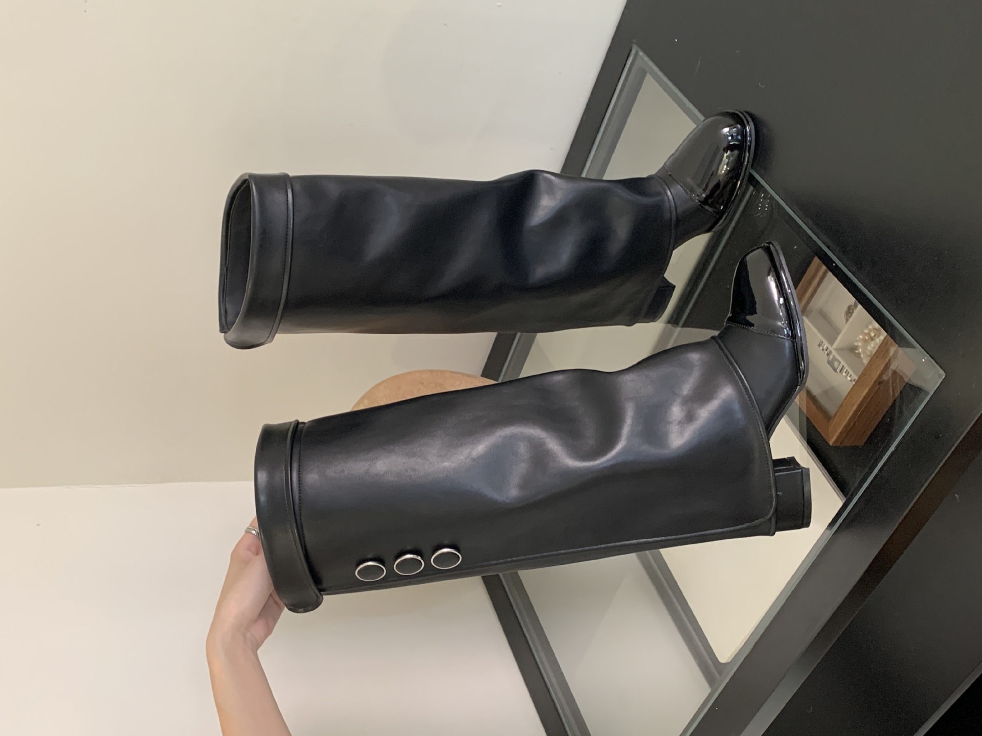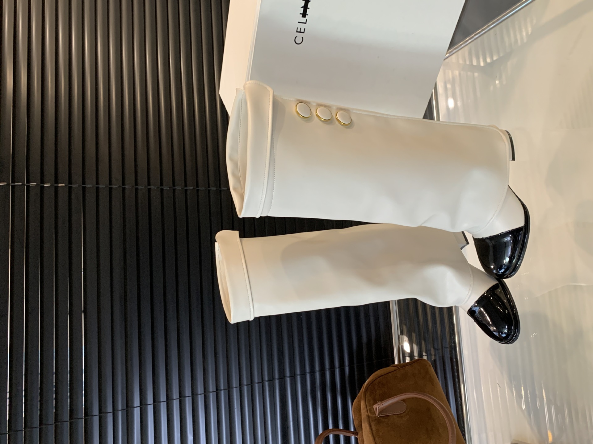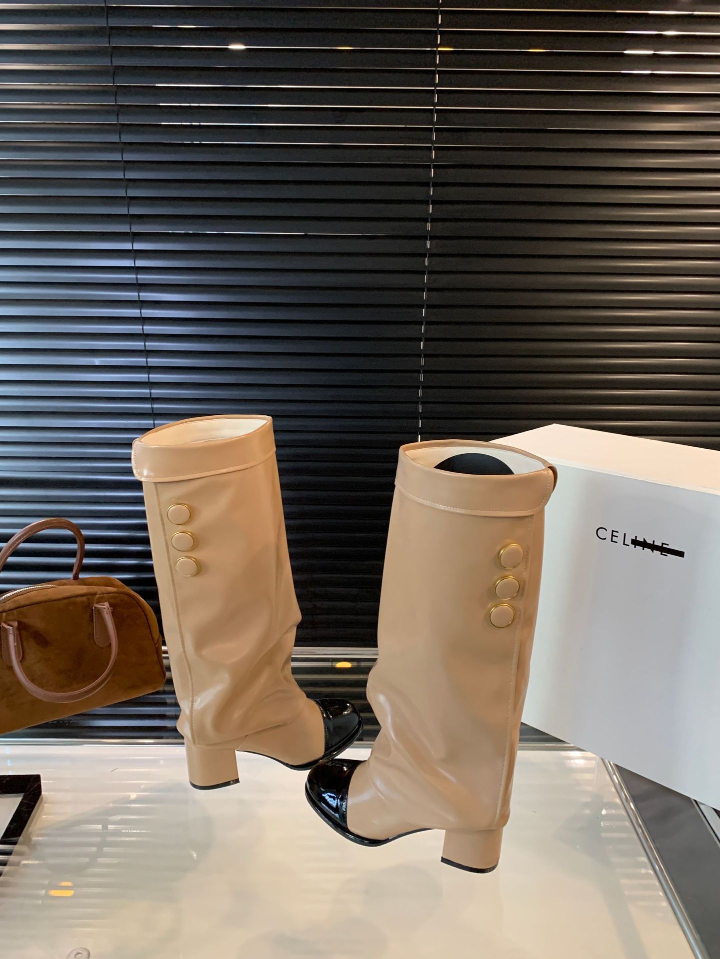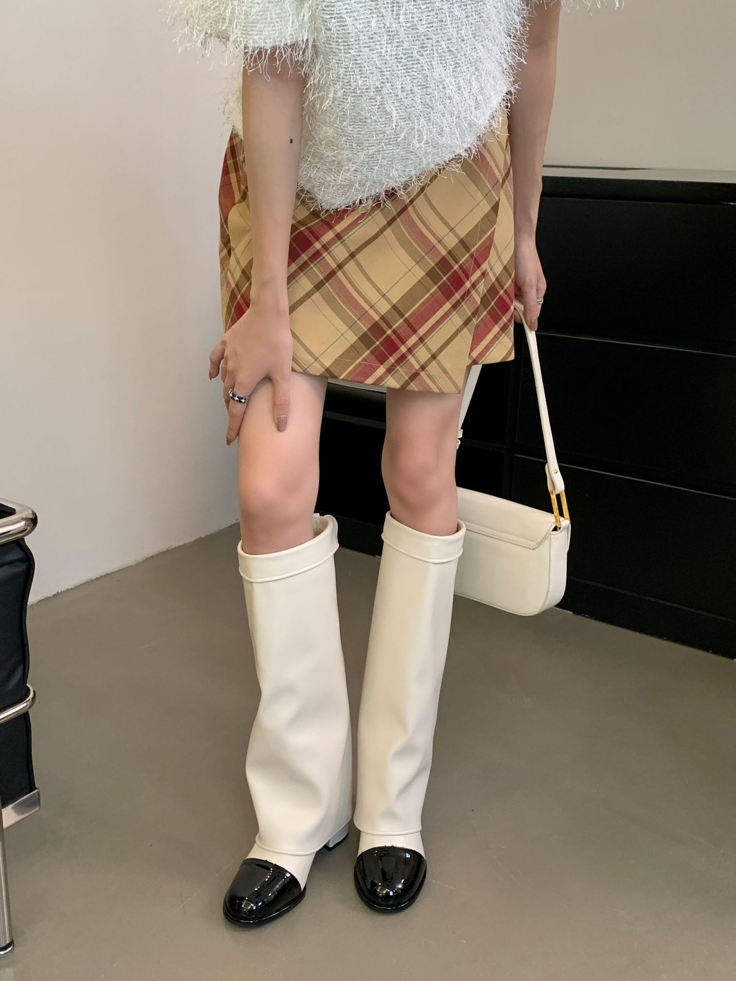 French-Style Small Fragrance Round-Toe Color-Blocked Riding Boots Versatile Chunky Heel High Boots Genuine Leather Over-The-Knee Boots Women's Trouser Boots