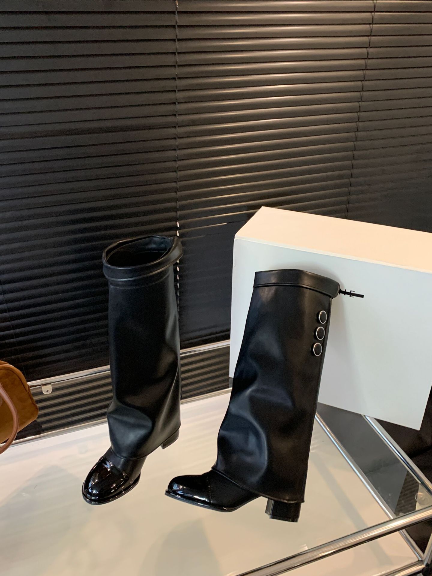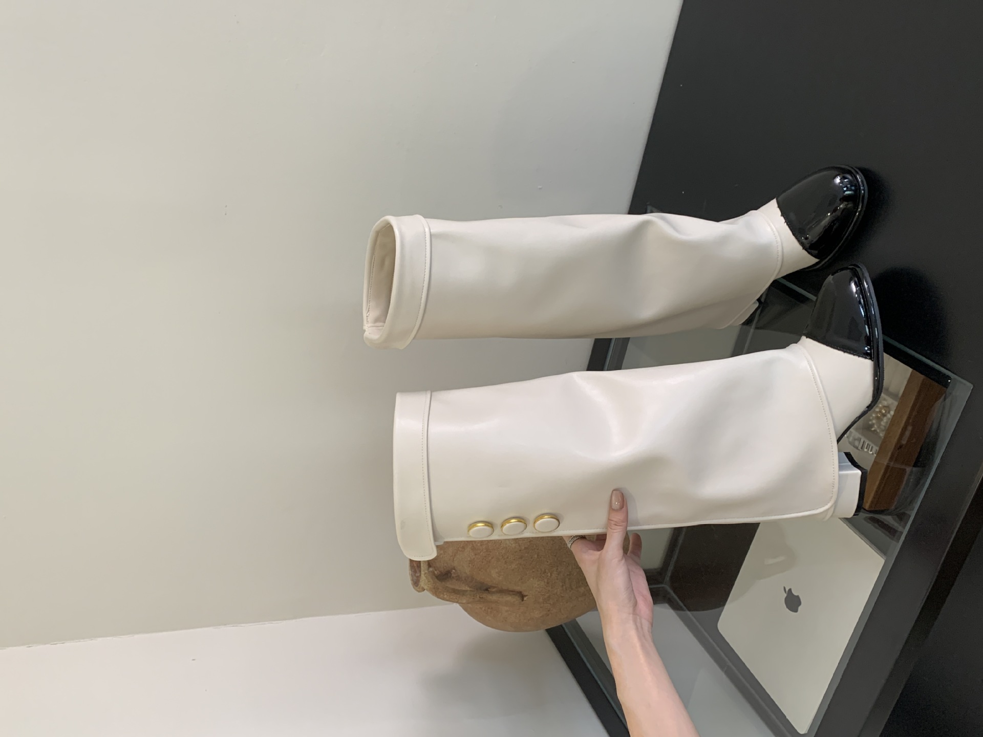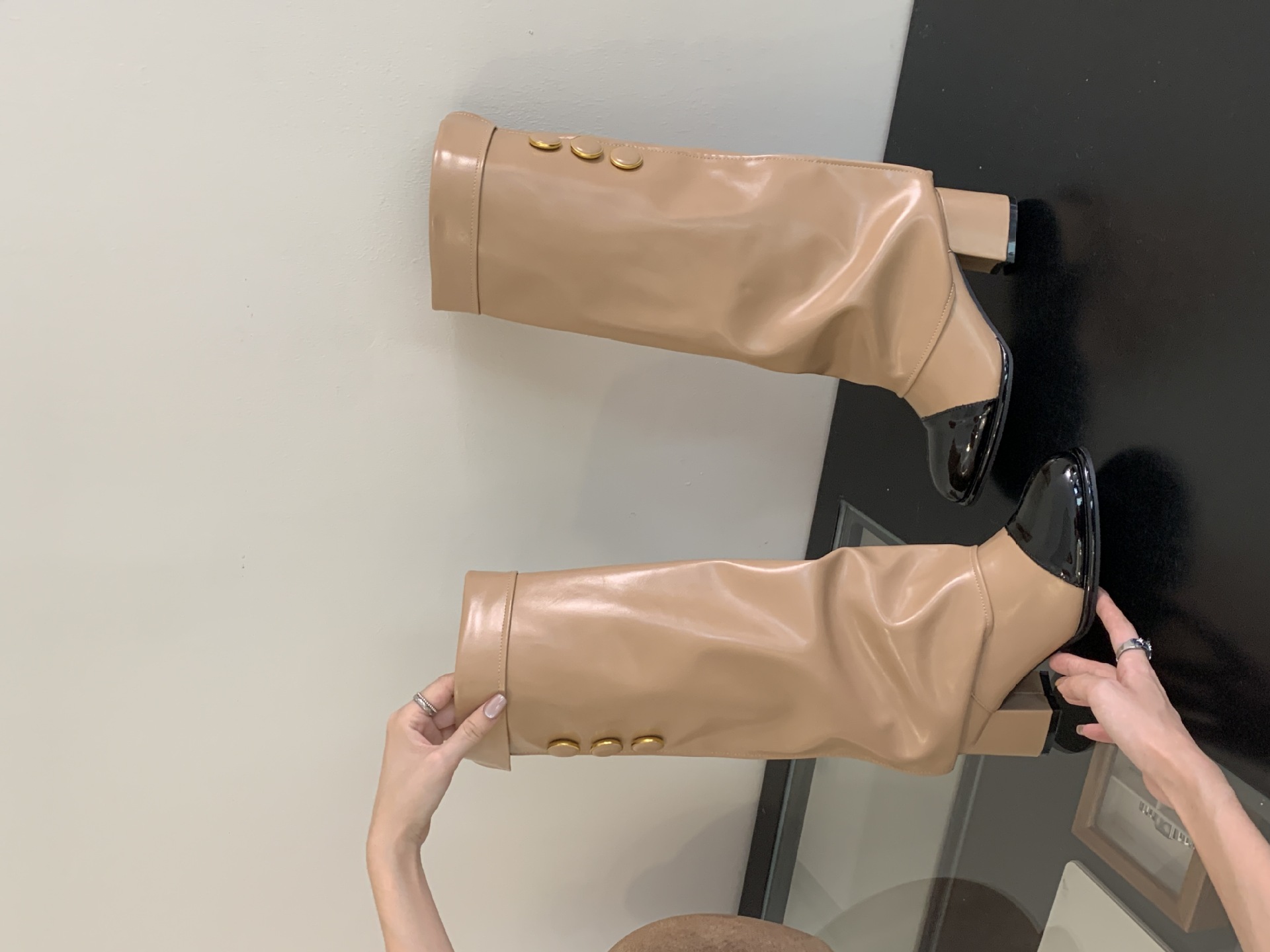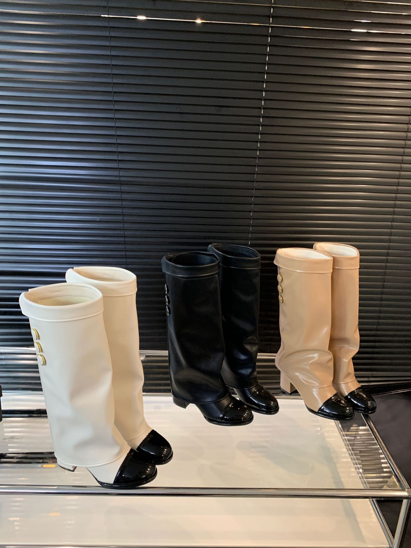 French-Style Small Fragrance Round-Toe Color-Blocked Riding Boots Versatile Chunky Heel High Boots Genuine Leather Over-The-Knee Boots Women's Trouser Boots