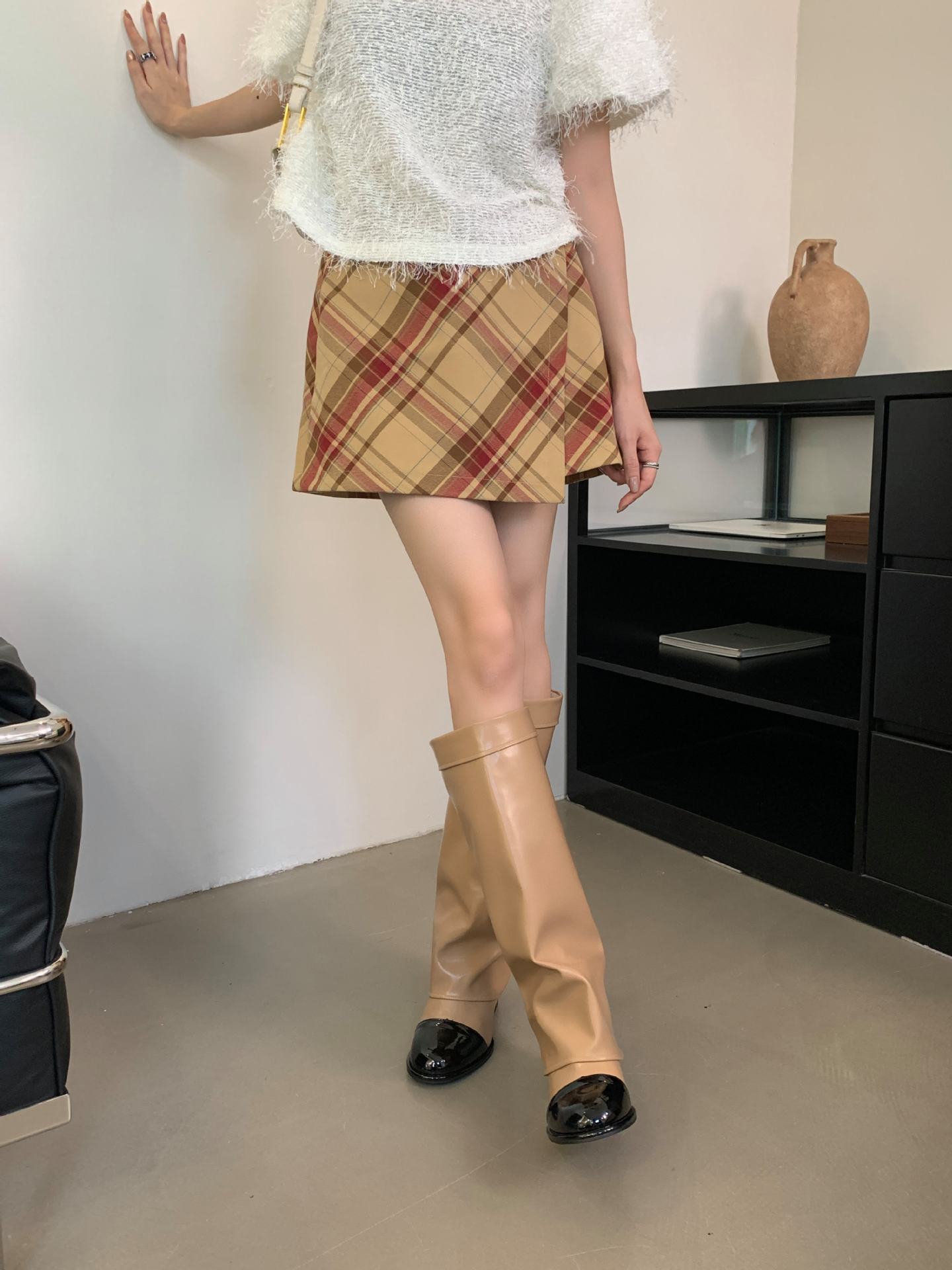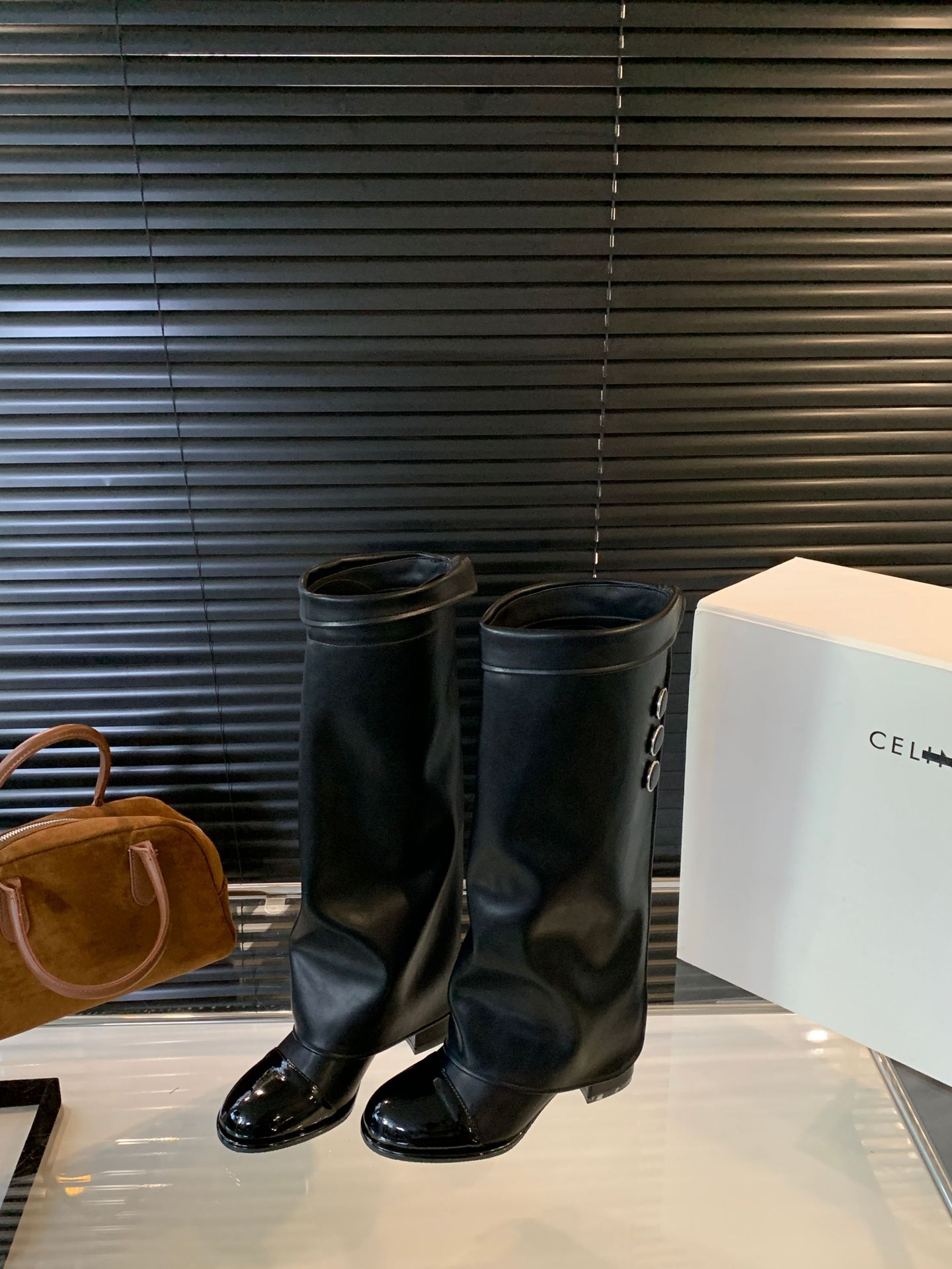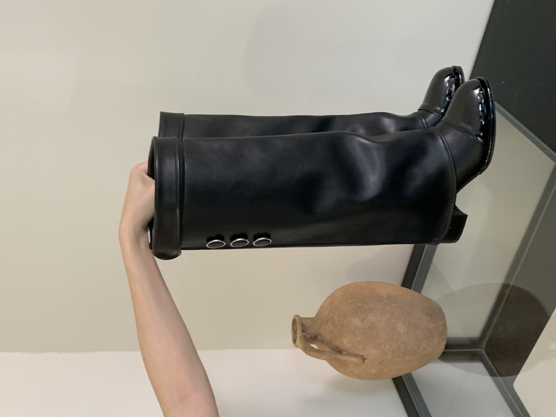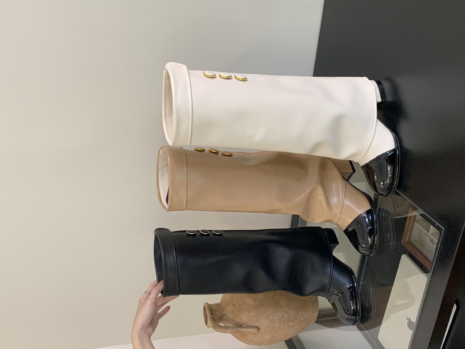 French-Style Small Fragrance Round-Toe Color-Blocked Riding Boots Versatile Chunky Heel High Boots Genuine Leather Over-The-Knee Boots Women's Trouser Boots