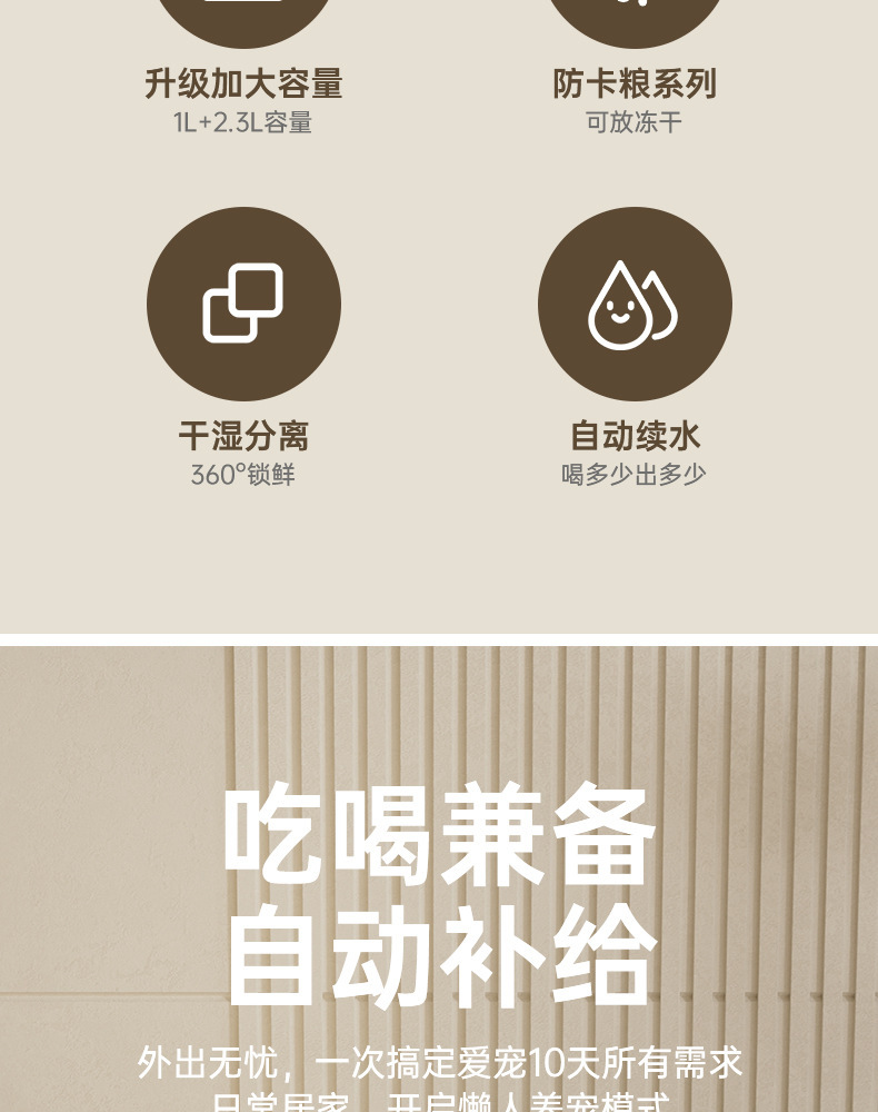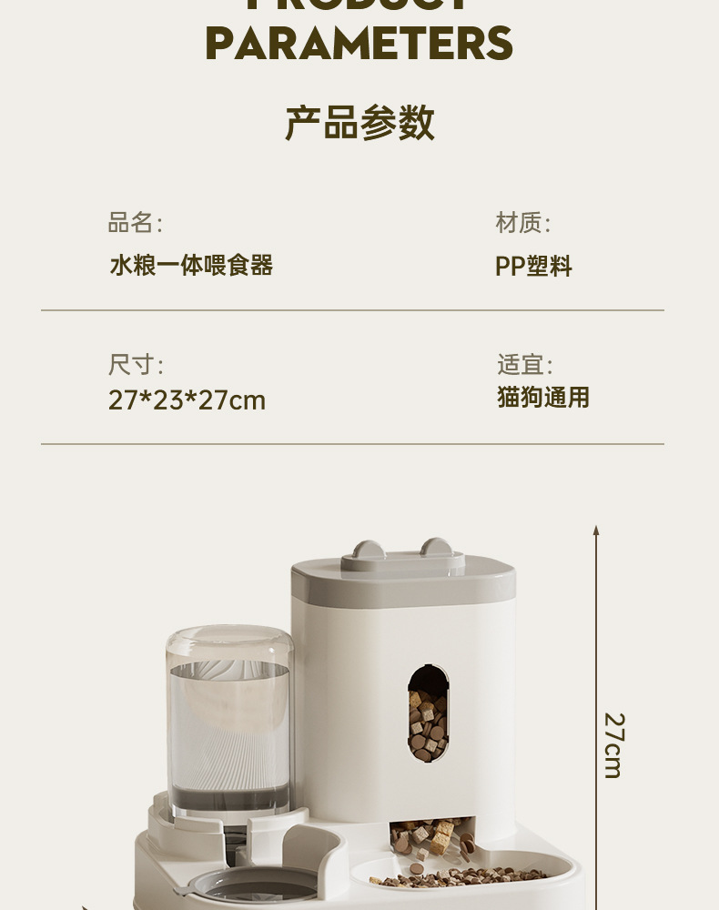 [super large capacity] water and food integrated feeder - minimalist gray