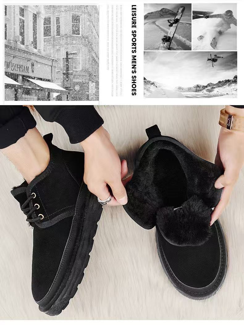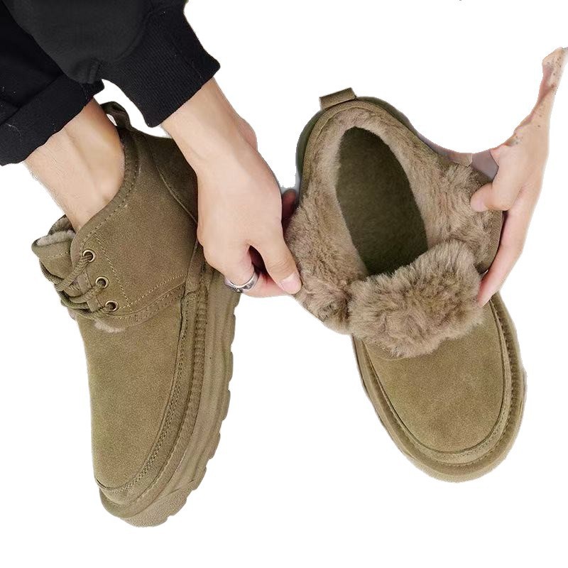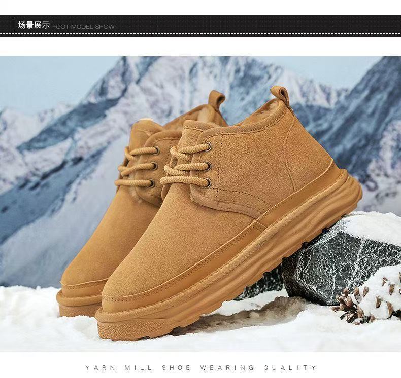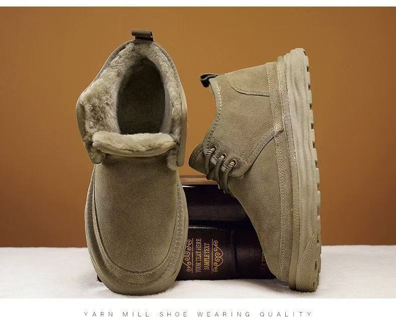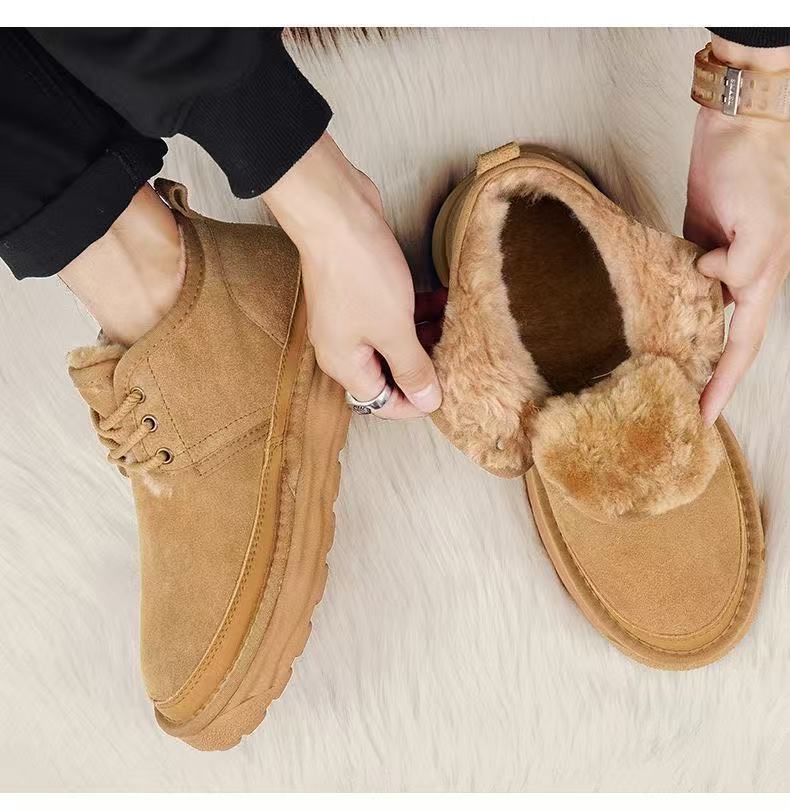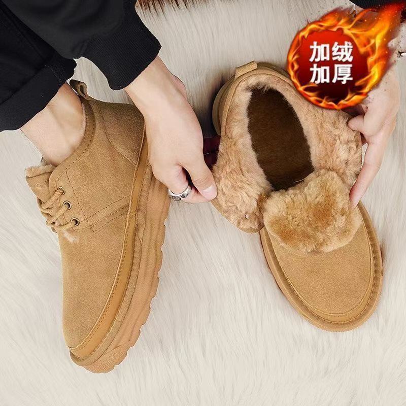 Winter Warm Snow Boots for Men, Integrated Leather and Fur, Thickened with Plush, Non-Slip, Northeast Old Beijing Men's Shoes